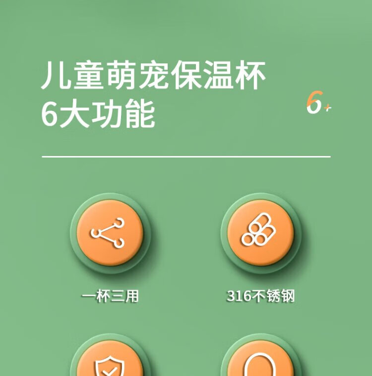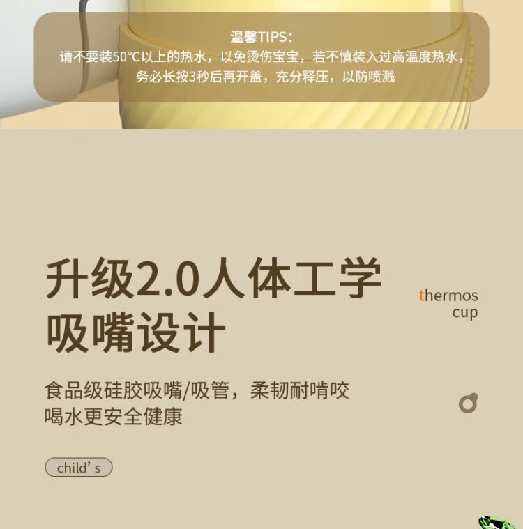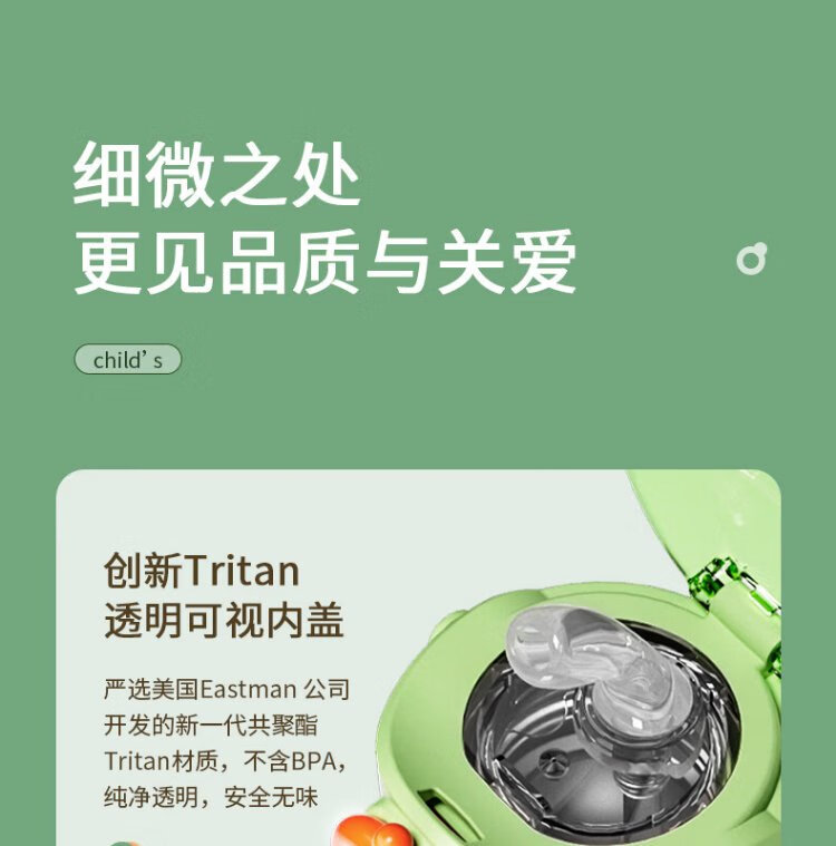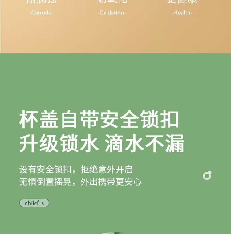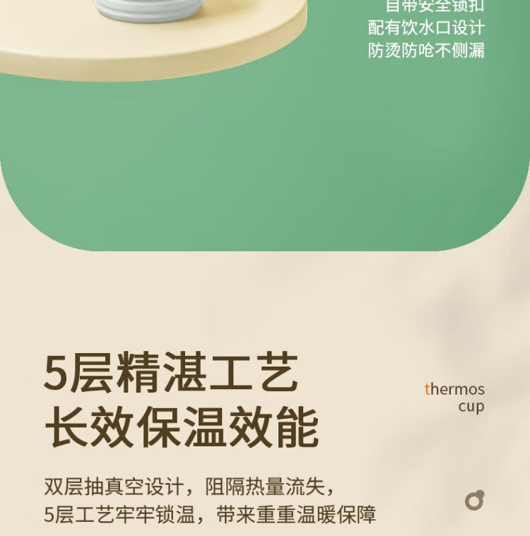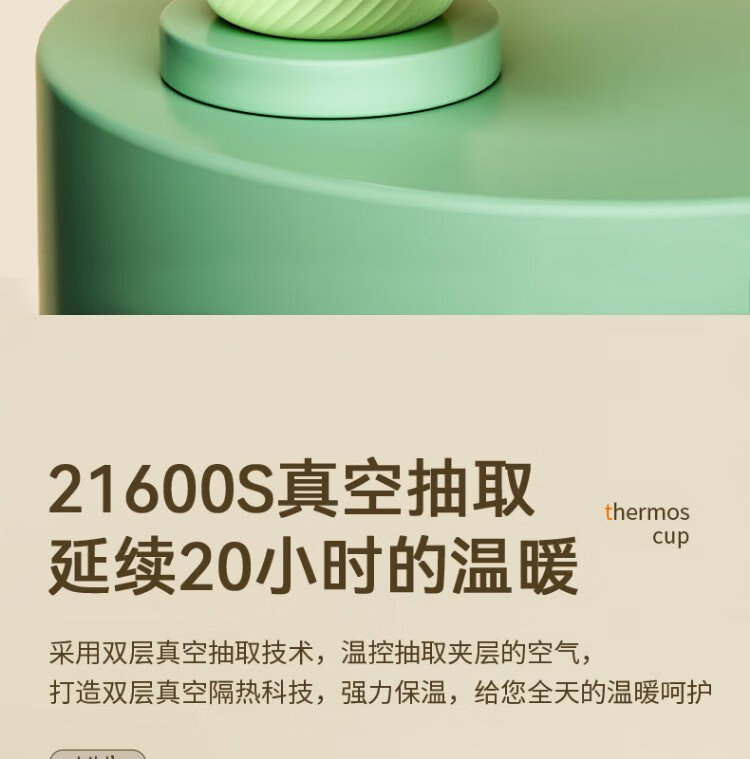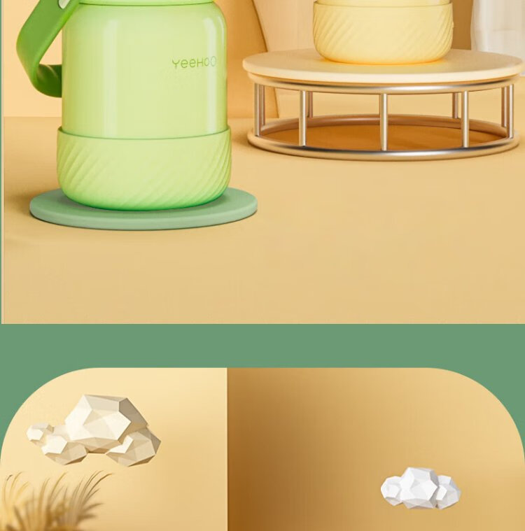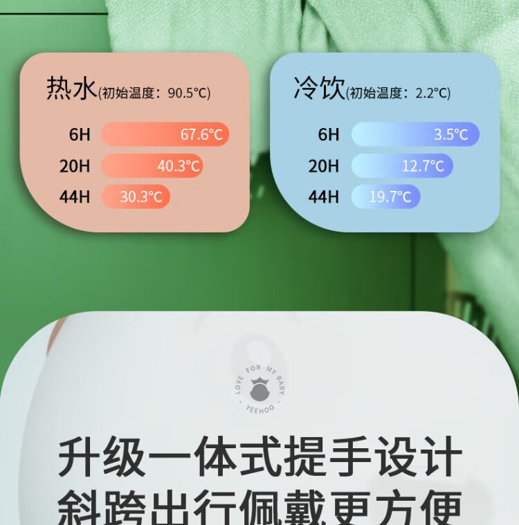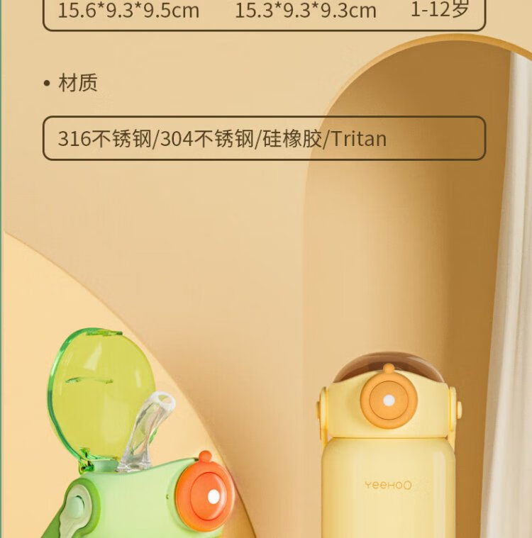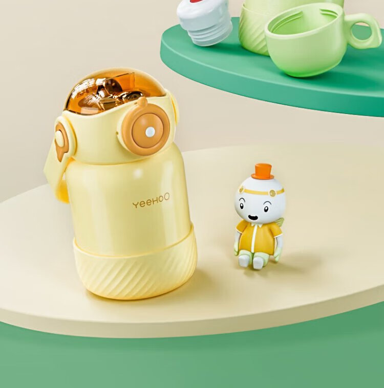 YEEHOO thermos cup 316 children's sippy cup with cup cover baby thermos cup baby children's thermos water cup apple green