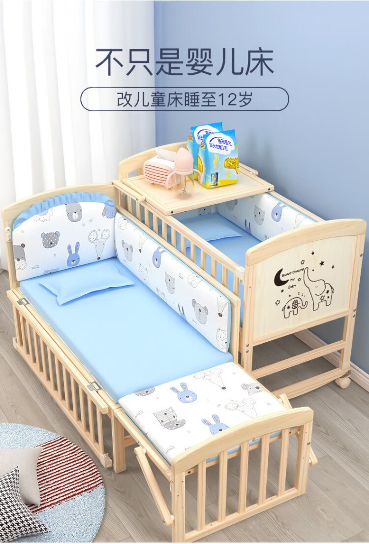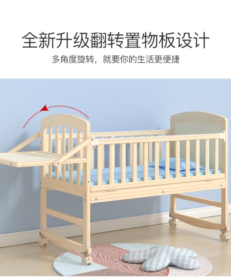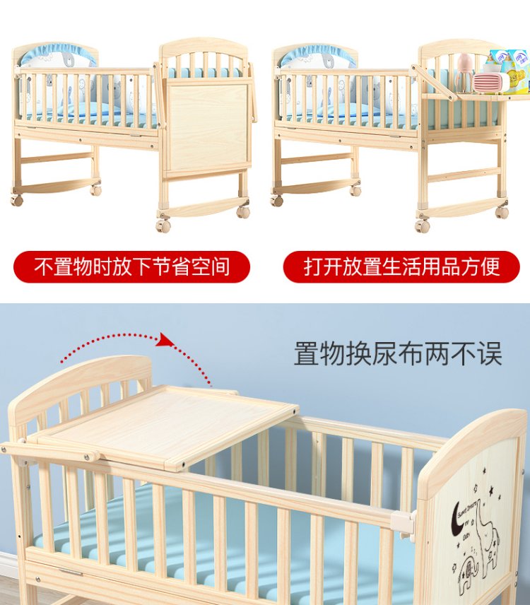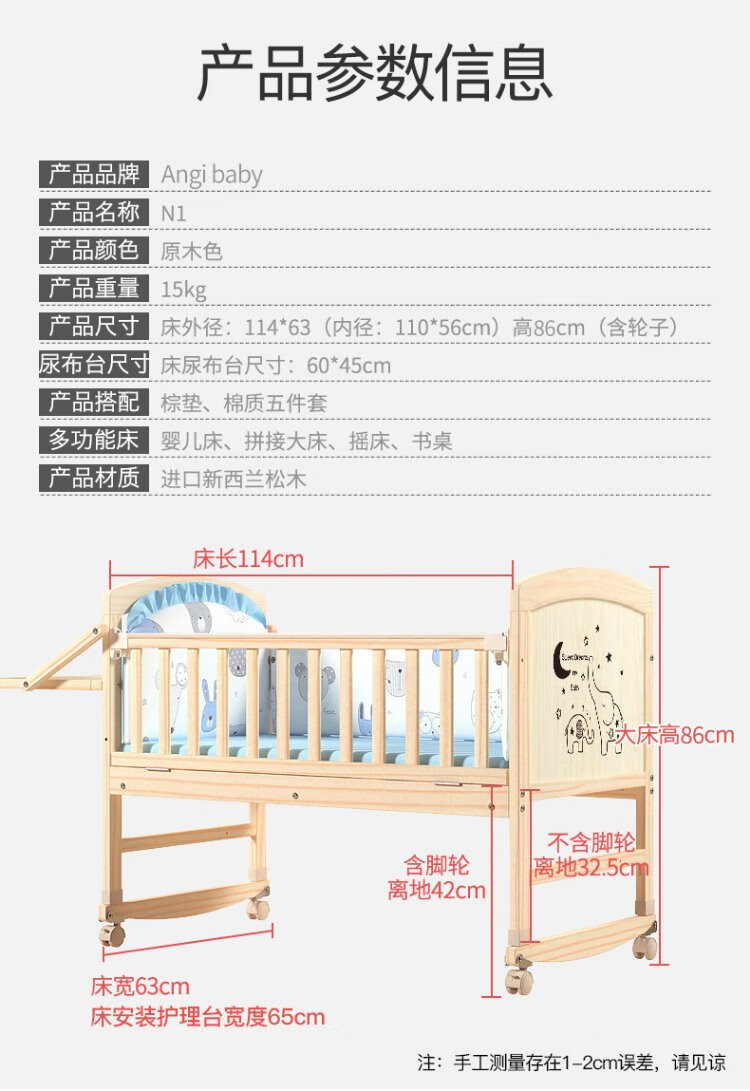 ANGI BABY crib solid wood paintless multi-functional baby bb with changing table removable rocker extended children's bed