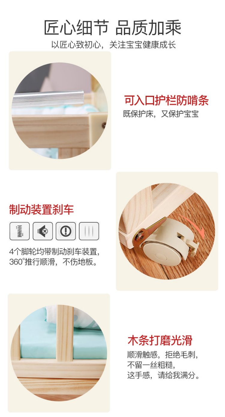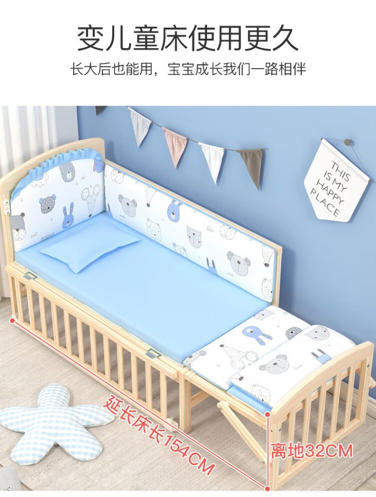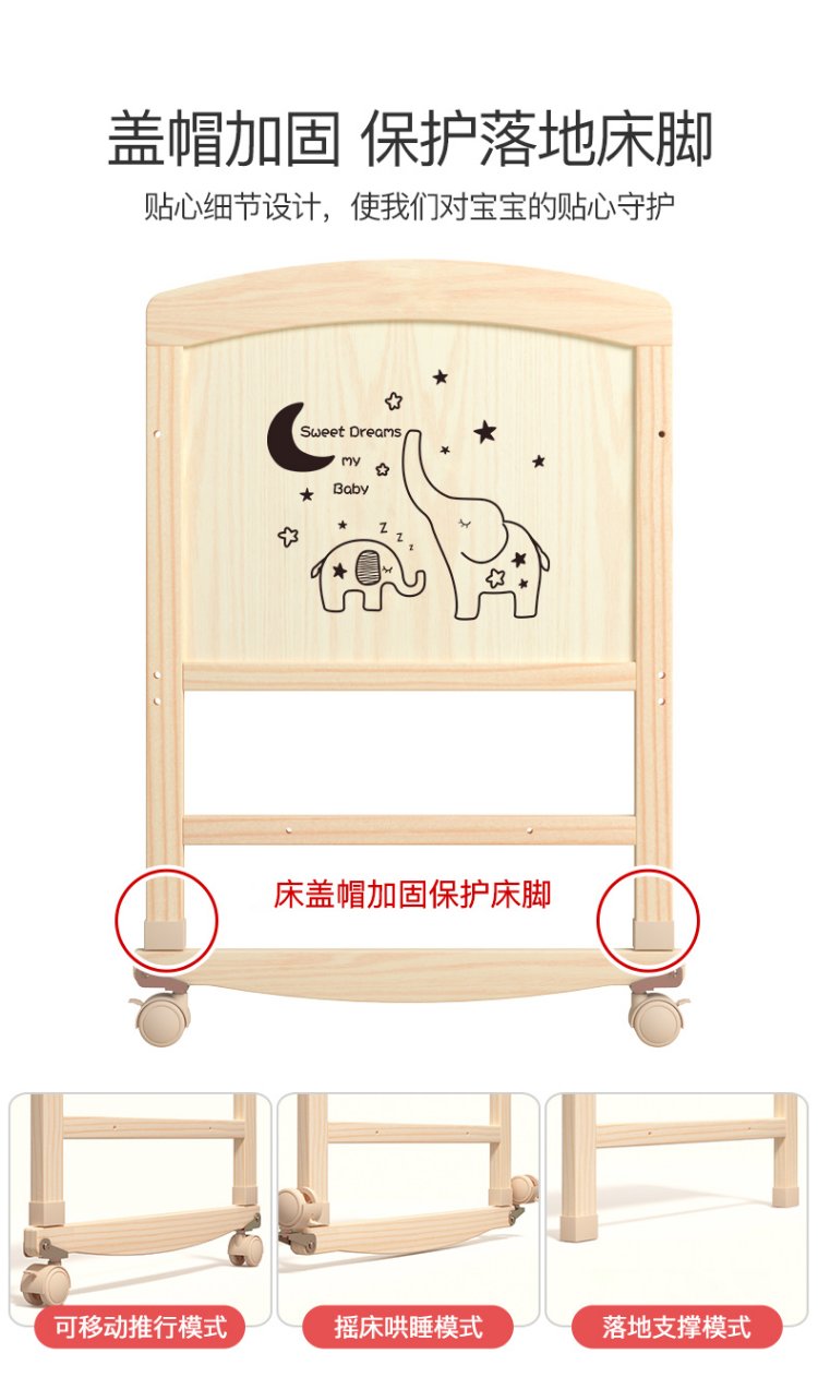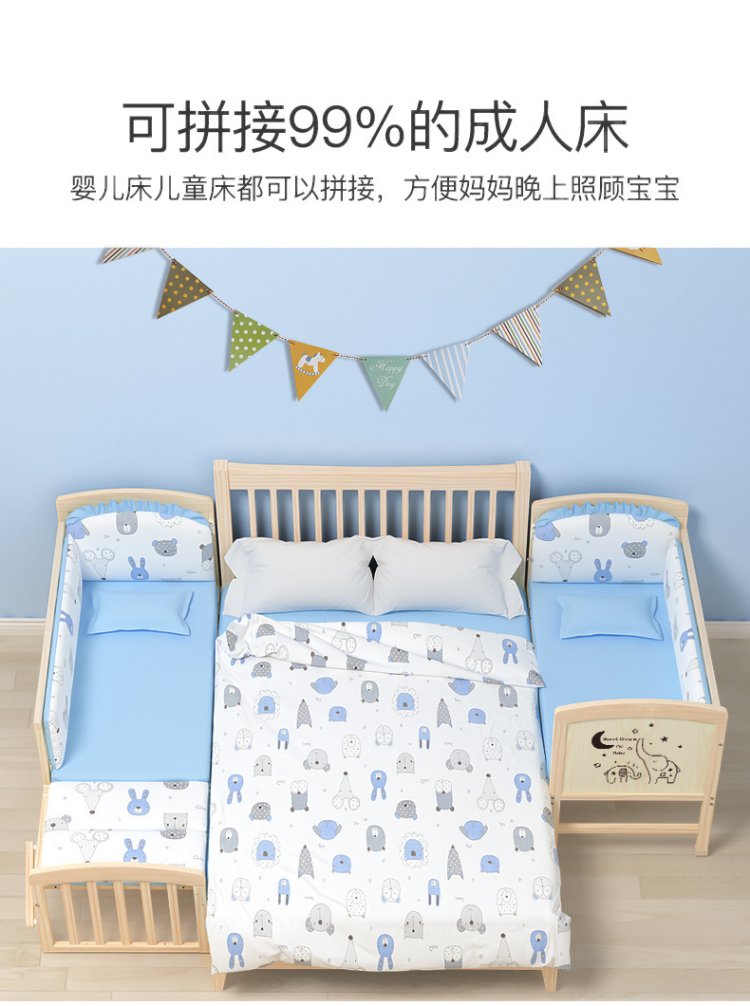 ANGI BABY crib solid wood paintless multi-functional baby bb with changing table removable rocker extended children's bed
