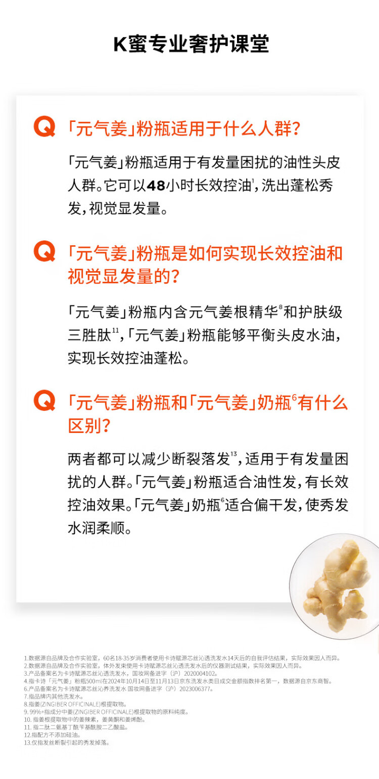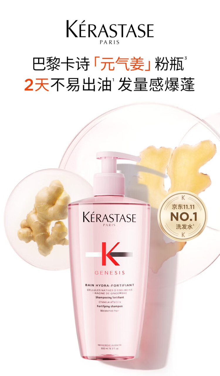 Kérastase Vitality Ginger Powder Bottle Ginger Shampoo 500ml long-lasting oil control, plump, fluffy and strong