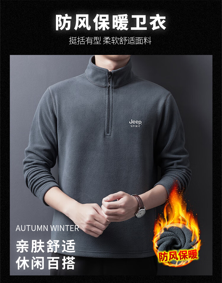 JEEP SPIRIT Jeep sweatshirt men's spring and autumn men's long-sleeved casual men's fleece jacket men's top military color XL