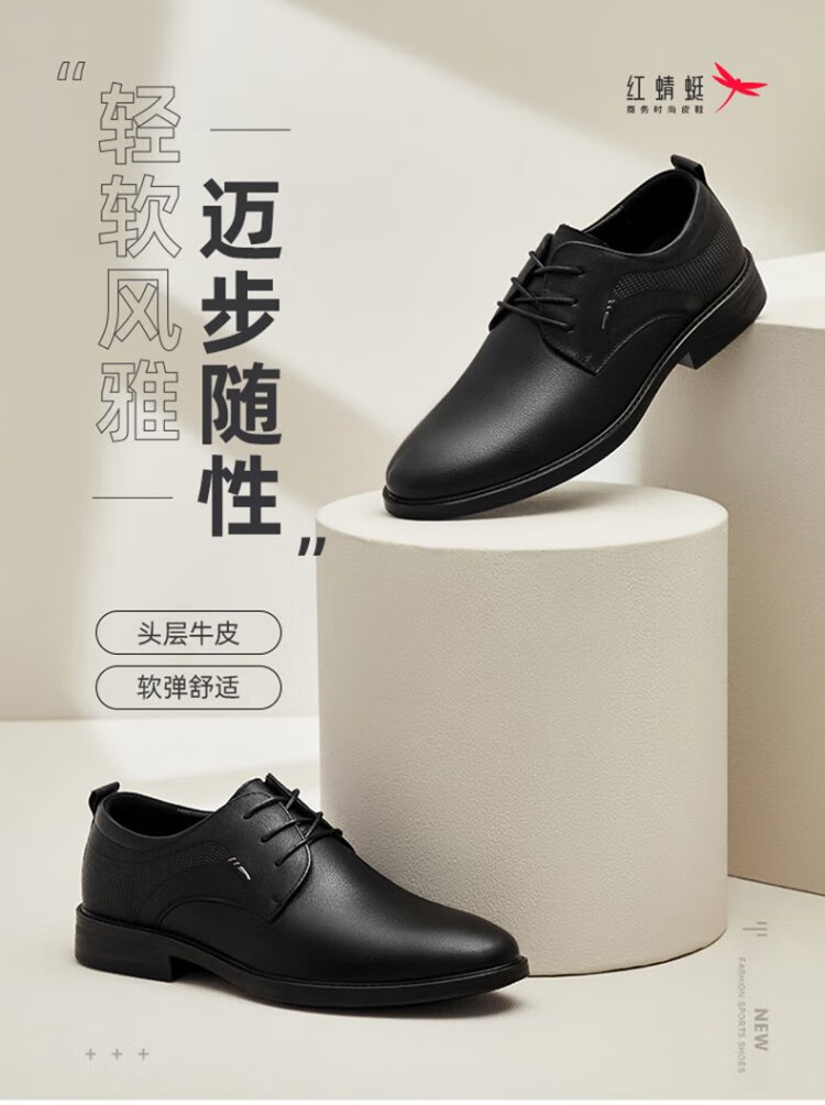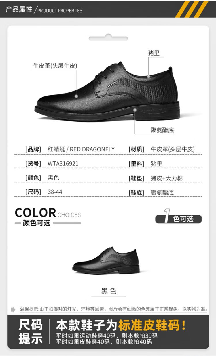 Red Dragonfly Red Dragonfly men's lace-up flat-soled all-match cowhide casual shoes men's business formal leather shoes men WTA316921