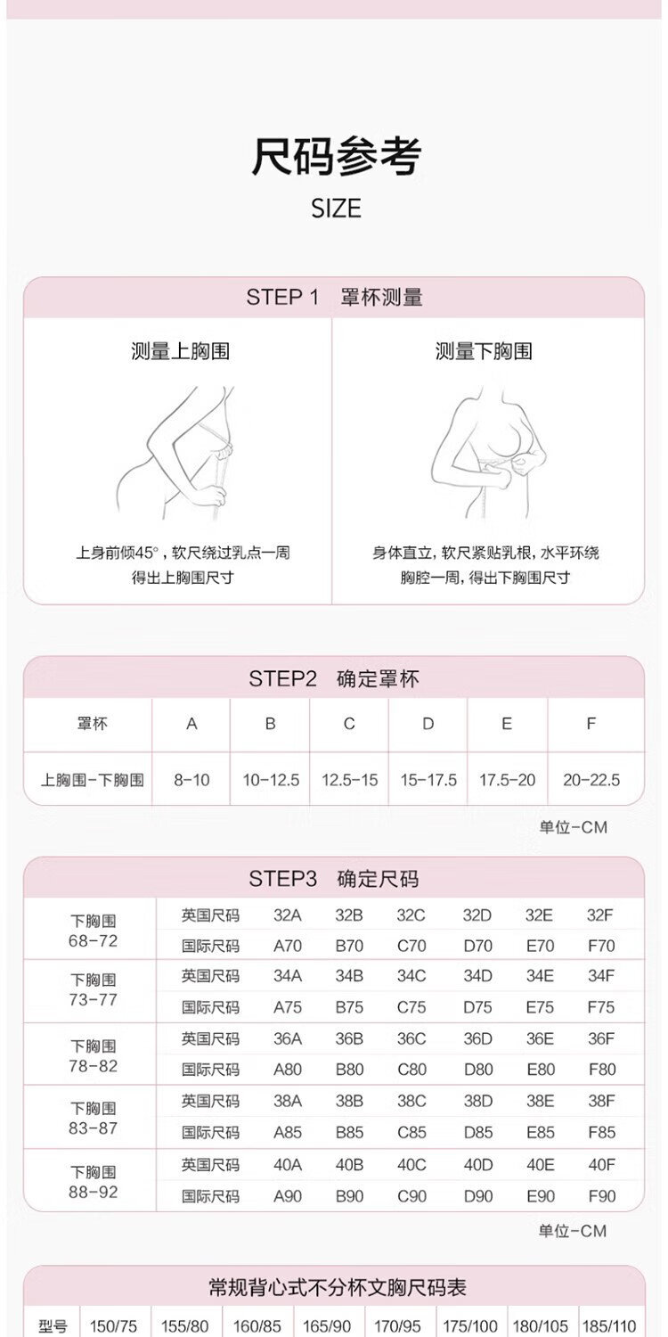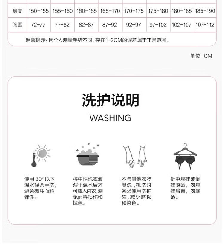 China (cm) 160-165/84-86 165-170 / 88-90 167-172 / 92-96 168-173 / 98-102 170-176 / 106-110