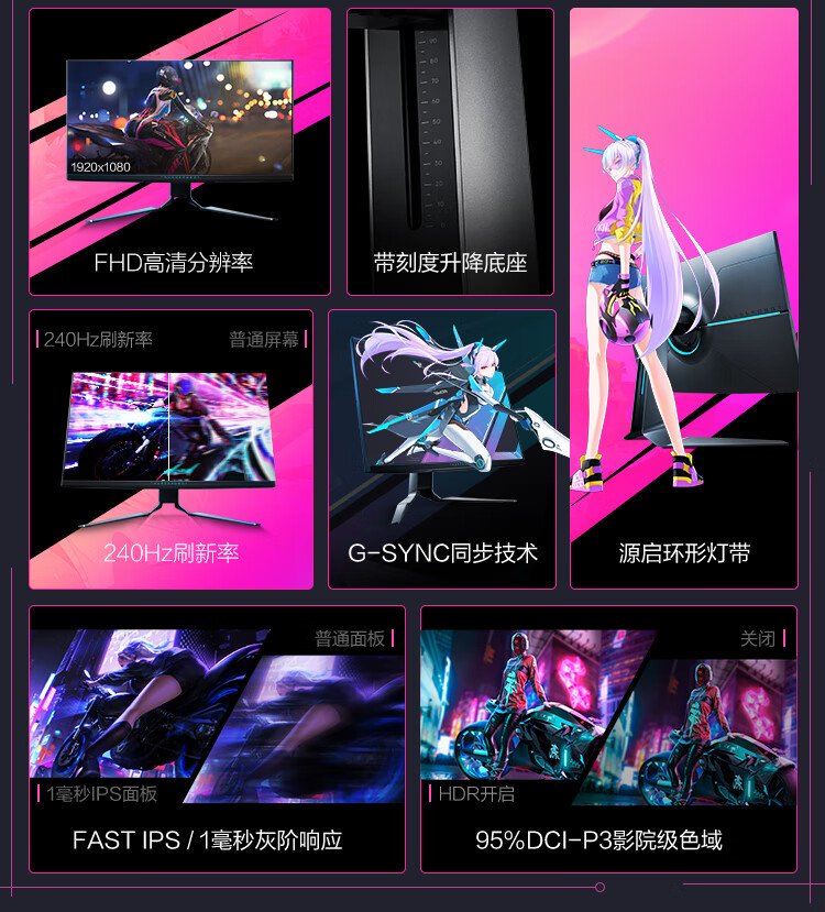 Thor Silver Wing 27-inch 240Hz IPS 1ms HDR fast LCD professional e-sports game entertainment computer monitor lifting and rotating LF27F240L