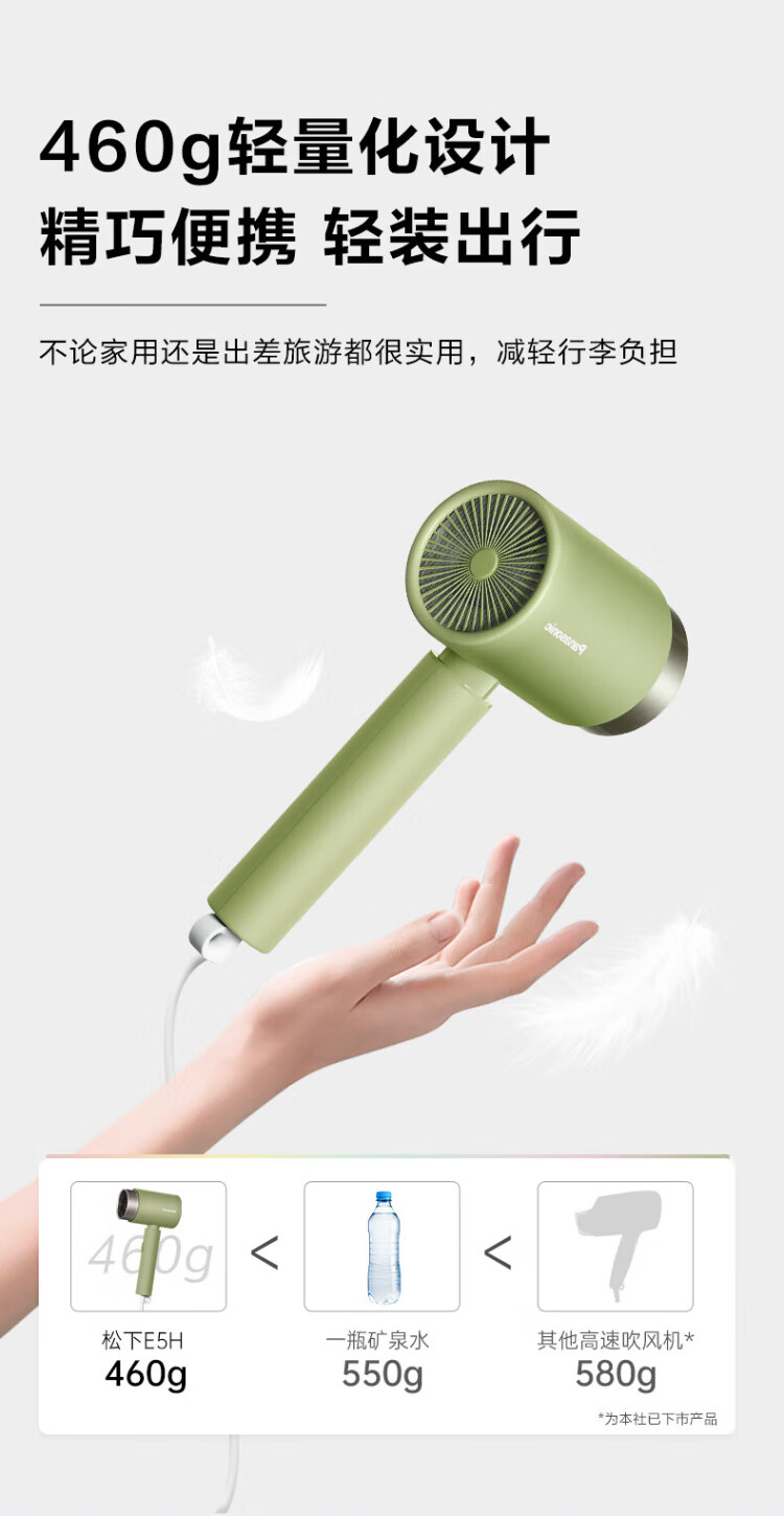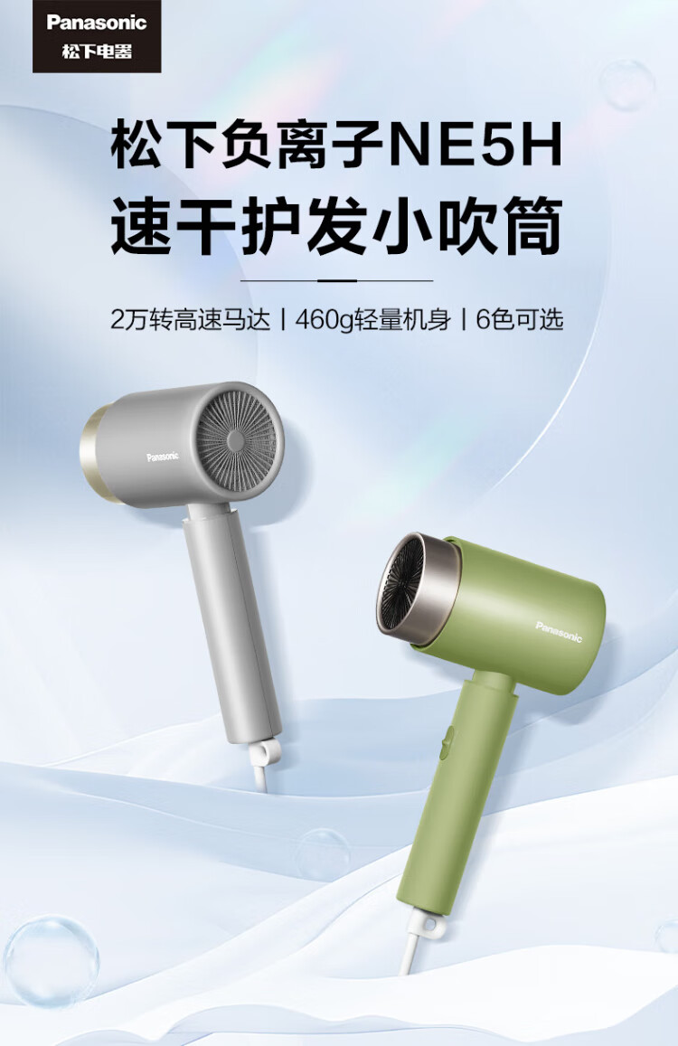 Panasonic household hair dryer high-power high-speed high-wind constant temperature quick-drying portable dormitory household negative ion hair dryer girl gift EH-WNE5H powder