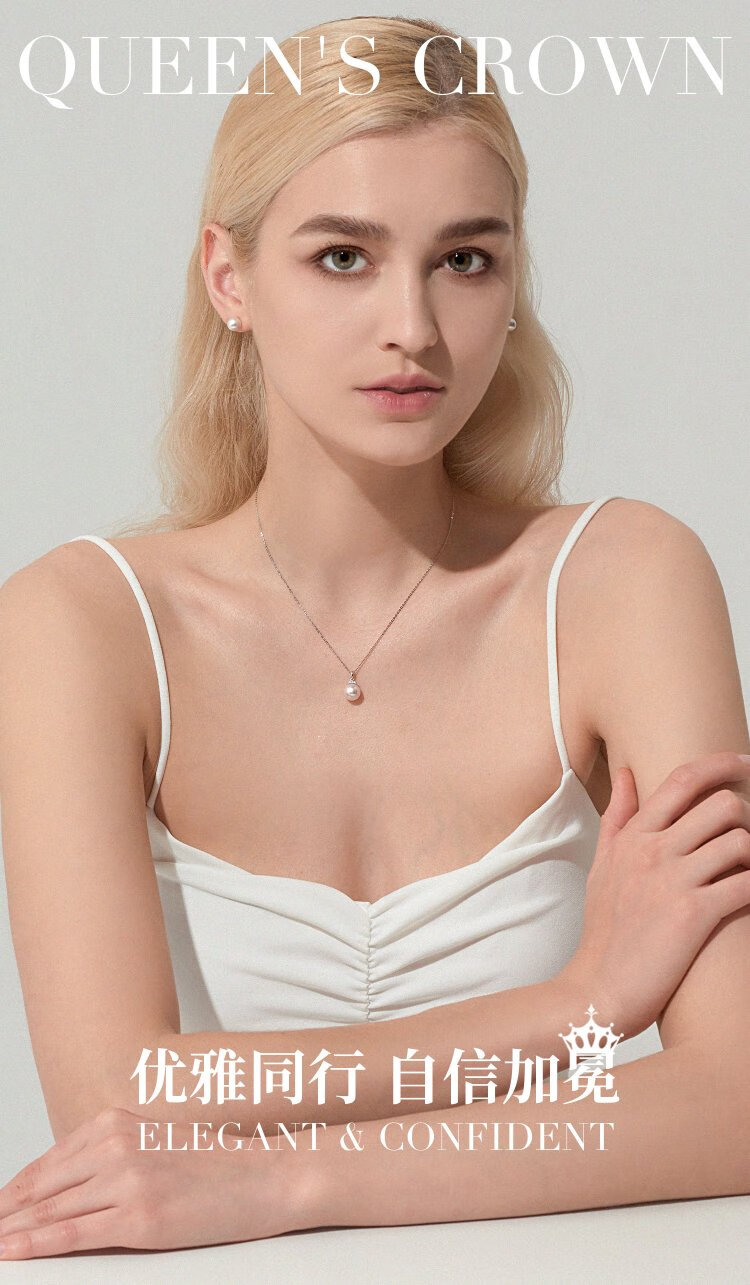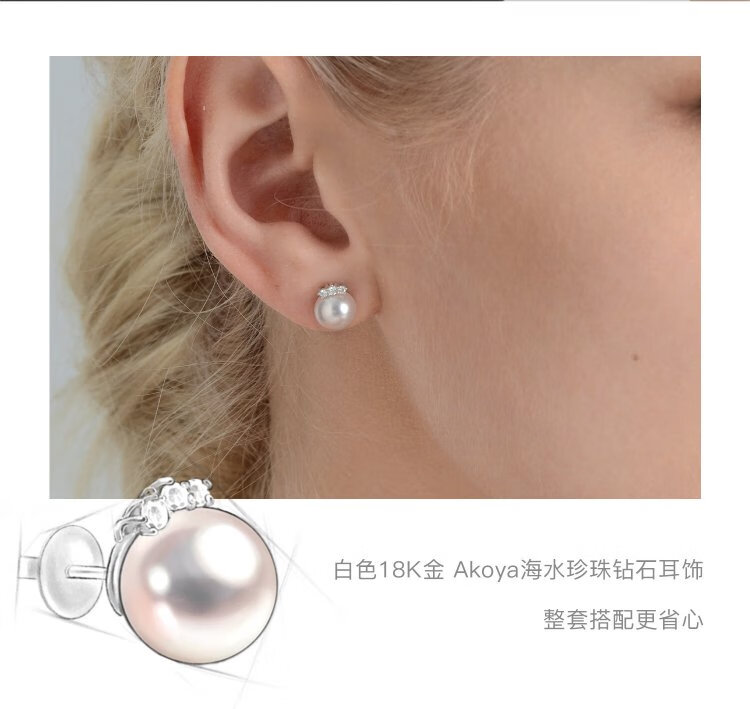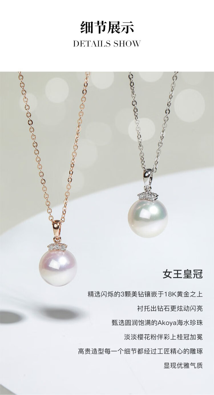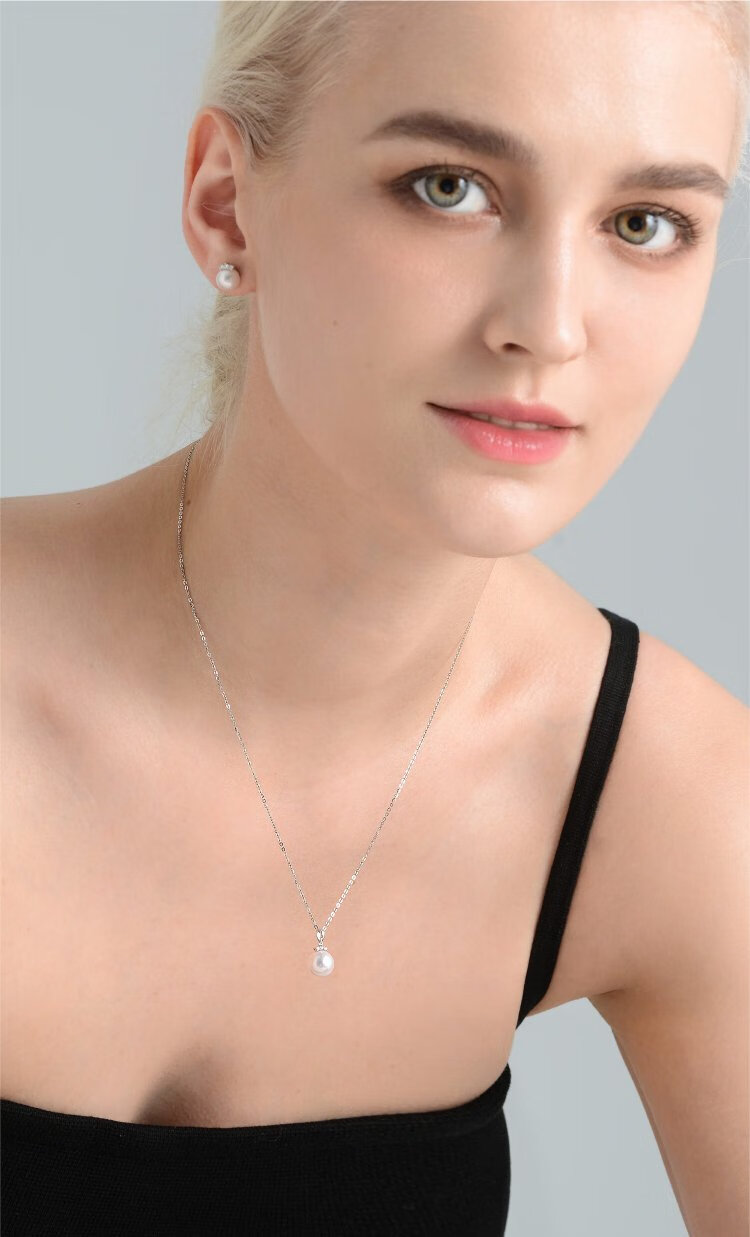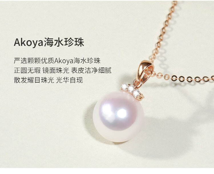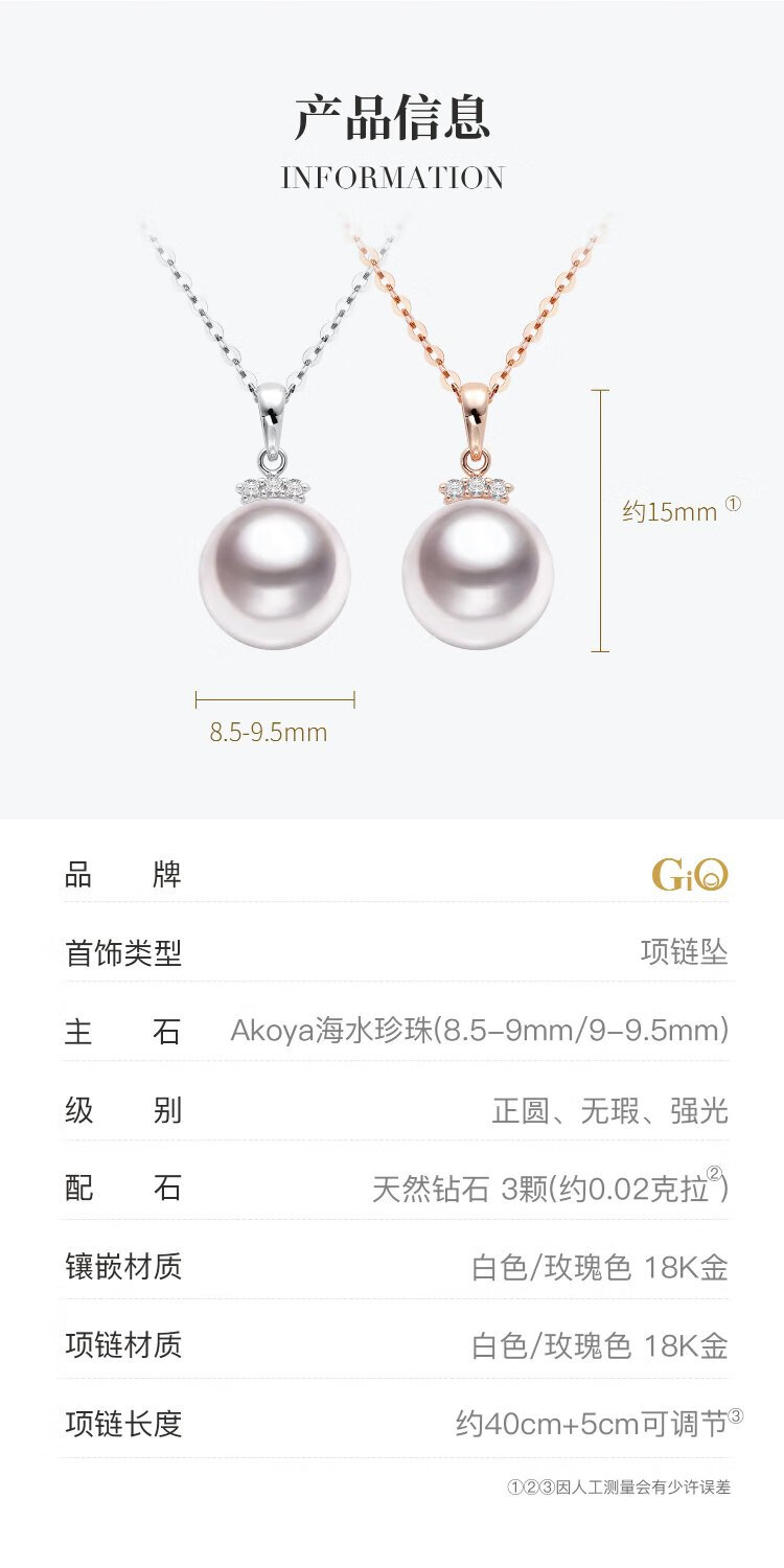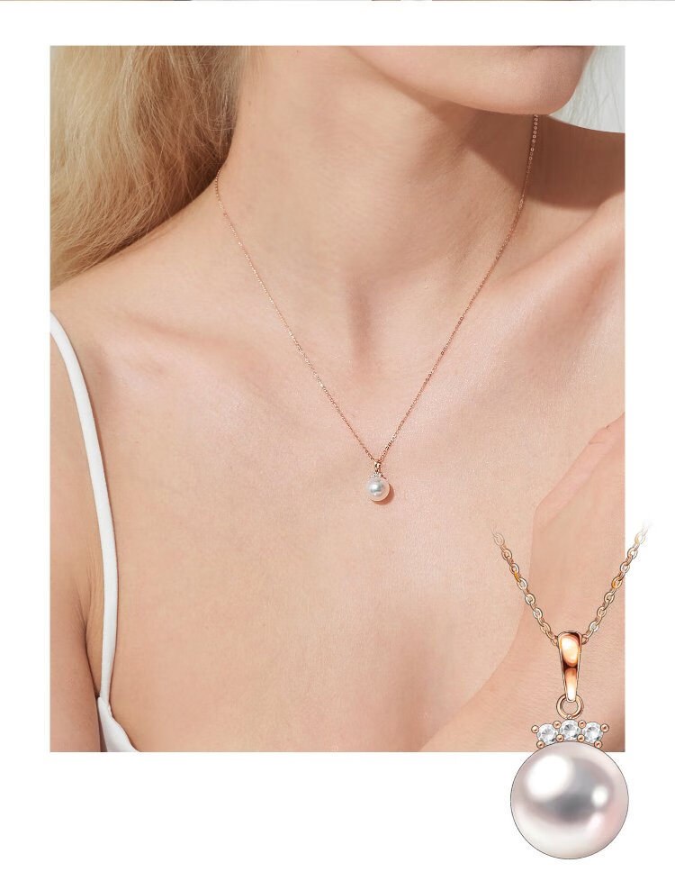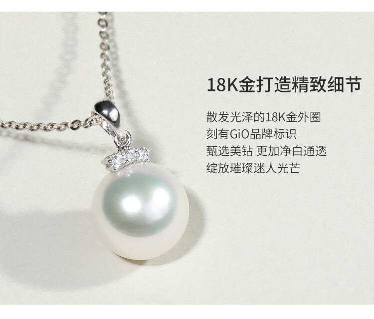 GiO Jewelry Akoya Saltwater Pearl Necklace for Women 18K Gold with Diamonds as a Birthday Gift for Wife