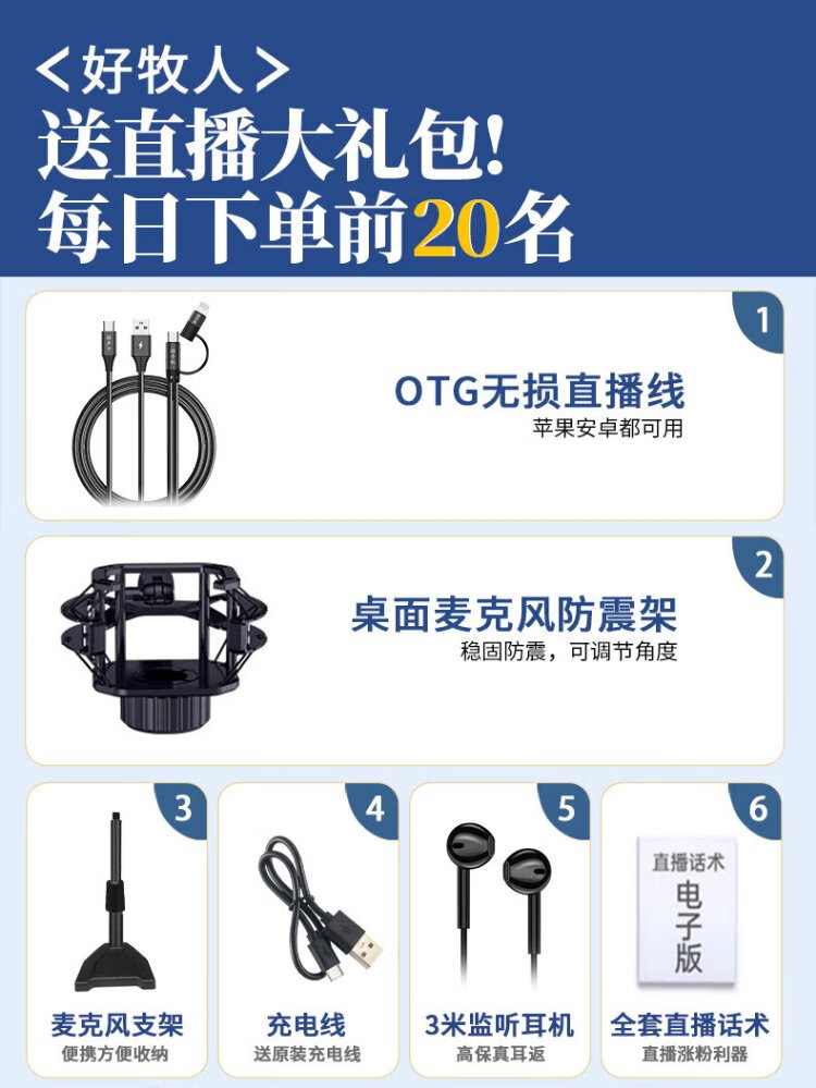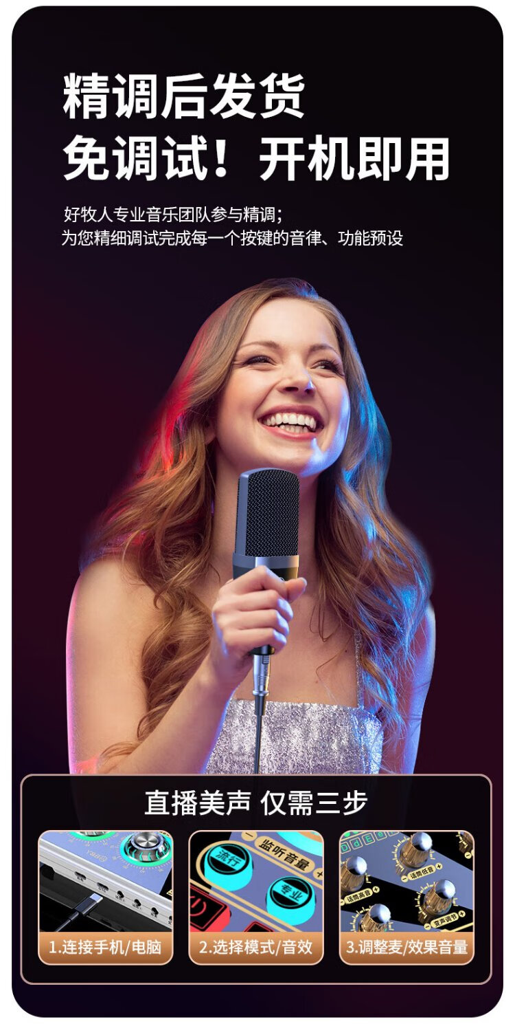 Good Shepherd wireless live broadcast equipment full set mobile phone sound card singing dedicated Douyin Internet celebrity anchor outdoor karaoke recording microphone microphone stand professional external computer voice changer
