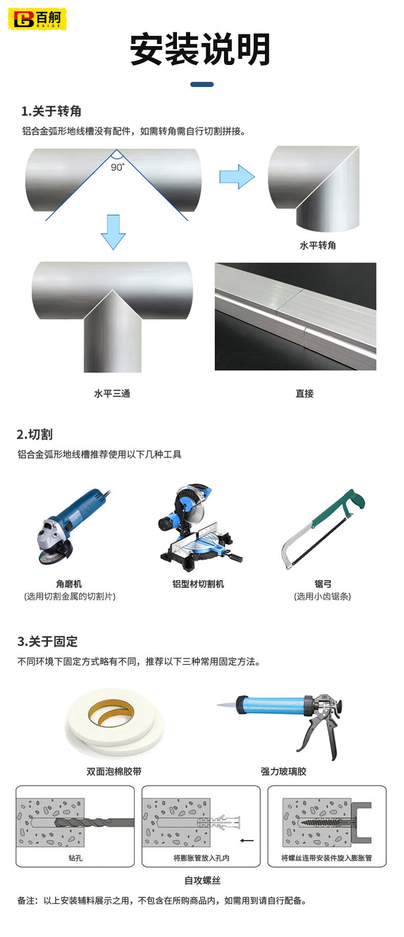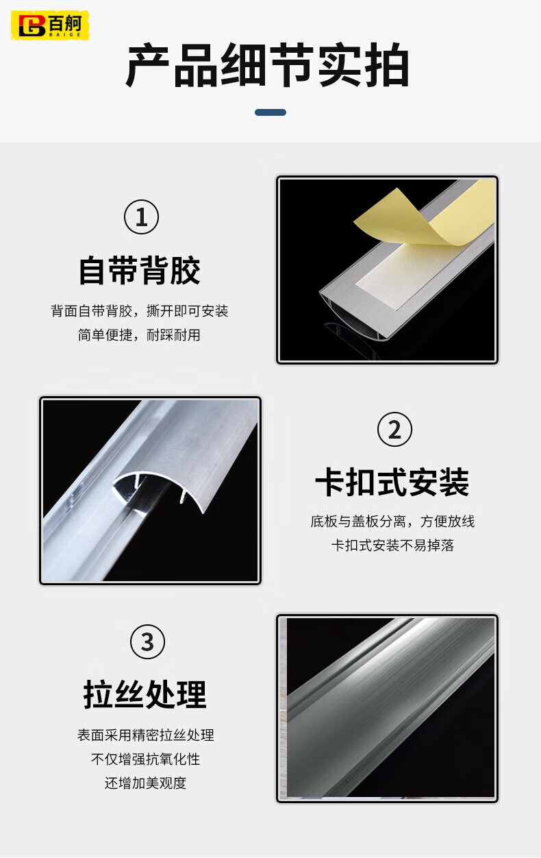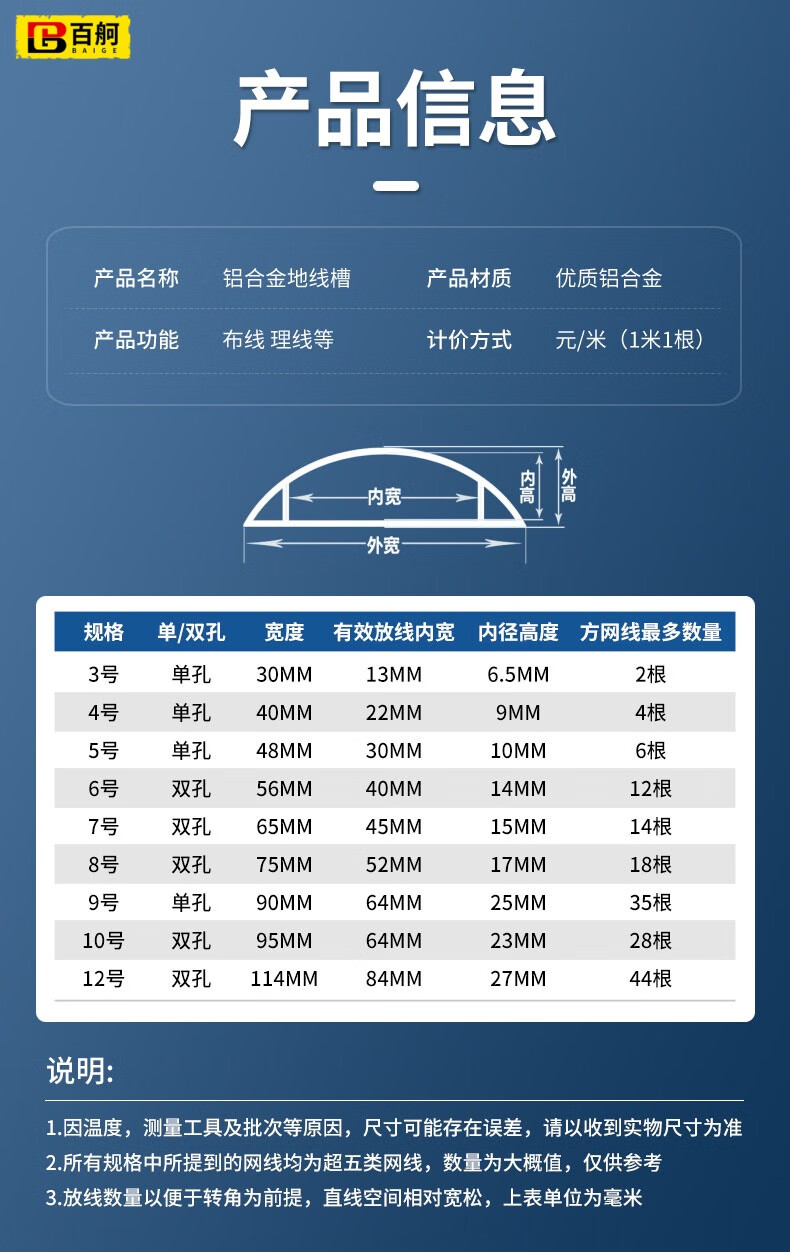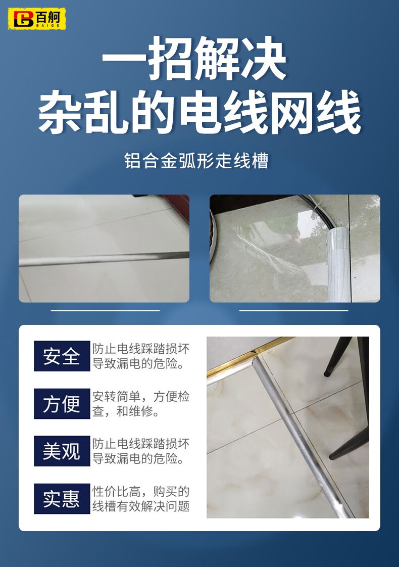 Baige aluminum alloy cable duct, metal extra thick anti-step open wire cable duct, curved ground cable trough, network cable crimping trough plate, No. 4, 1 meter/piece, two pieces/set CD003943