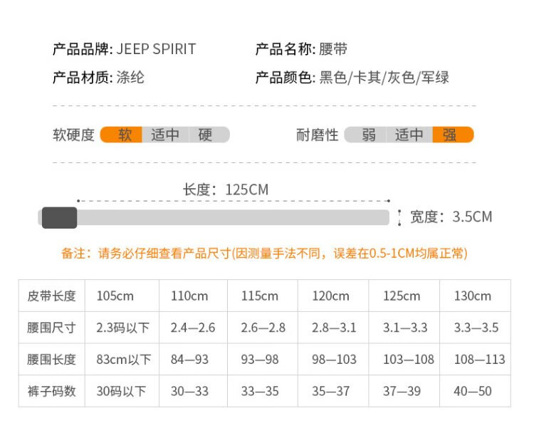 JEEP SPIRITJEEP Jeep belt men's canvas belt automatic buckle toothless simple wear-resistant brand belt military training belt