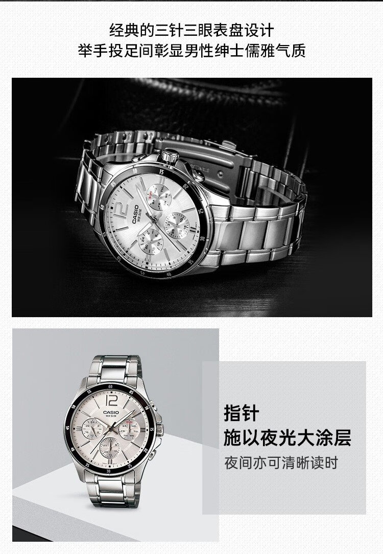 CASIO men's classic three-disc sports waterproof quartz watch business casual quartz men's watch MTP-1374D-1AVDF