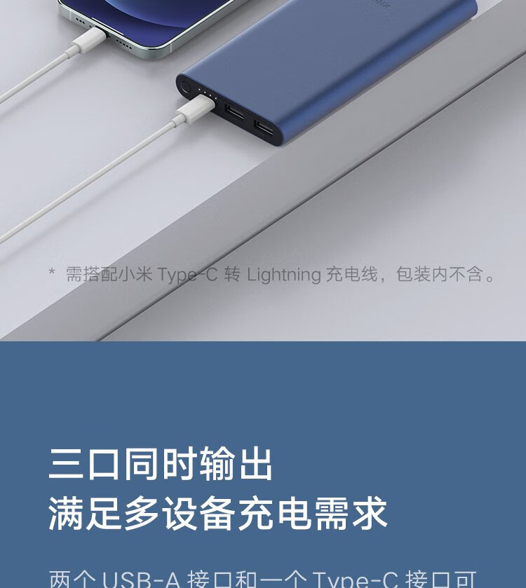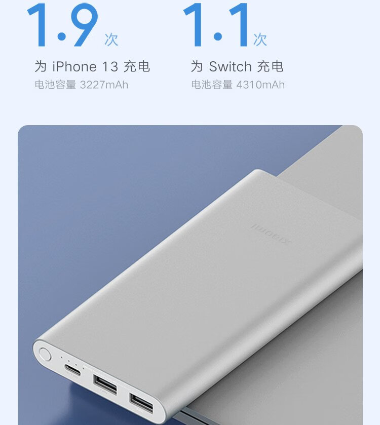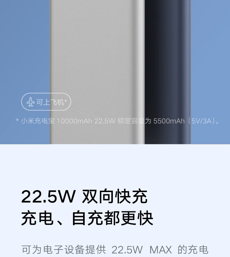 小米【3C认证】充电宝移动电源 10000 22.5W苹果20W充电 PD双向快充 银色适用苹果安卓可上飞机/火车