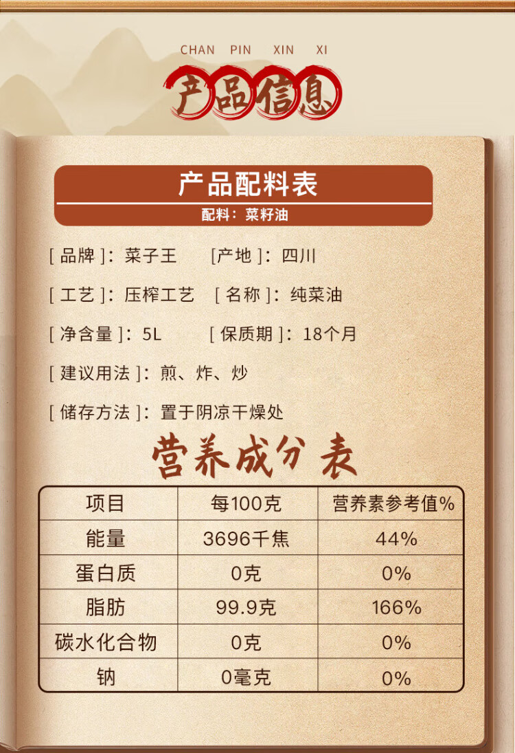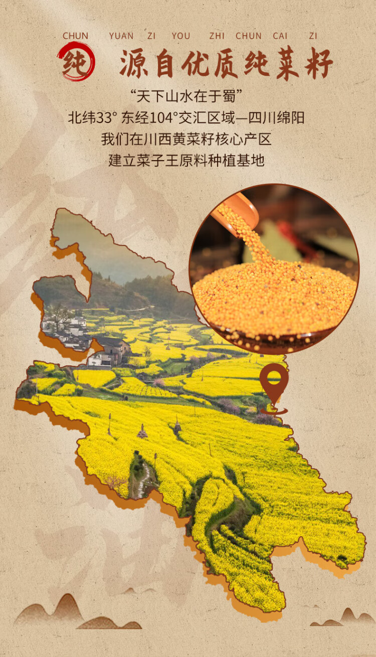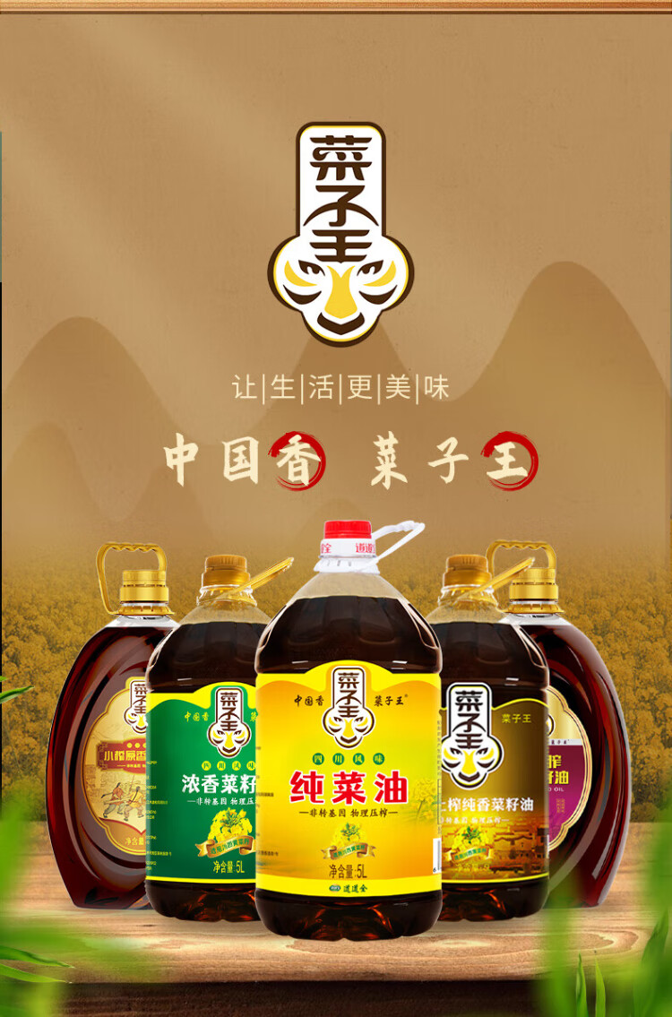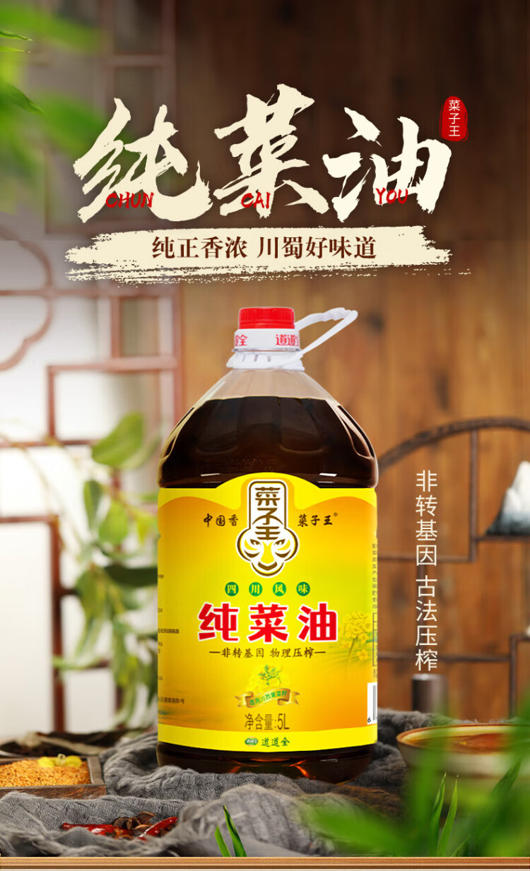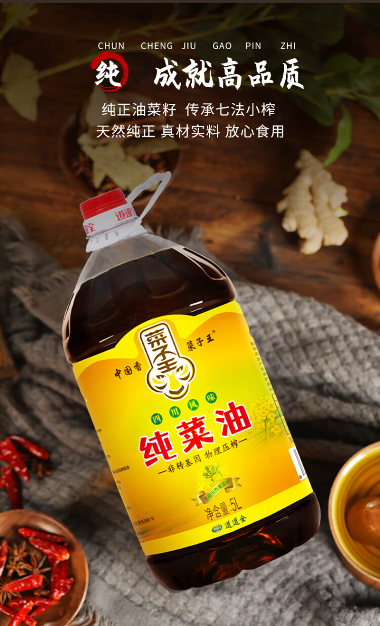 Rapeseed King Authentic Rapeseed Oil Pure Rapeseed Oil Non-GMO Traditional Press Sichuan Style Rapeseed Oil Edible Oil 5L