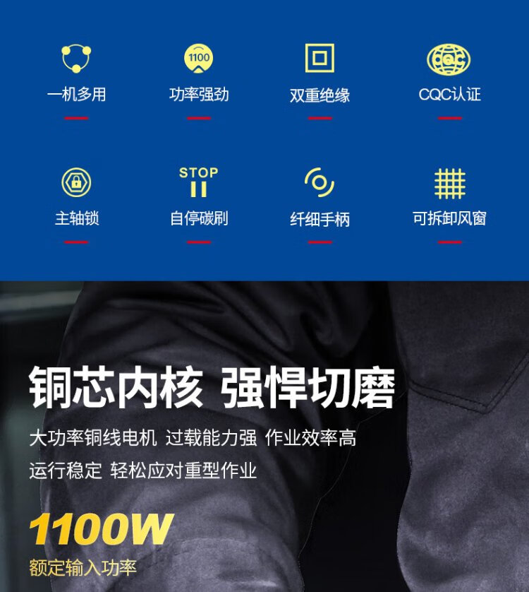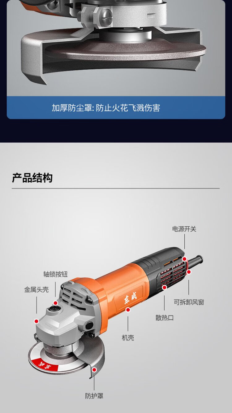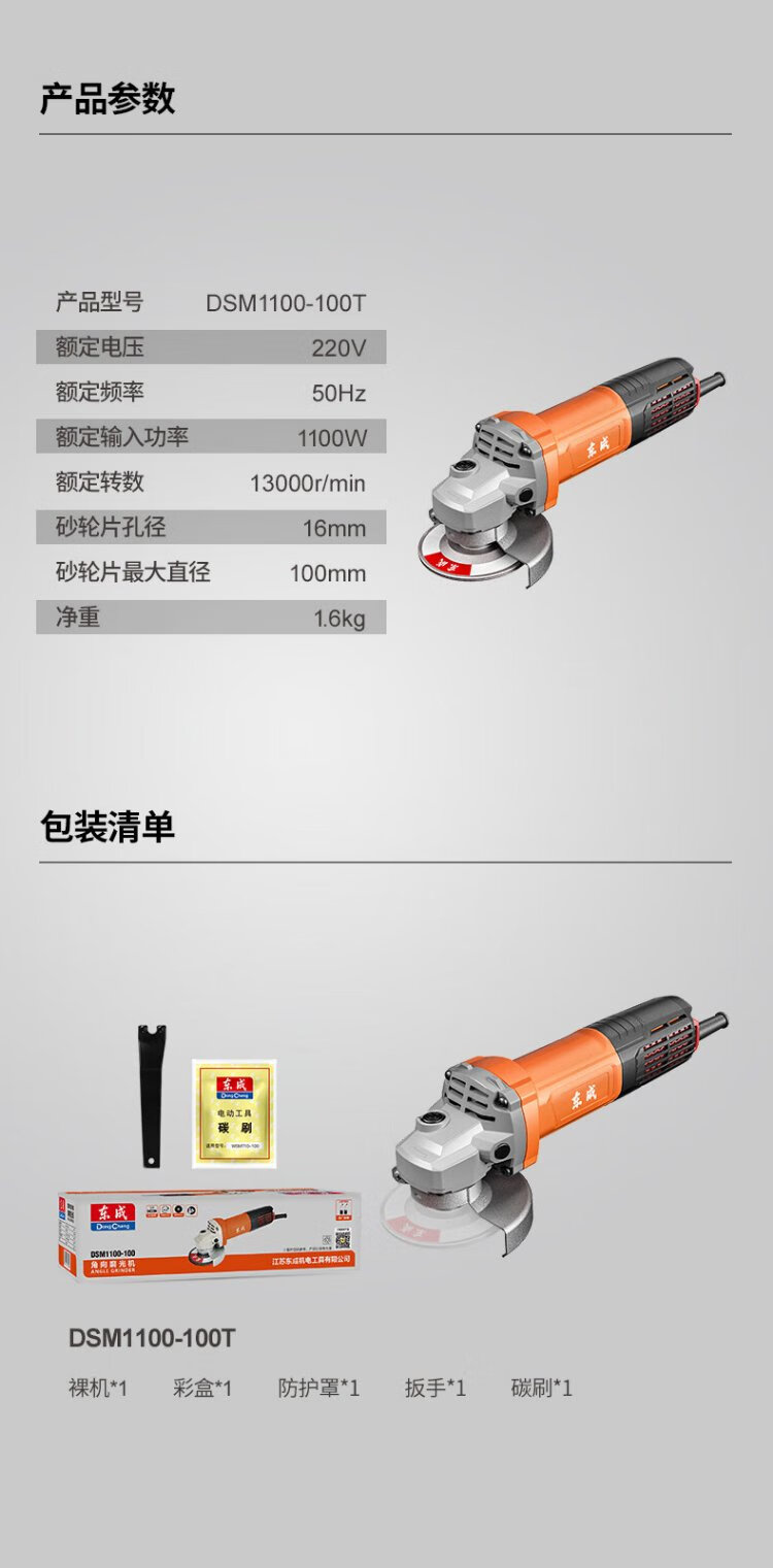 东成1100W角磨机1100-100t后开关切割机打磨机电动工具