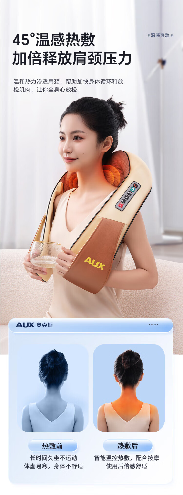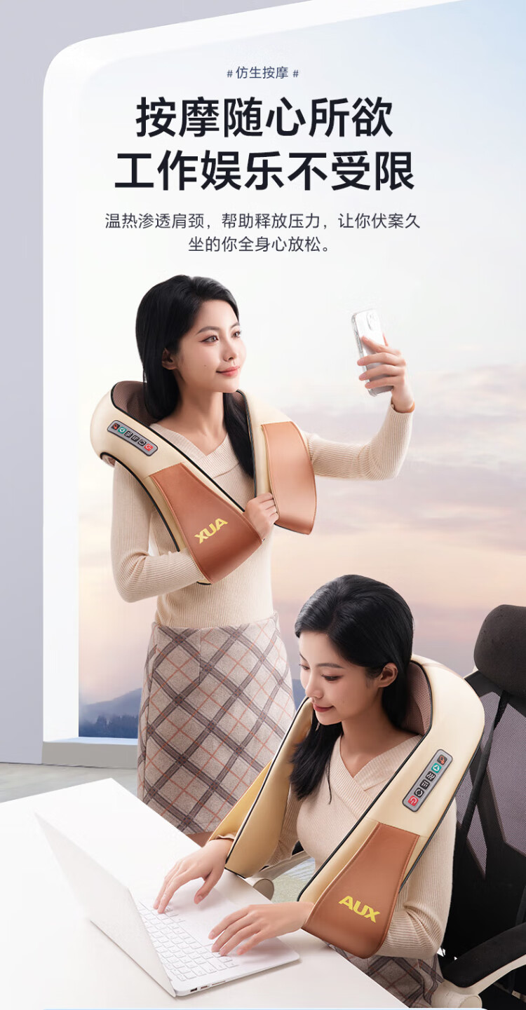 AUX cervical spine massager AU-967 shoulder and neck massage shawl neck shoulder and back massage waist kneading massager double S curve plug-in model birthday and festival gifts for men and women