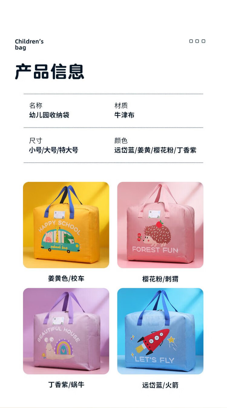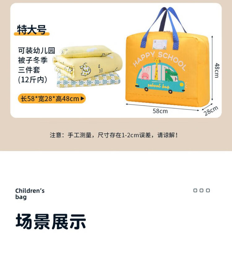 Baicaoyuan Kindergarten Quilt Storage Bag Thickened Oxford Cloth Student Wear Cotton Mattress Bag Children's Portable Luggage Packing Clothes