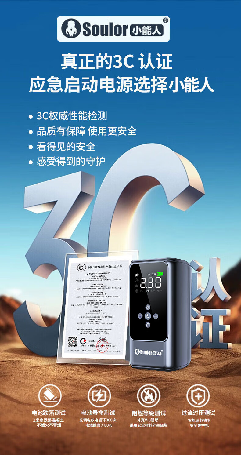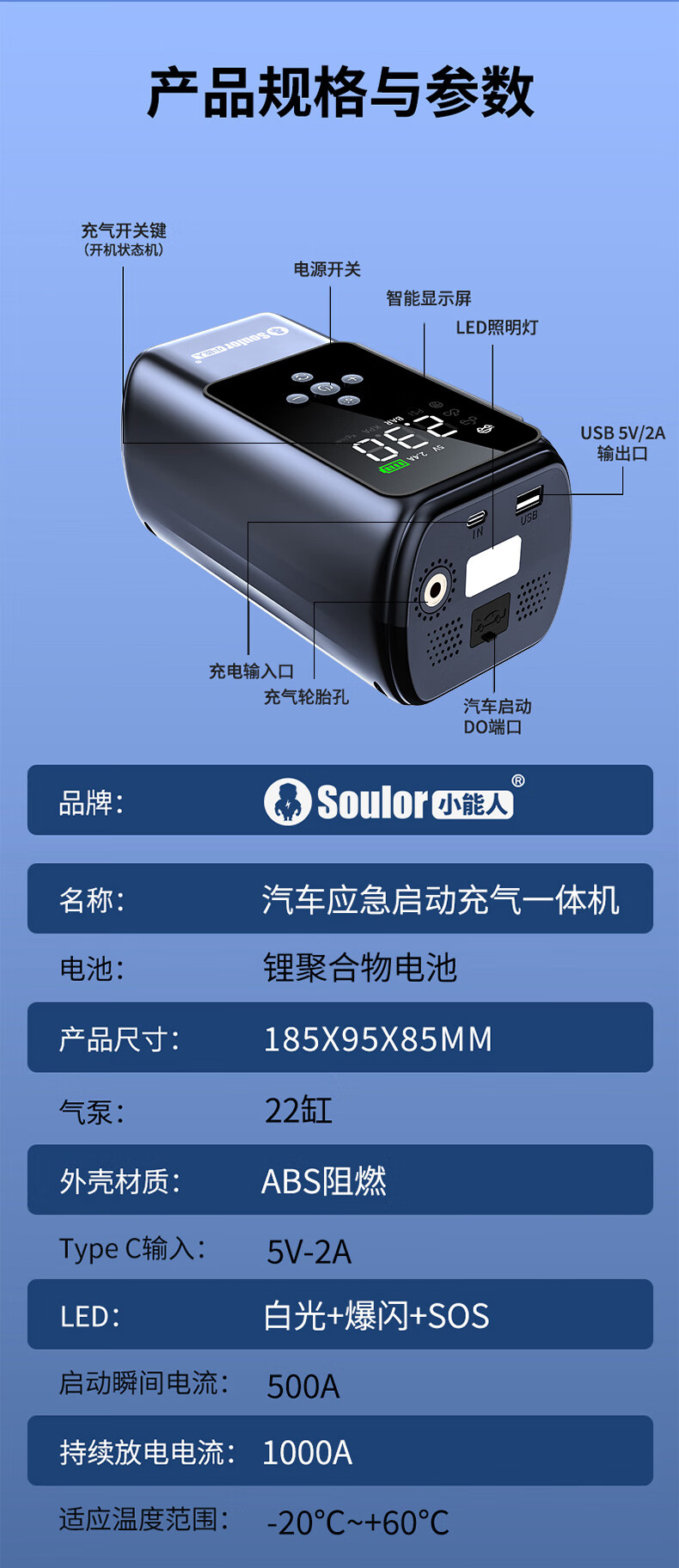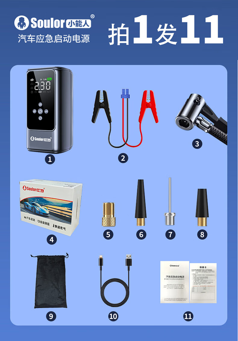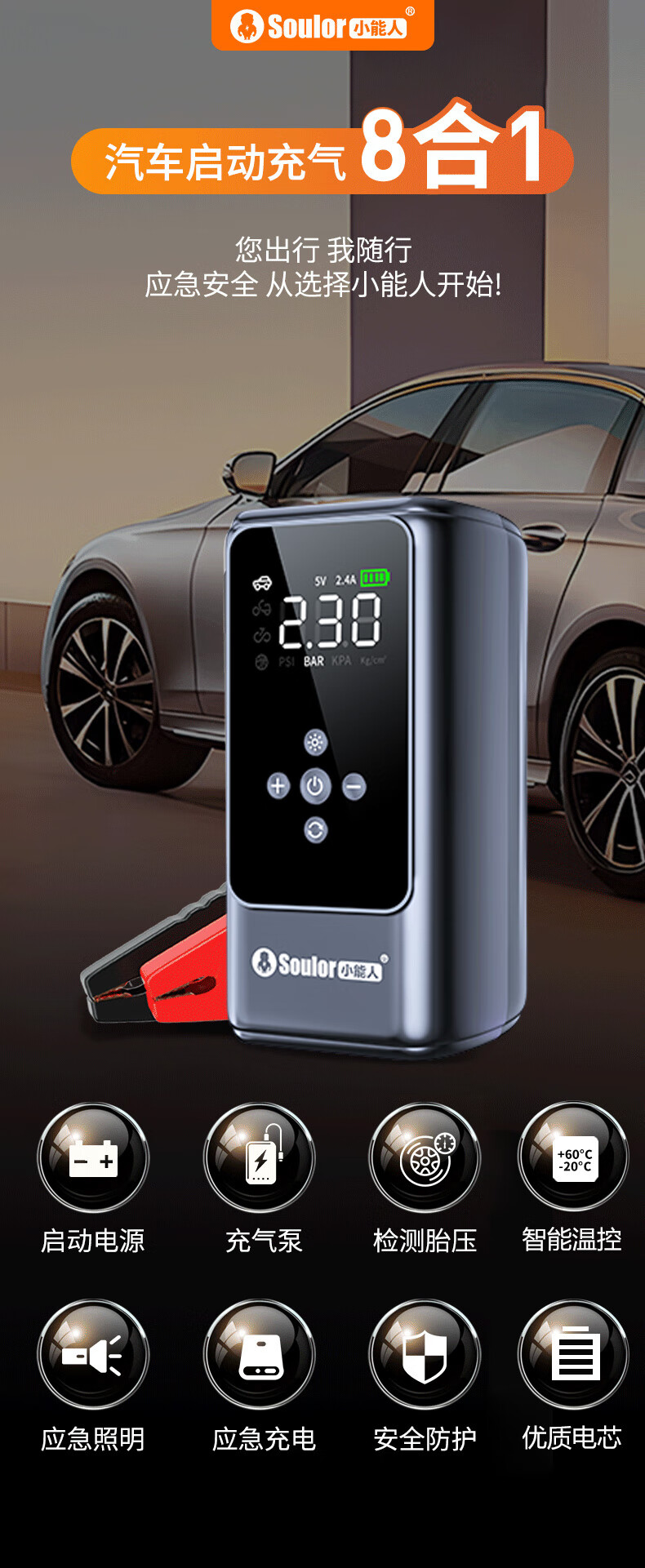 Soulor 3C certified car emergency starting power supply air pump all-in-one equipment emergency power bank car battery charger tire air pump