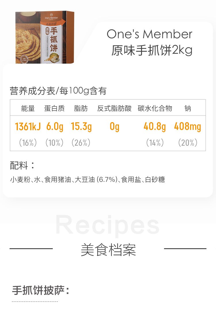 No. 1 Member Store Original Hand Pancake 0 Added Shortening 0 Trans Fatty Acid Breakfast Egg Mate 2kg (20 pieces)