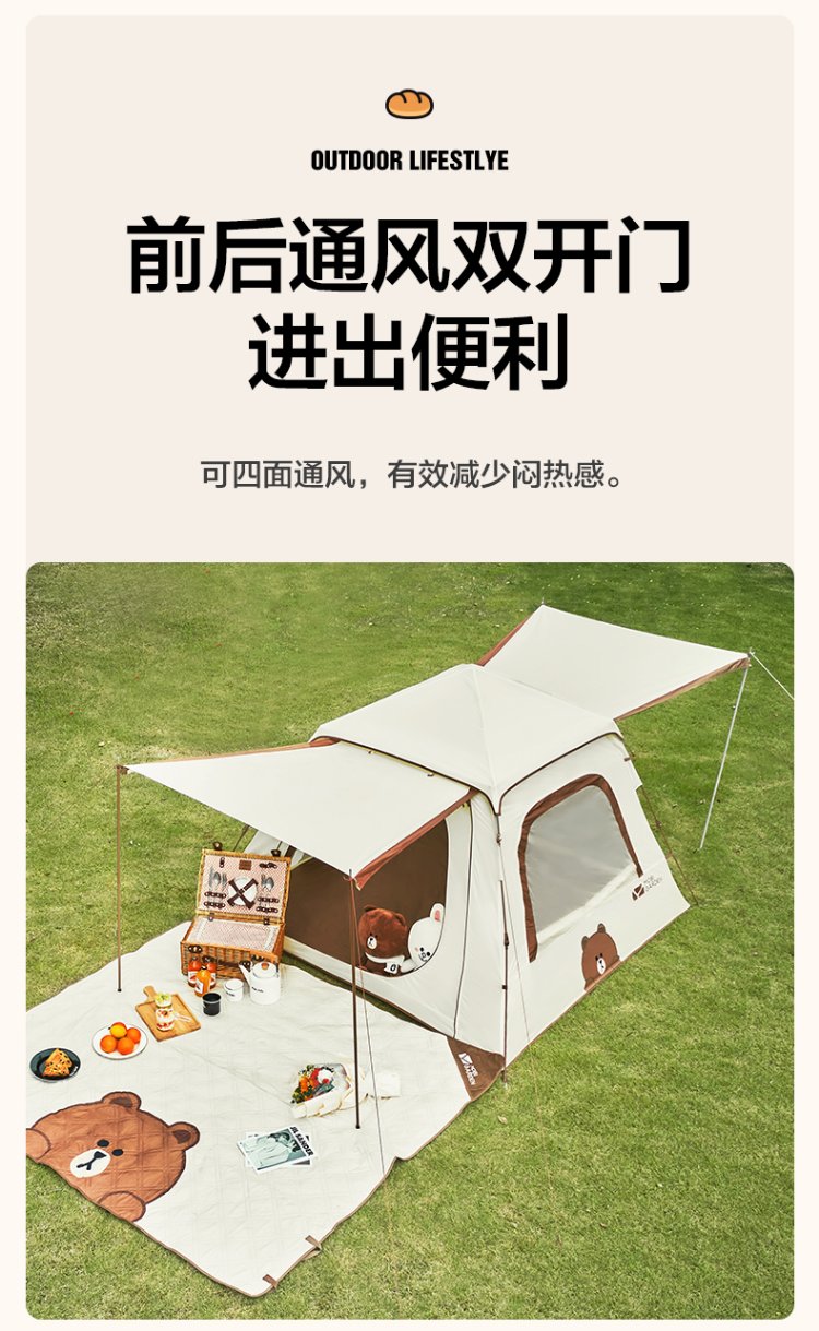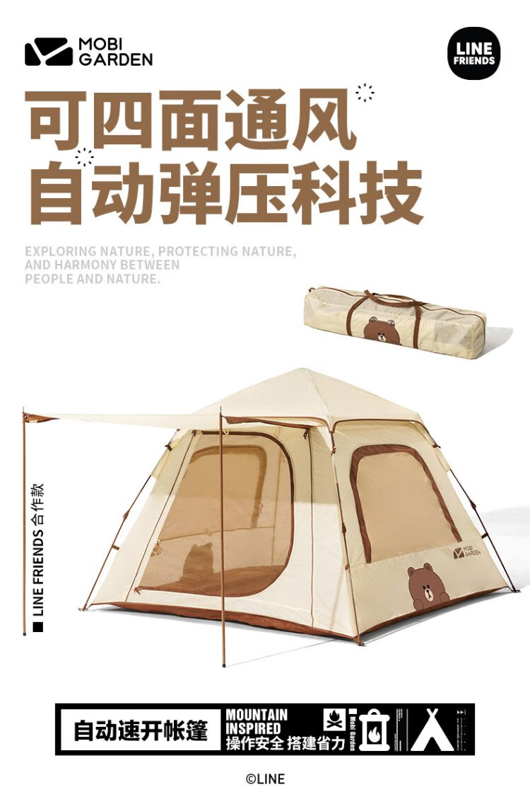 MOBIGARDEN LINE FRIENDS joint camping automatic tent space version 145 NX21561003 Brown Bear Beige