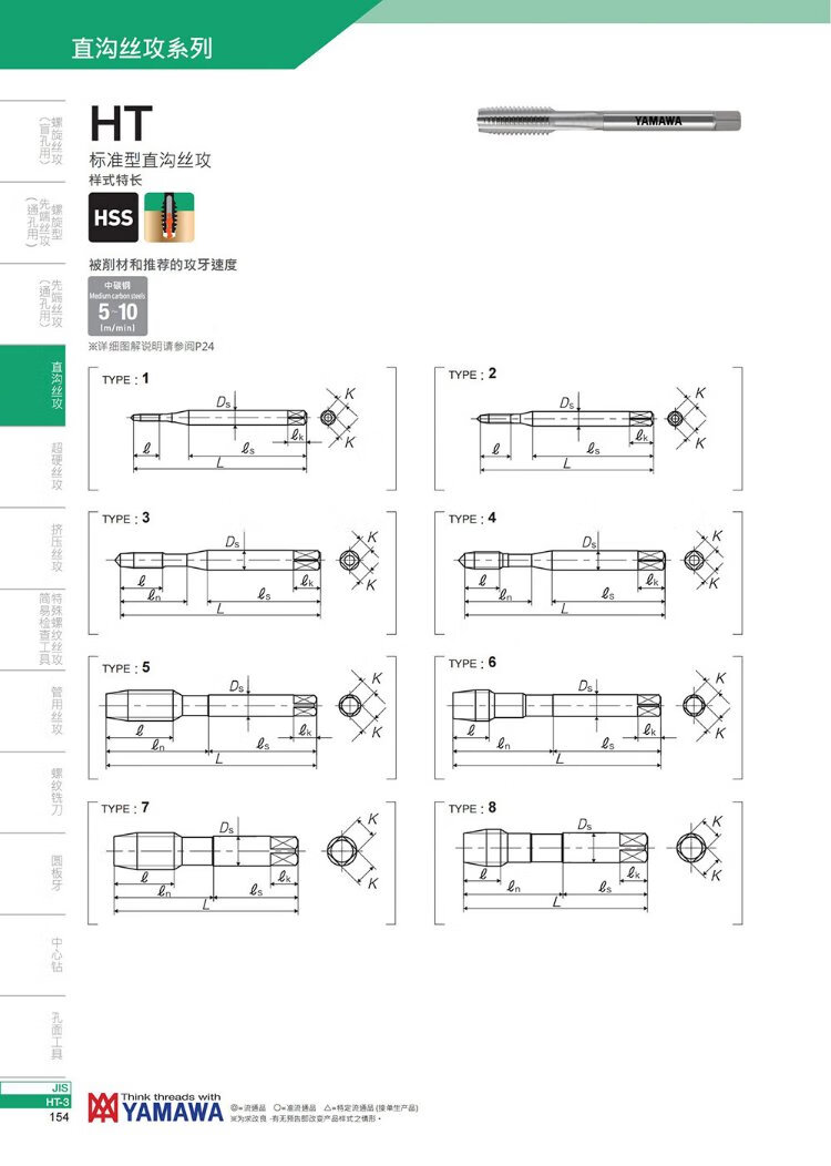 YAMAWA Japan imported machine straight groove tap HTM8 and below machine high-speed tool steel tap P2 (5P) M3X0.5