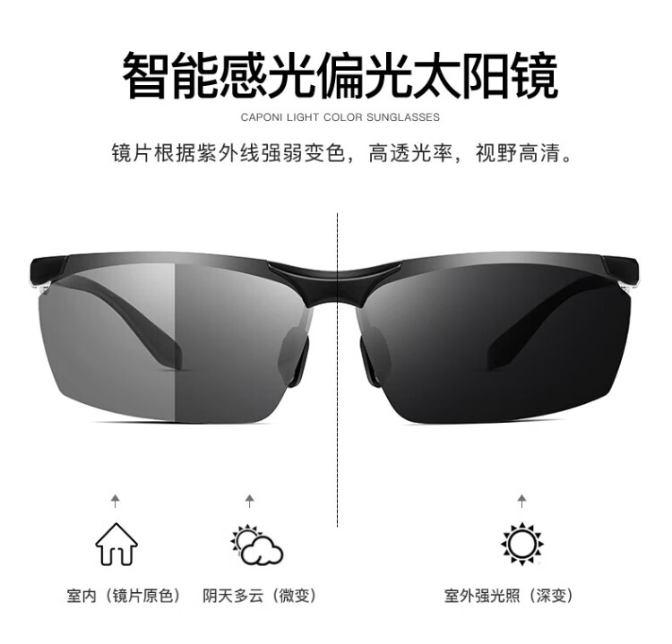 CAPONI fishing glasses, special polarized color-changing sunglasses for watching fish floats, men's driving sunglasses, day and night anti-UV