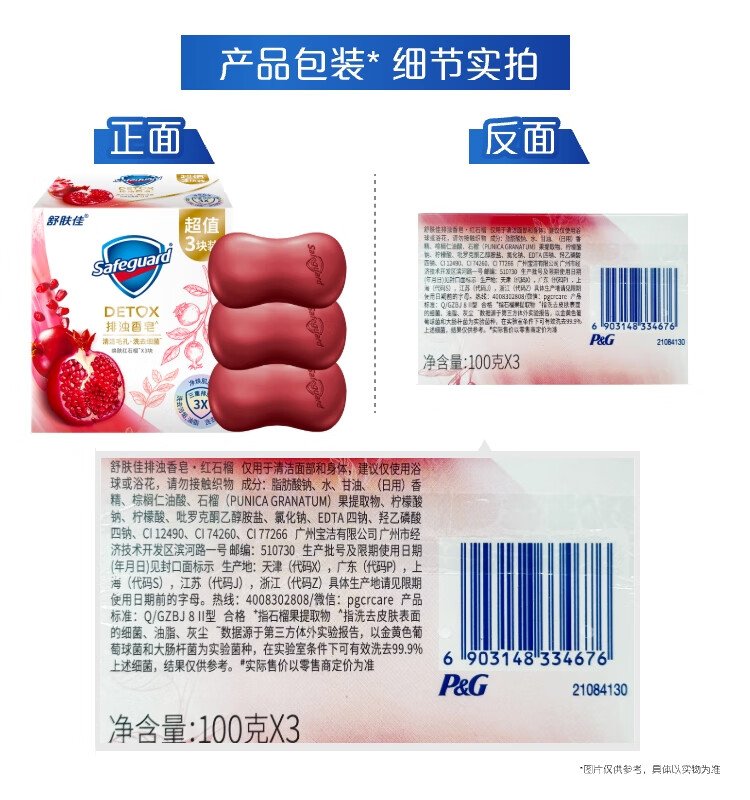 Safeguard Jingdong Gold List Detoxification Soap Red Pomegranate 100g*3 Soap Bath, Face, Hand Wash, Men and Women