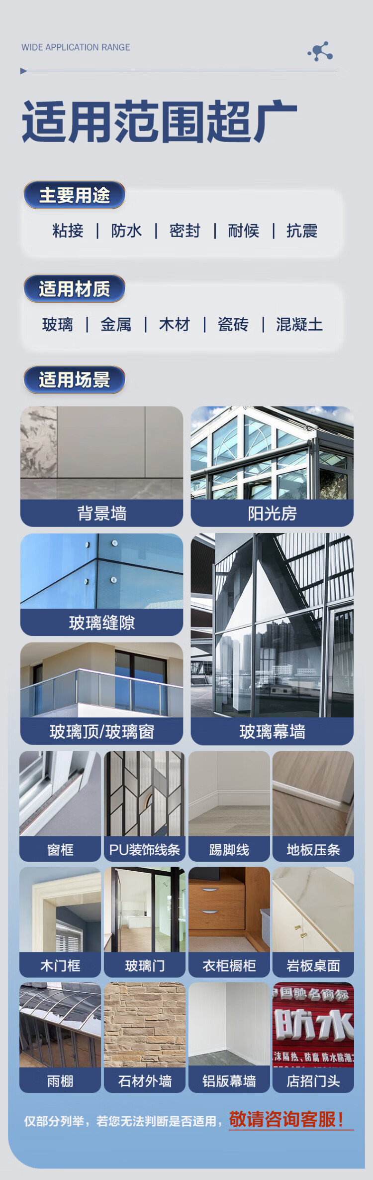 Yuhong waterproof WS301 silicone weather-resistant structural adhesive outdoor aluminum alloy doors and windows weather-resistant adhesive glass adhesive black