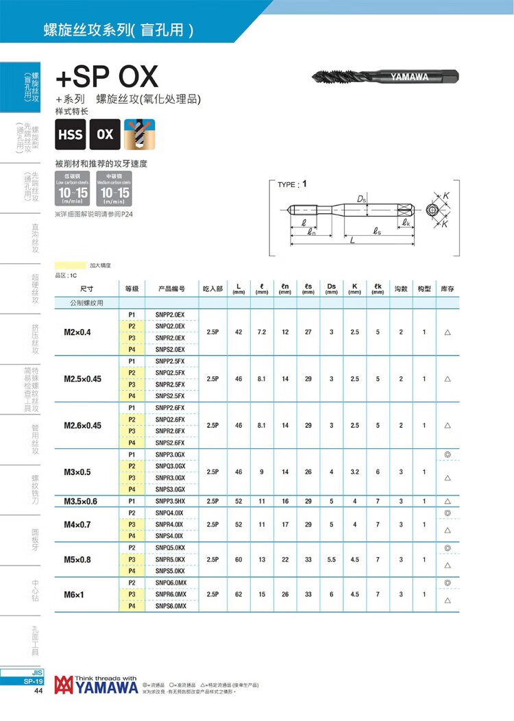 Japan imported YAMAWA universal spiral tap + SPOX oxidation treatment product chip removal blind hole machine tap P2 M6X1 3