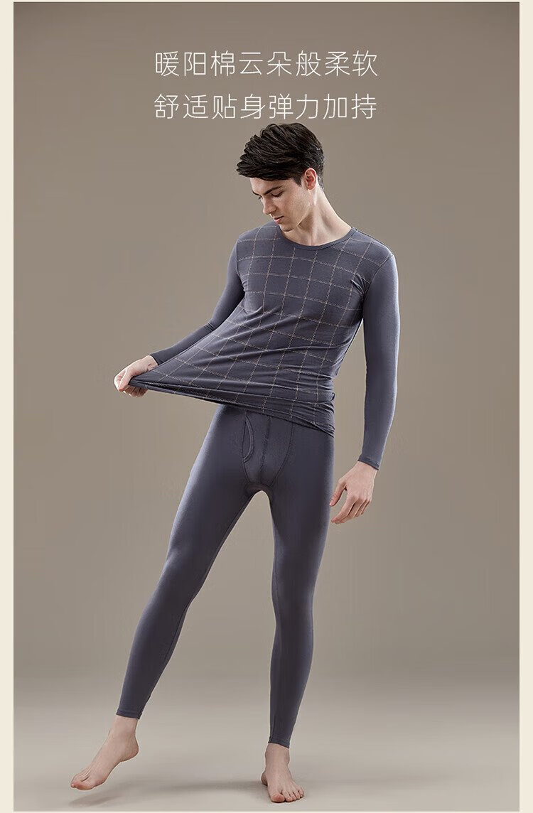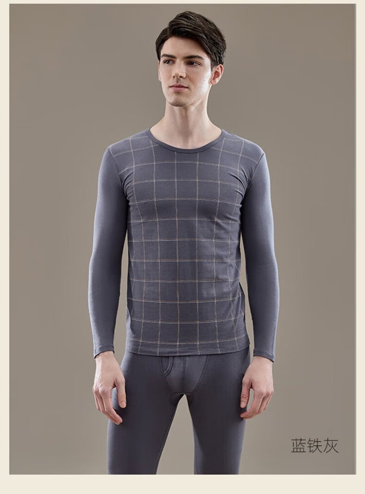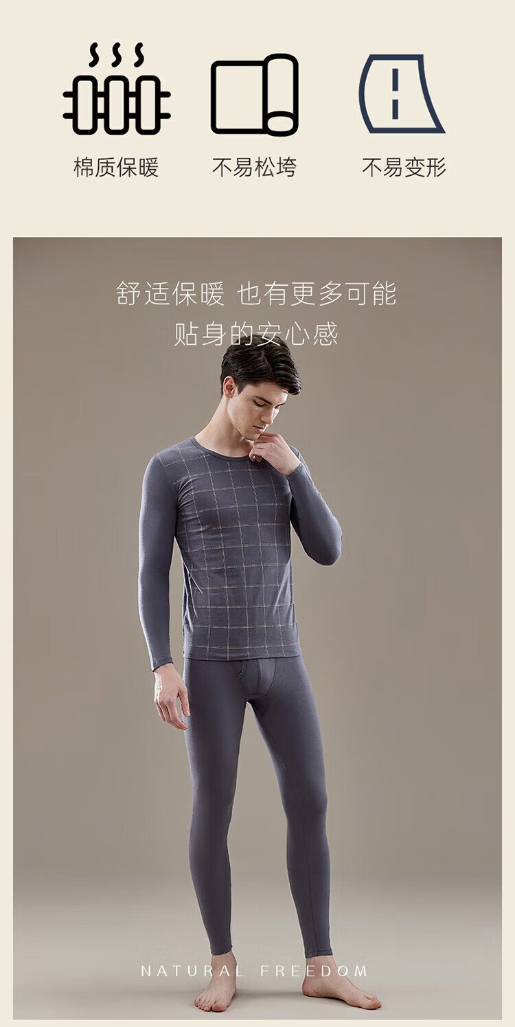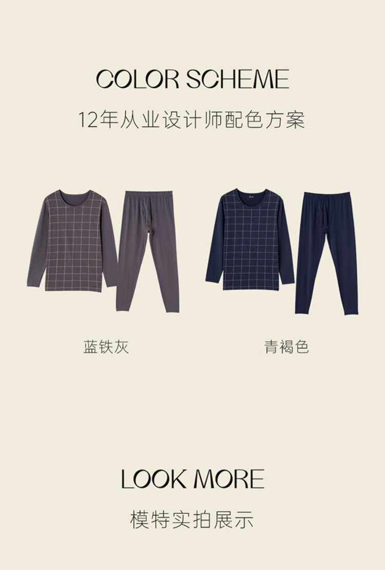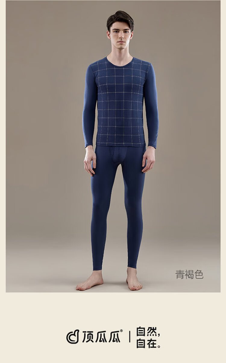 Dingguaguadingguagua autumn clothes and long johns men's cotton plaid business men's thin underwear set greenish brown 180