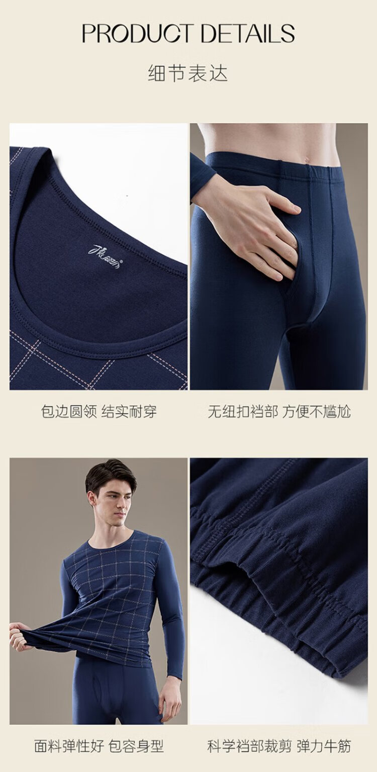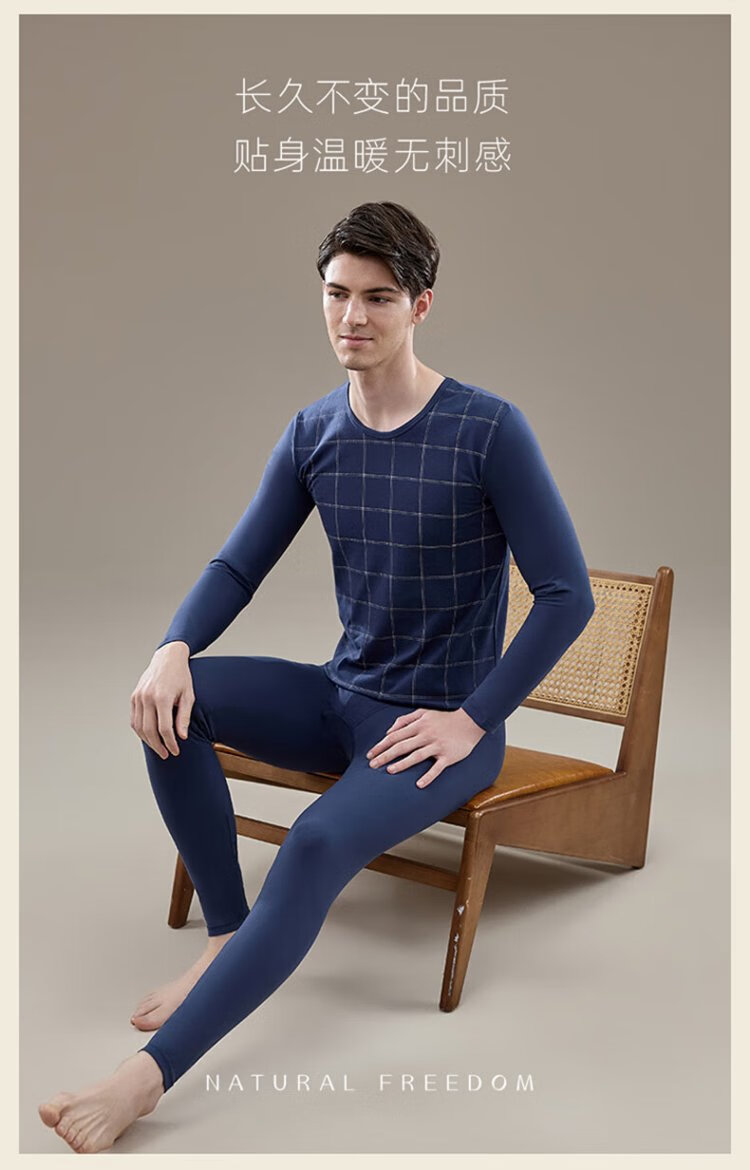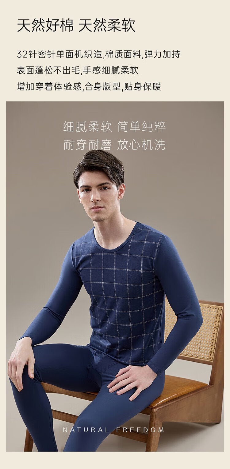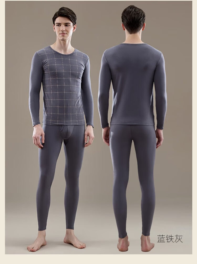 Dingguaguadingguagua autumn clothes and long johns men's cotton plaid business men's thin underwear set greenish brown 180