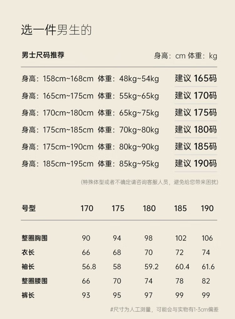 China (cm) 165 / 88-90 170 / 96-98 175 / 108-110 180 / 118-122 185 / 126-130