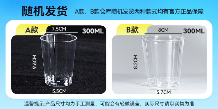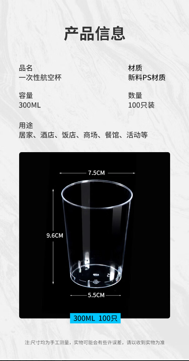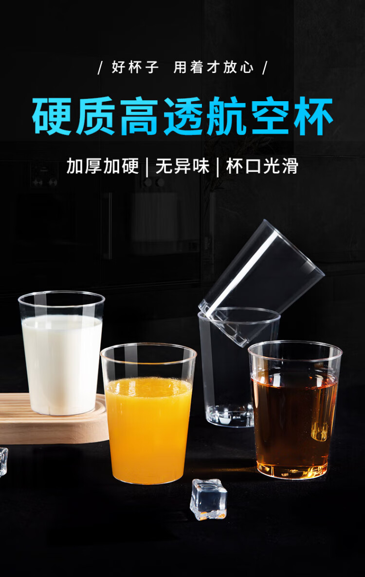 Temeiju disposable cup thickened aviation cup 300ml water cup tea cup hard plastic cup beverage cup space cup 100 pieces