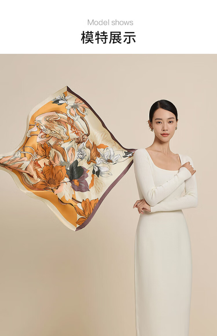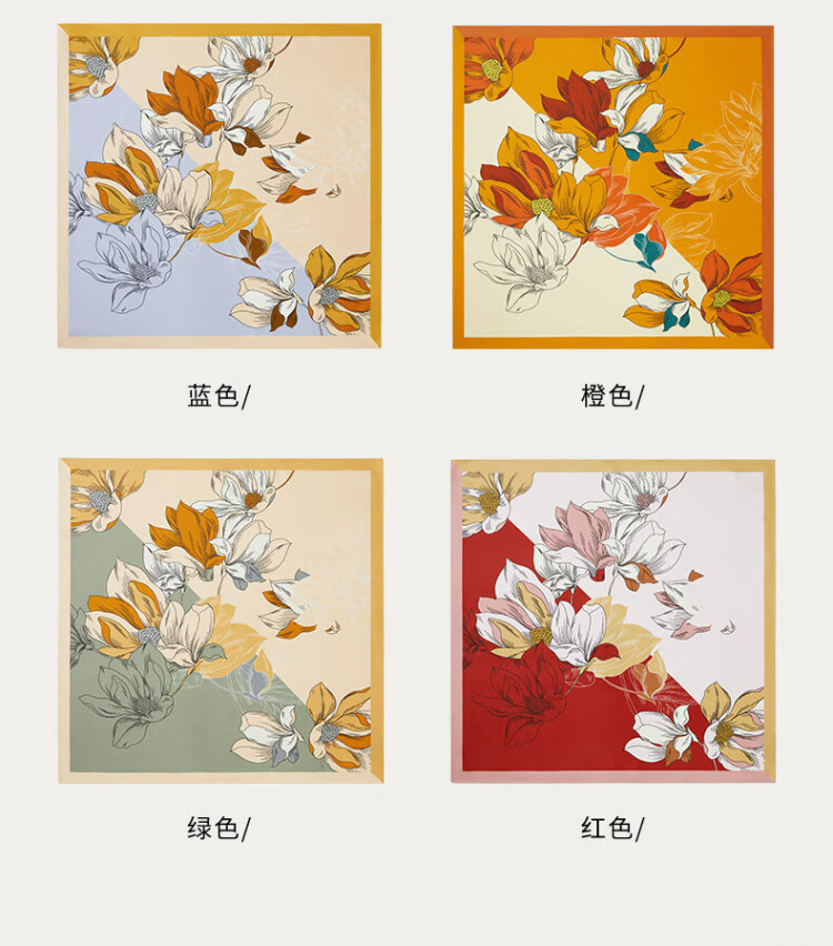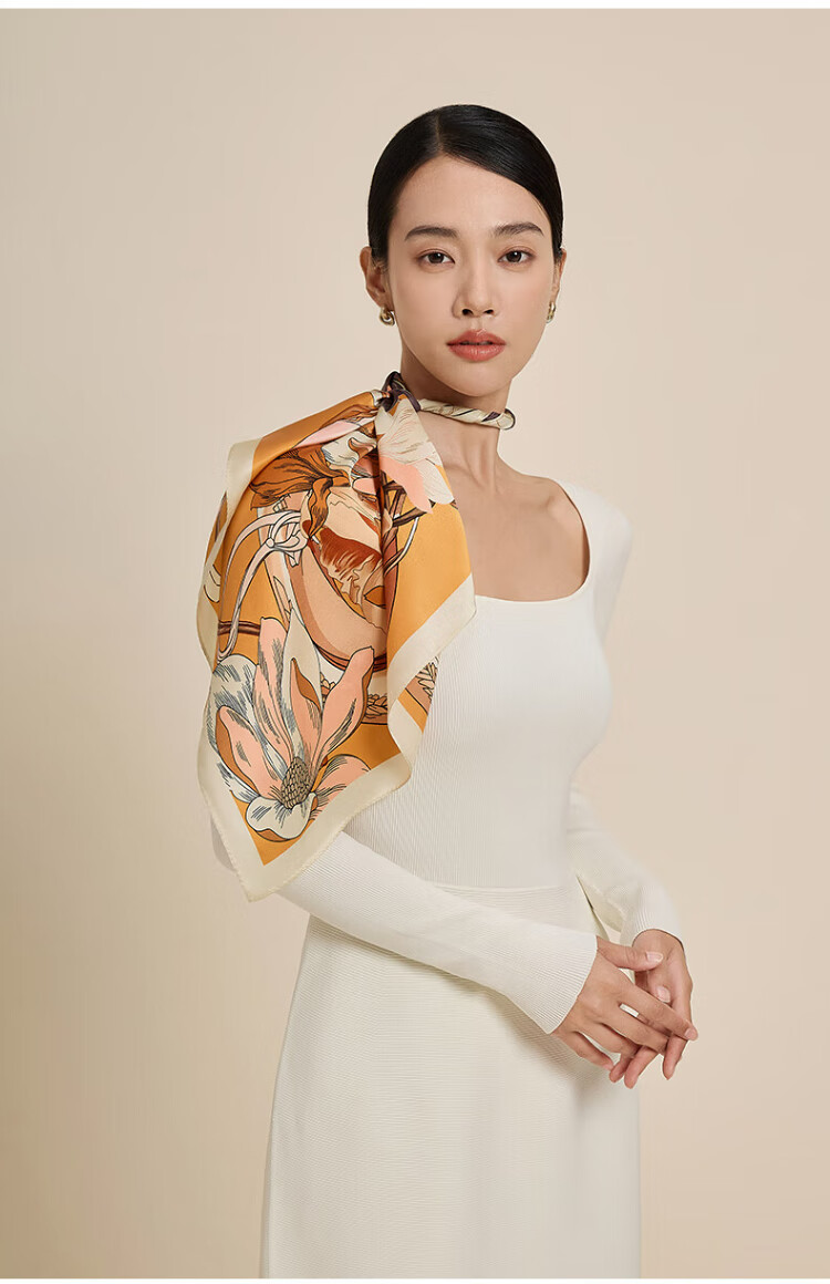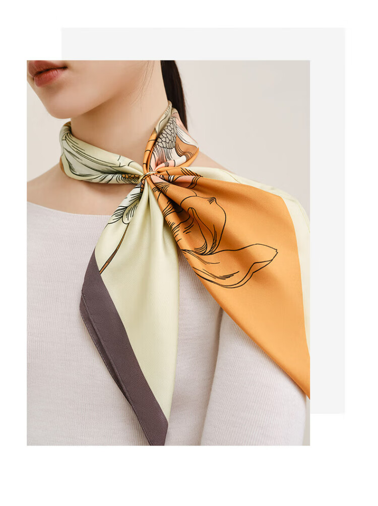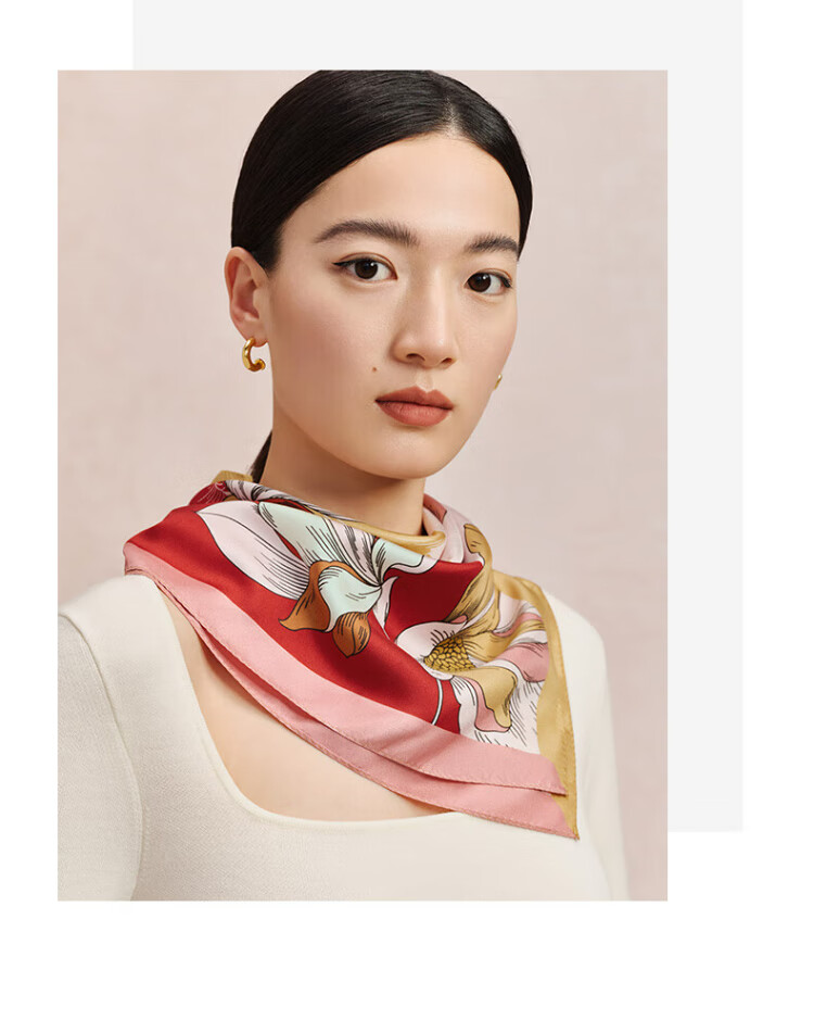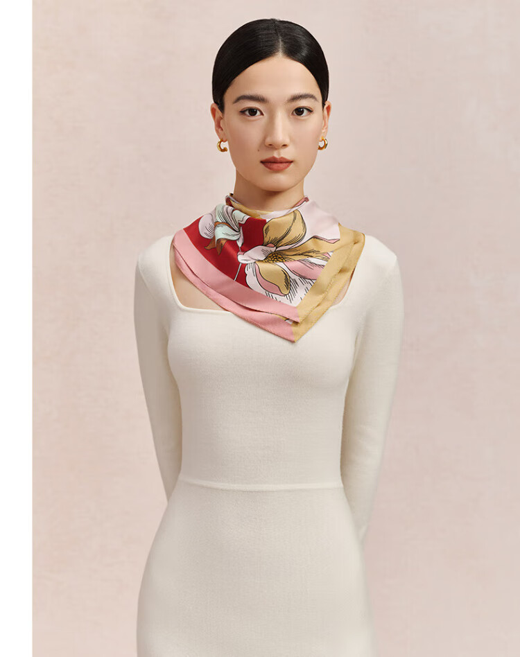 WENSLI silk scarf mulberry silk women's square scarf 63cm mother's birthday gift scarf gift box Magnolia Fu