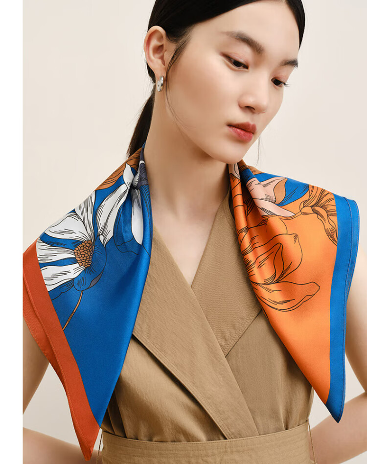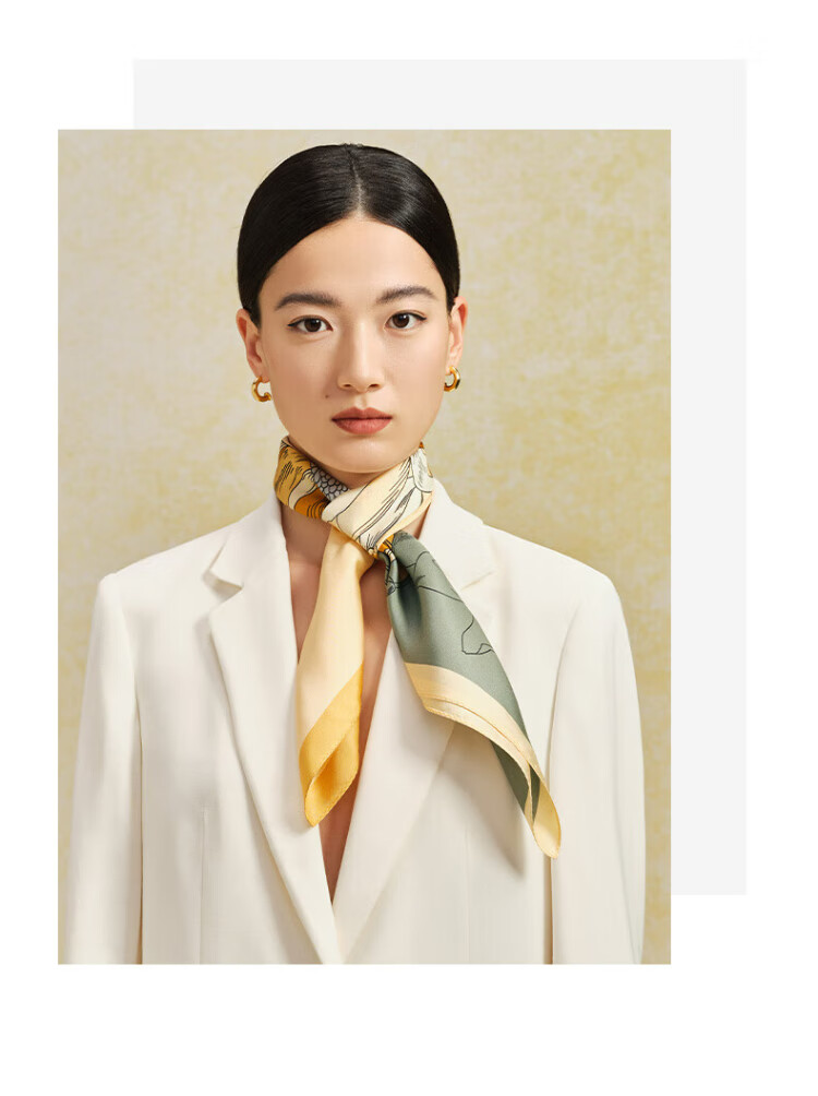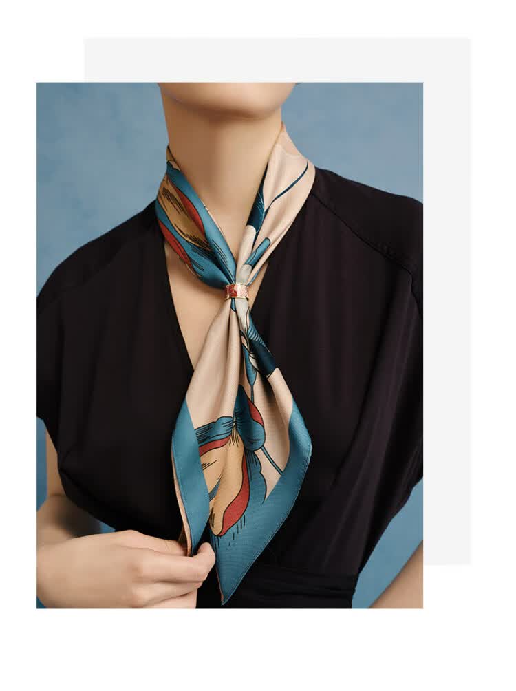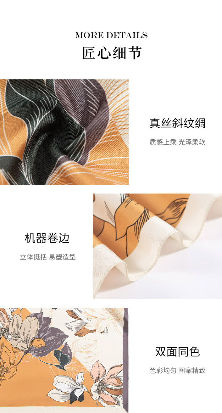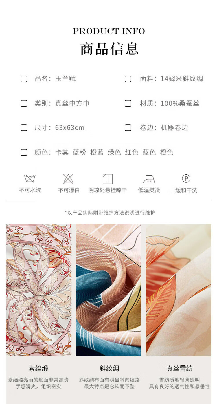 WENSLI silk scarf mulberry silk women's square scarf 63cm mother's birthday gift scarf gift box Magnolia Fu