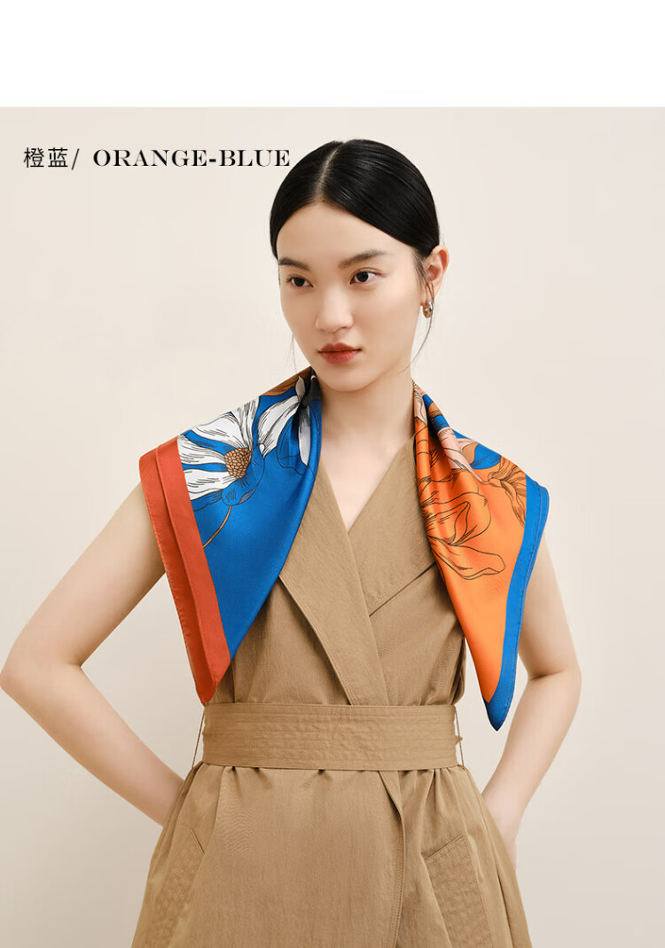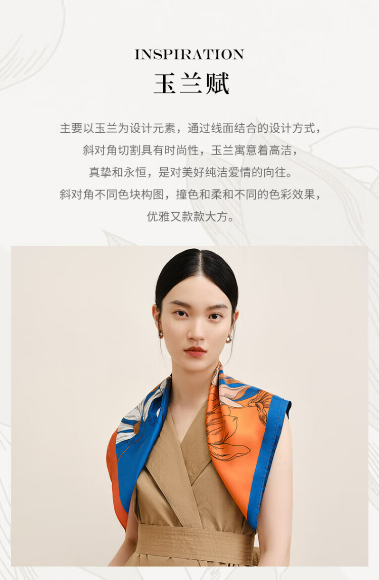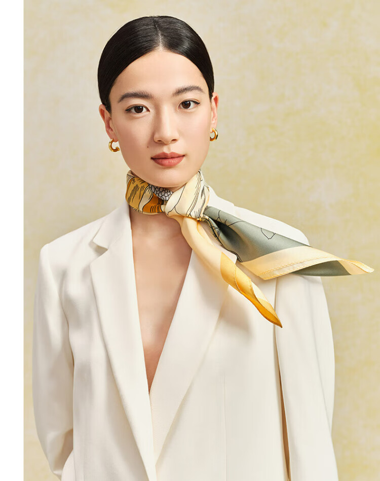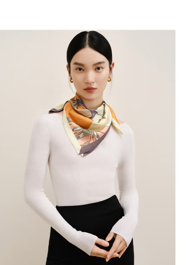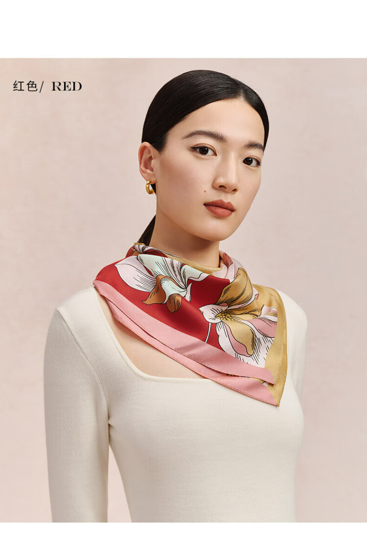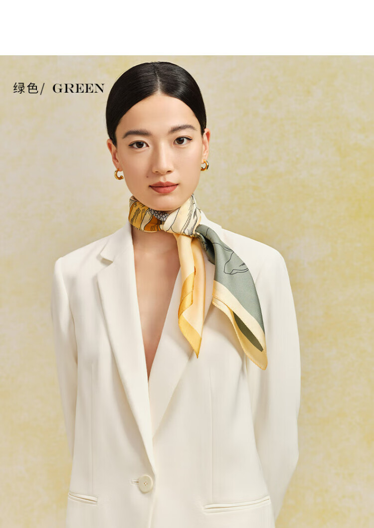 WENSLI silk scarf mulberry silk women's square scarf 63cm mother's birthday gift scarf gift box Magnolia Fu