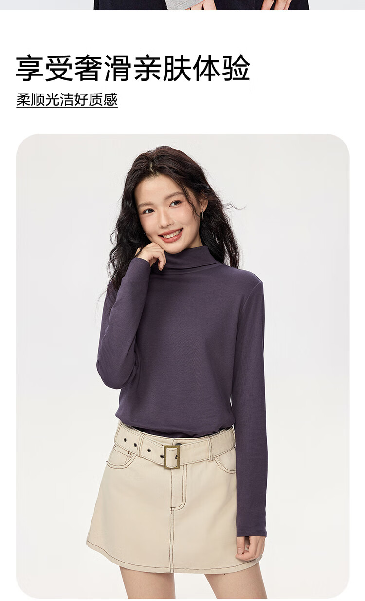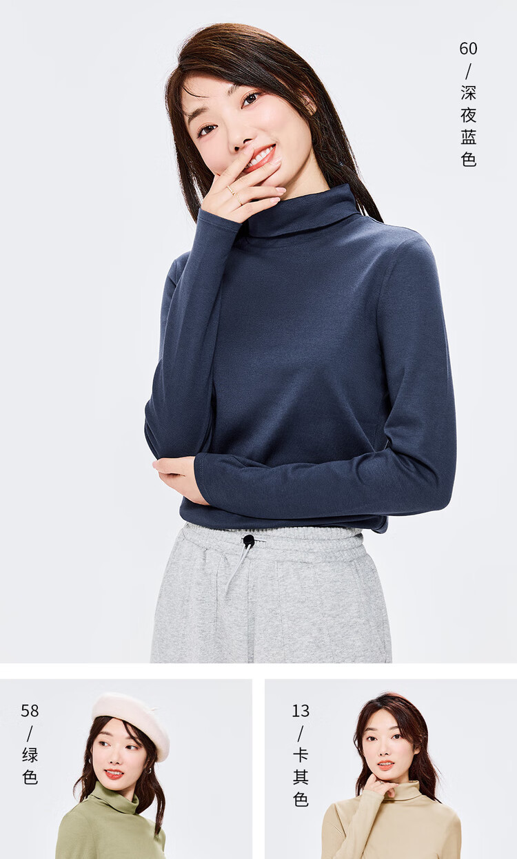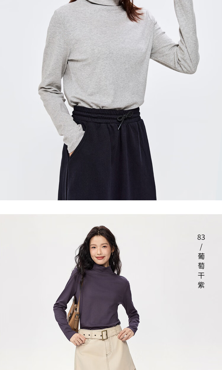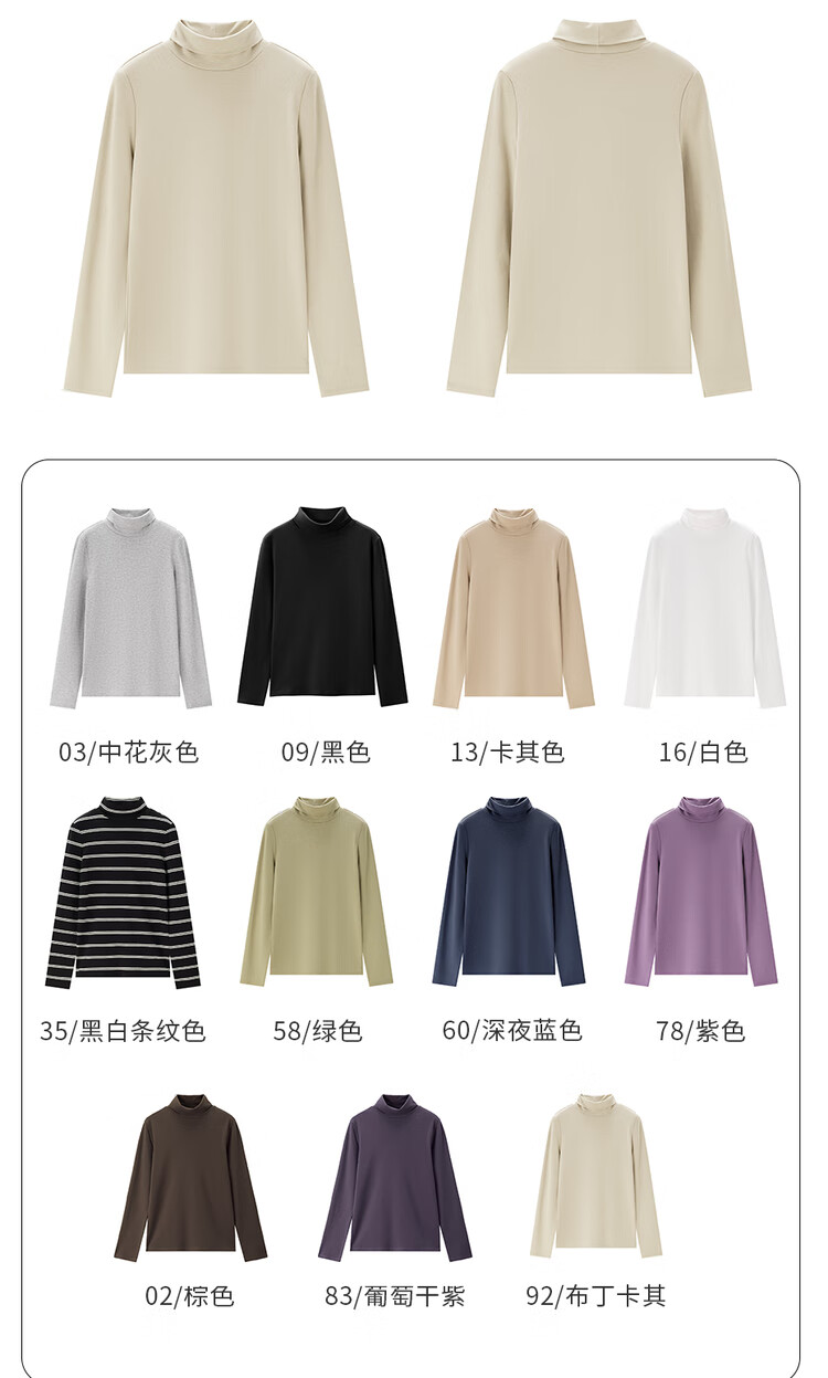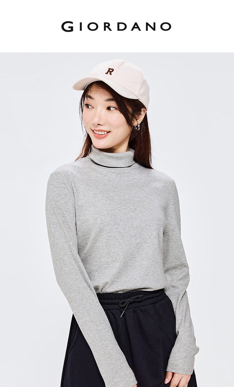 Giordano (Giordano) T-shirt women's basic bottoming shirt pure cotton top luxury smooth touch high collar long-sleeved T-shirt women 05322804