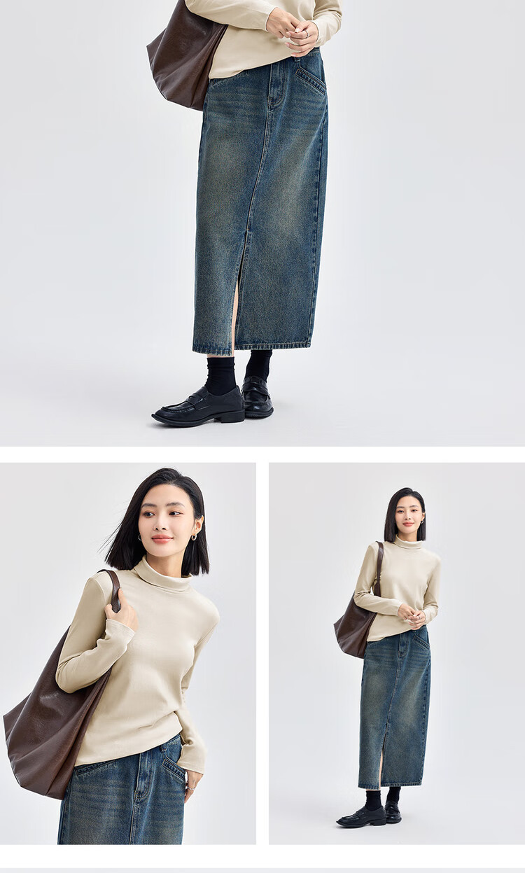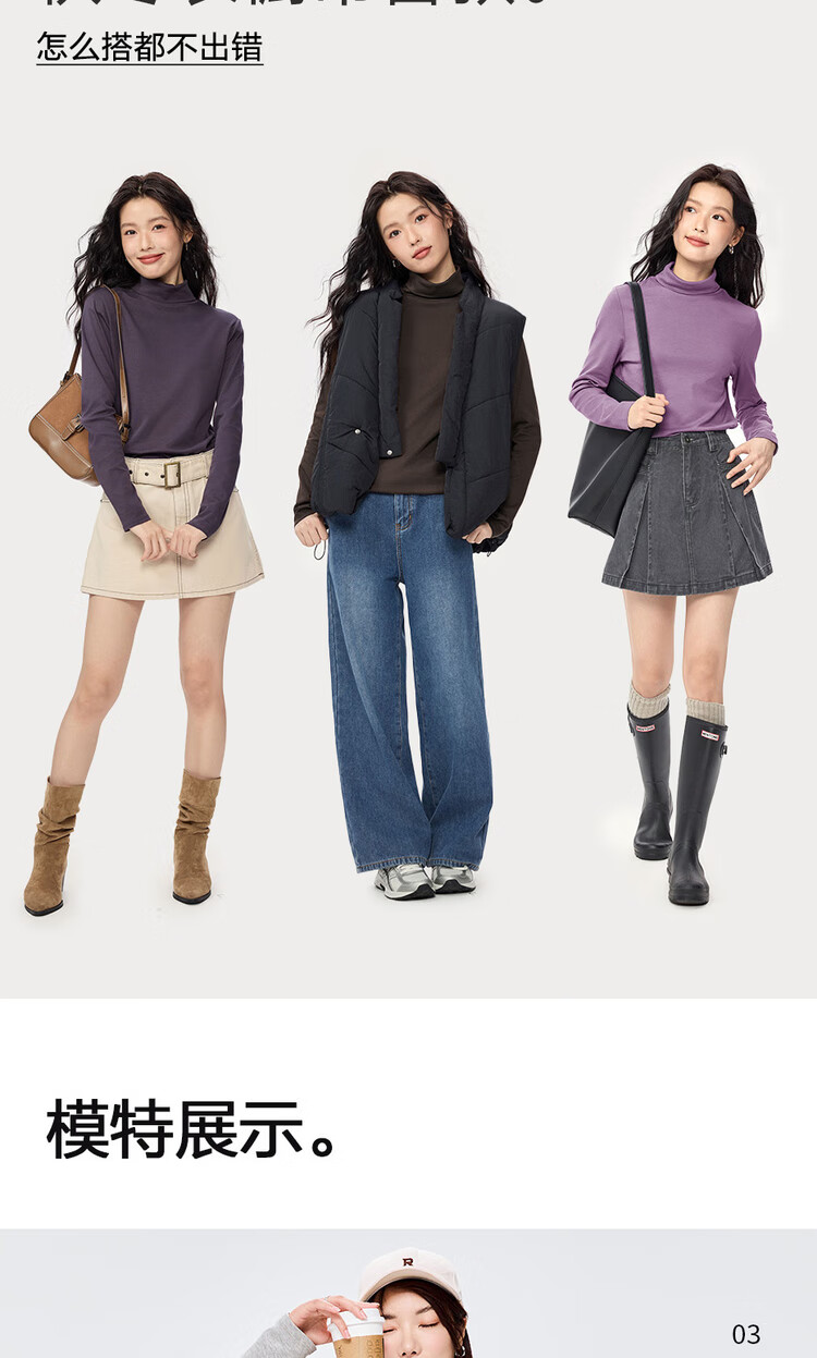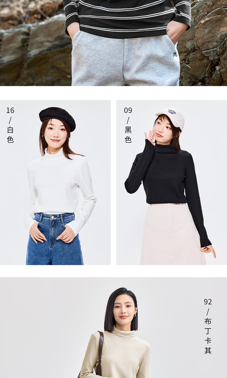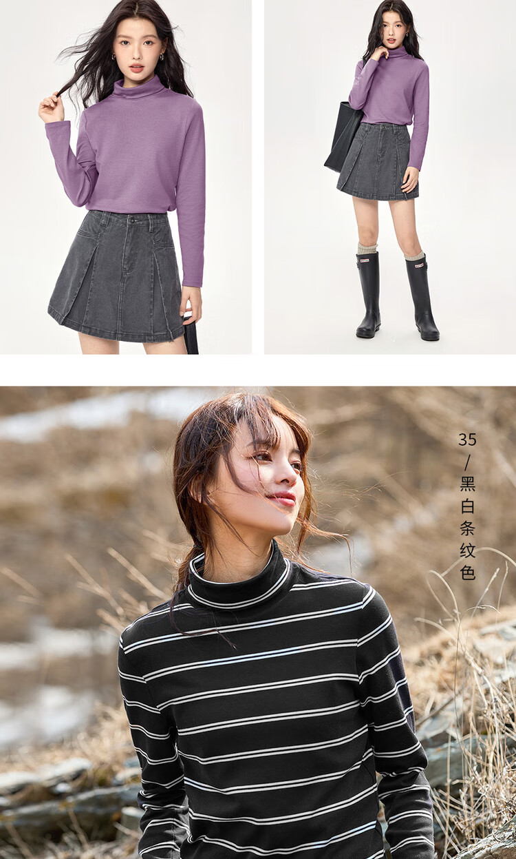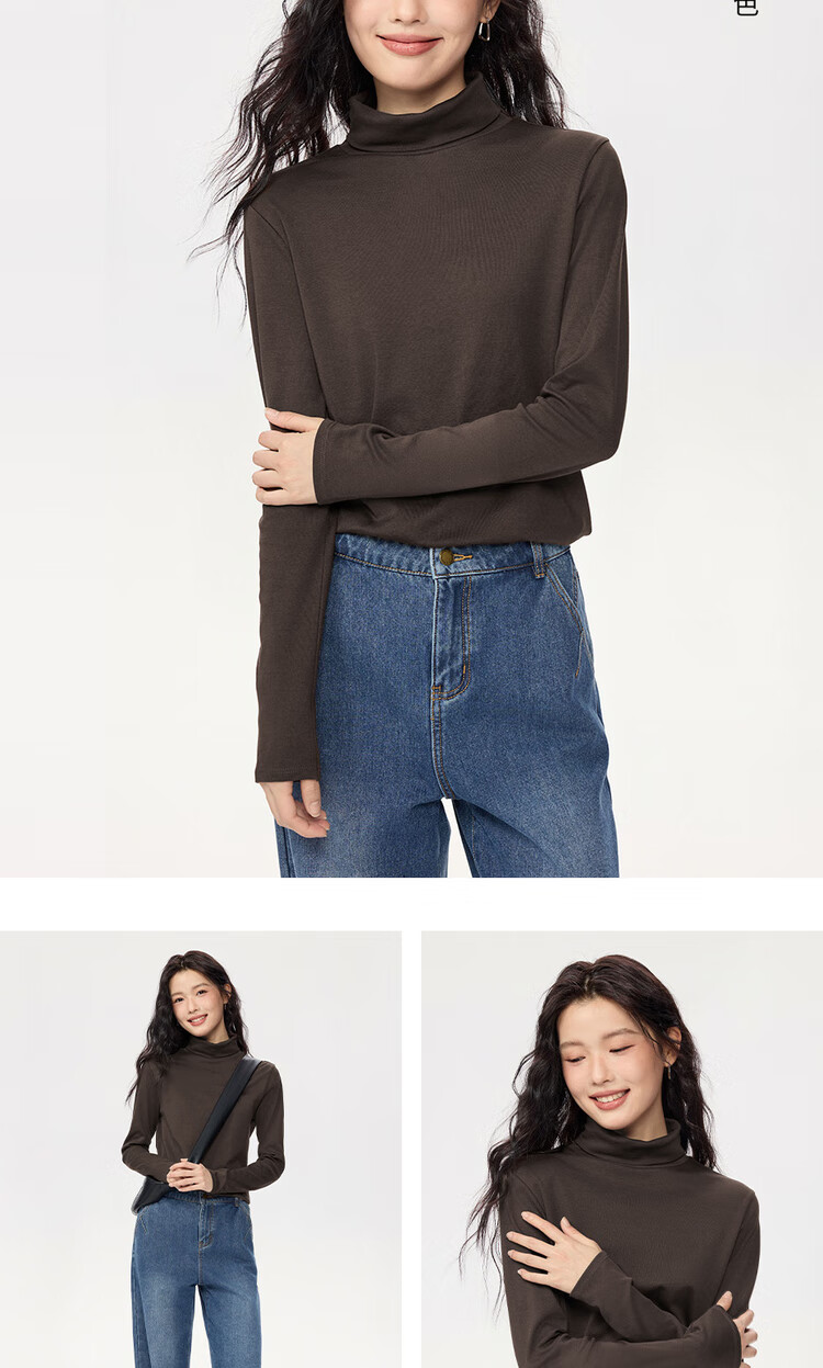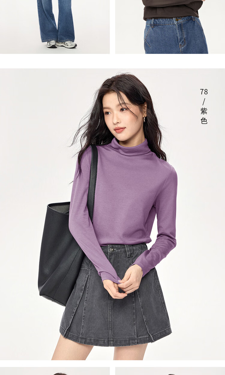 Giordano (Giordano) T-shirt women's basic bottoming shirt pure cotton top luxury smooth touch high collar long-sleeved T-shirt women 05322804