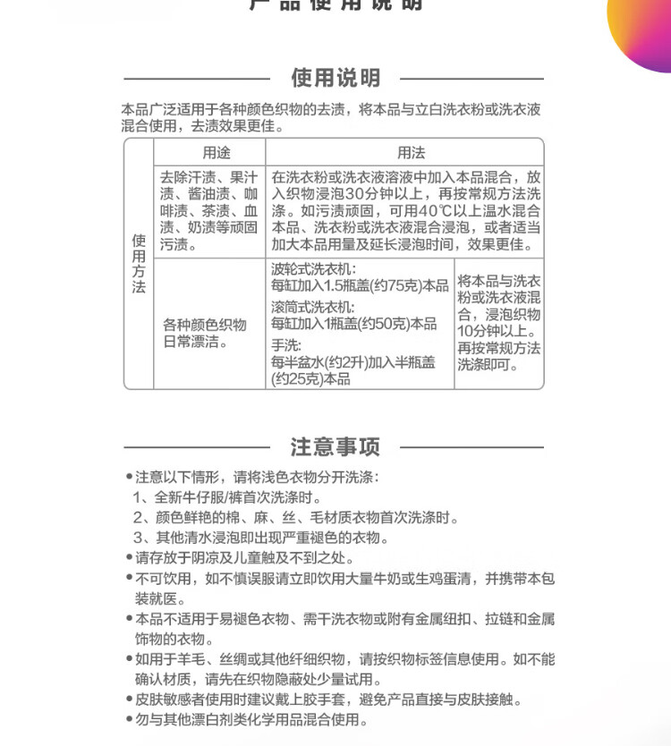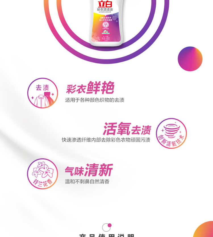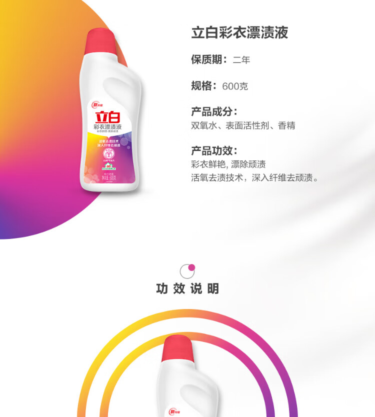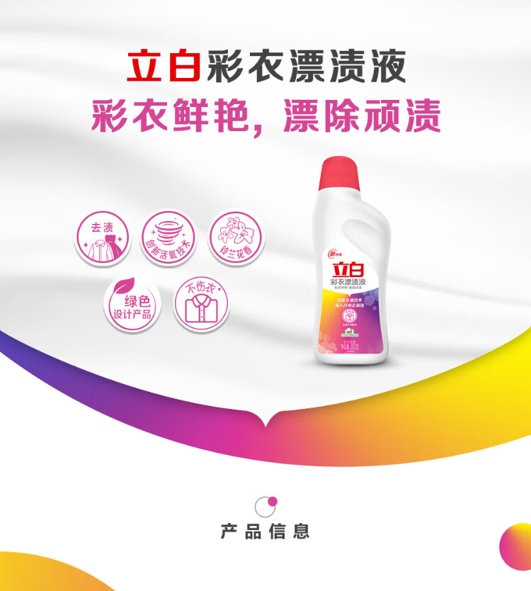 Liby Activated Oxygen Color Clothing and Stain Bleaching Liquid 600g, cleans stains on colored clothing, fresh and non-irritating, rinses stubborn stains