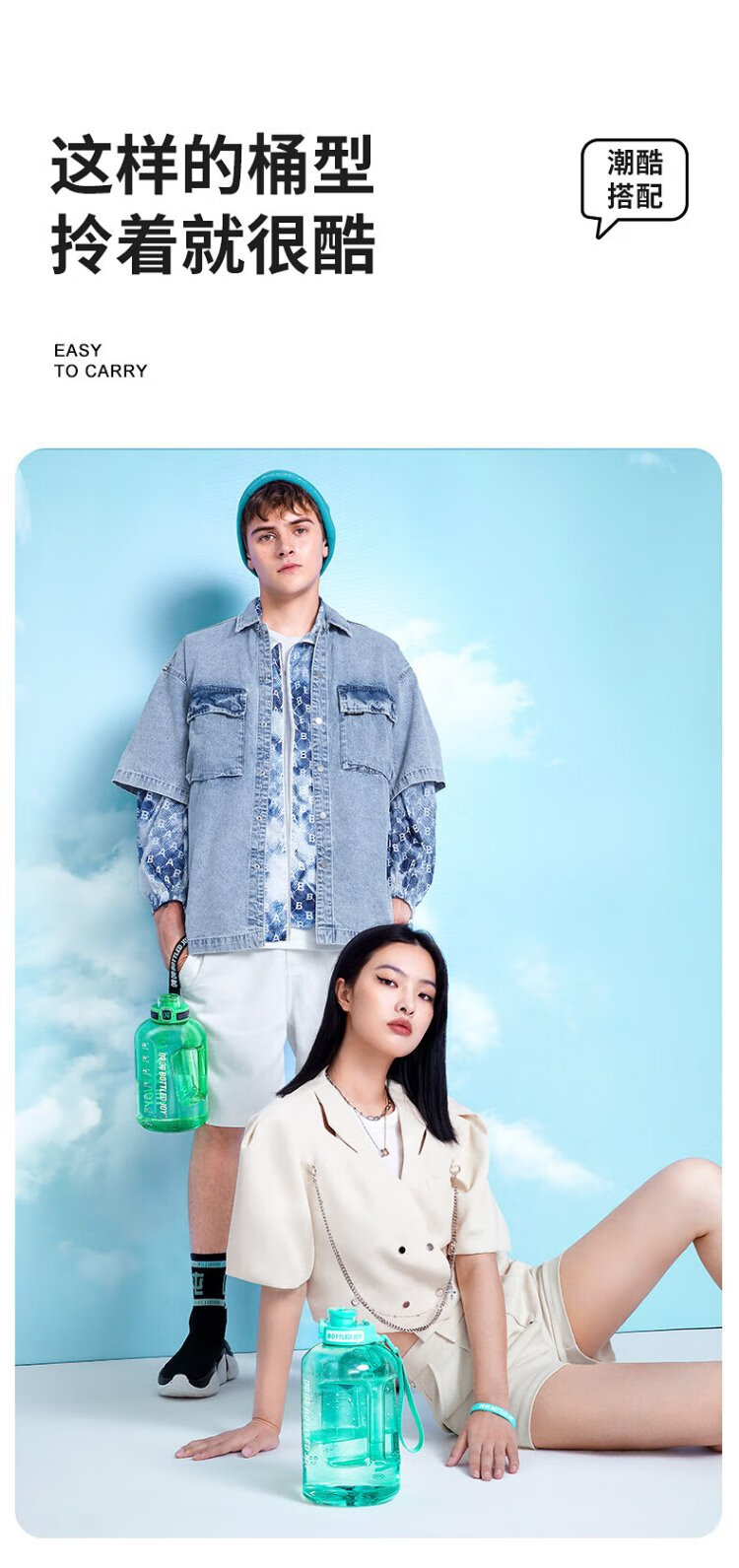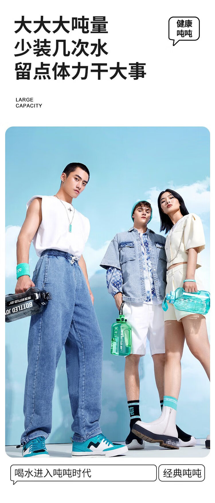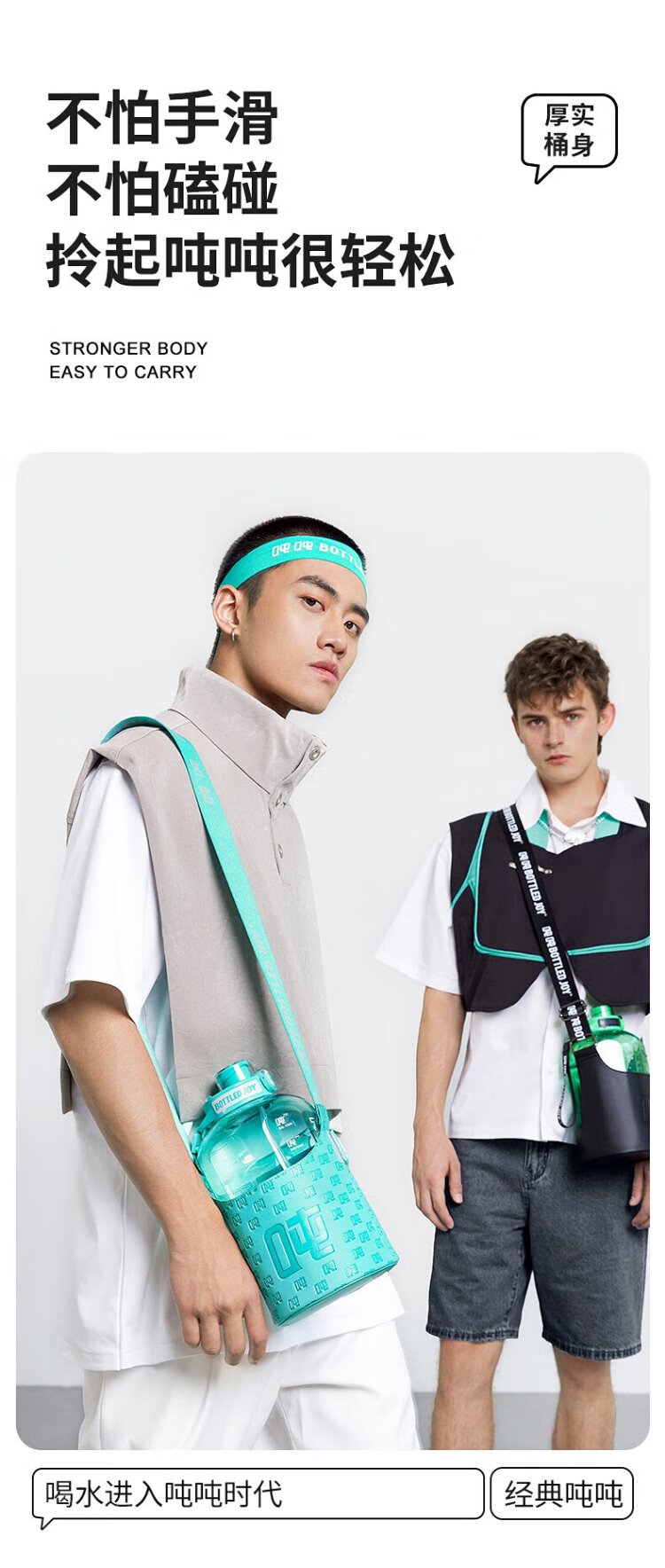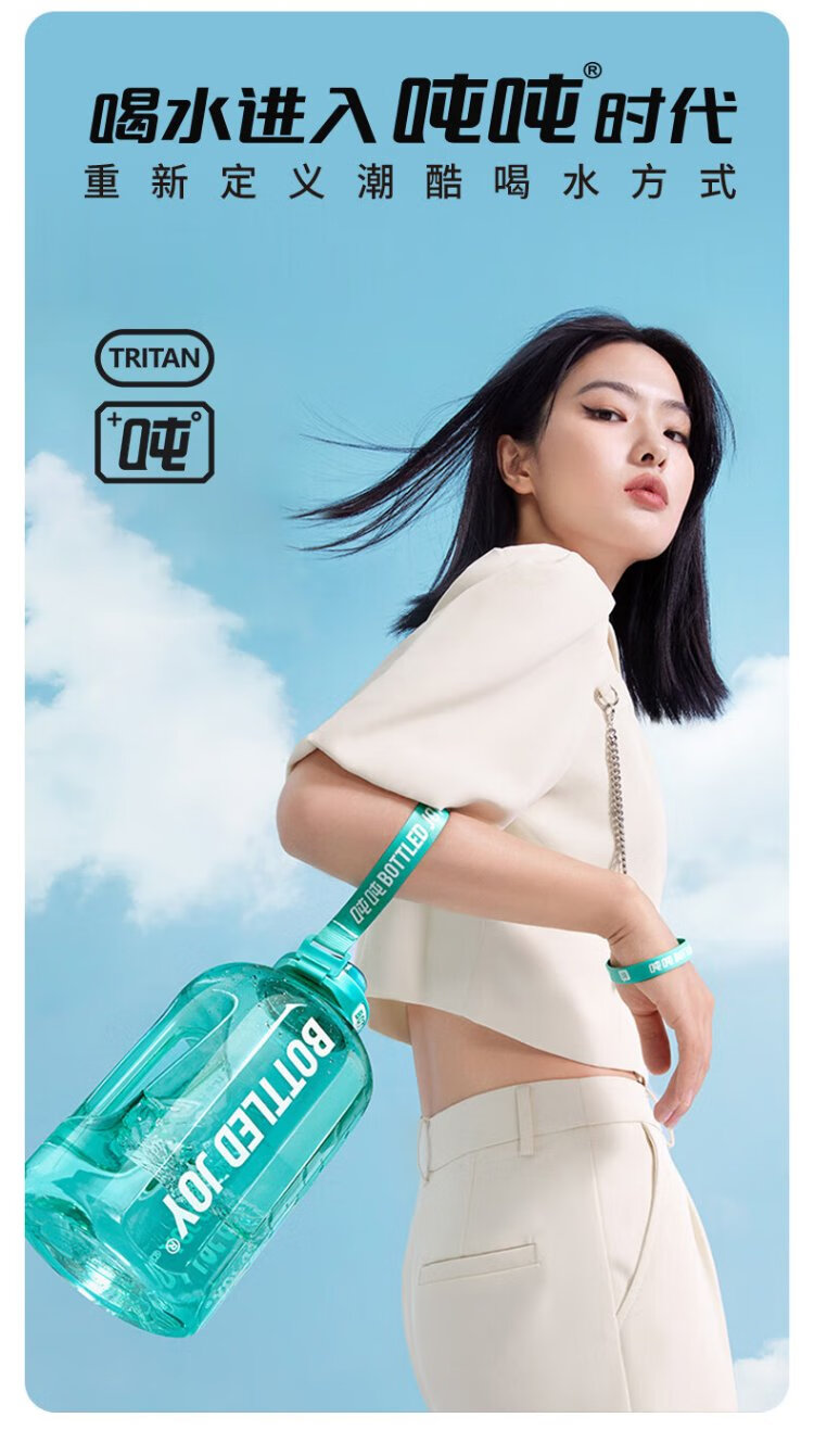 BOTTLED JOY ton ton bucket sports cup large capacity plastic cup direct drinking ton ton cup drinking cup outdoor riding kettle black