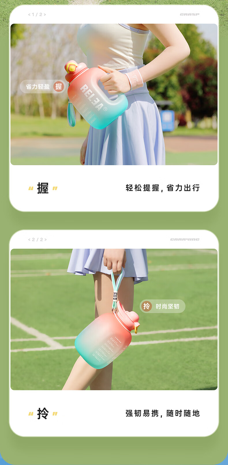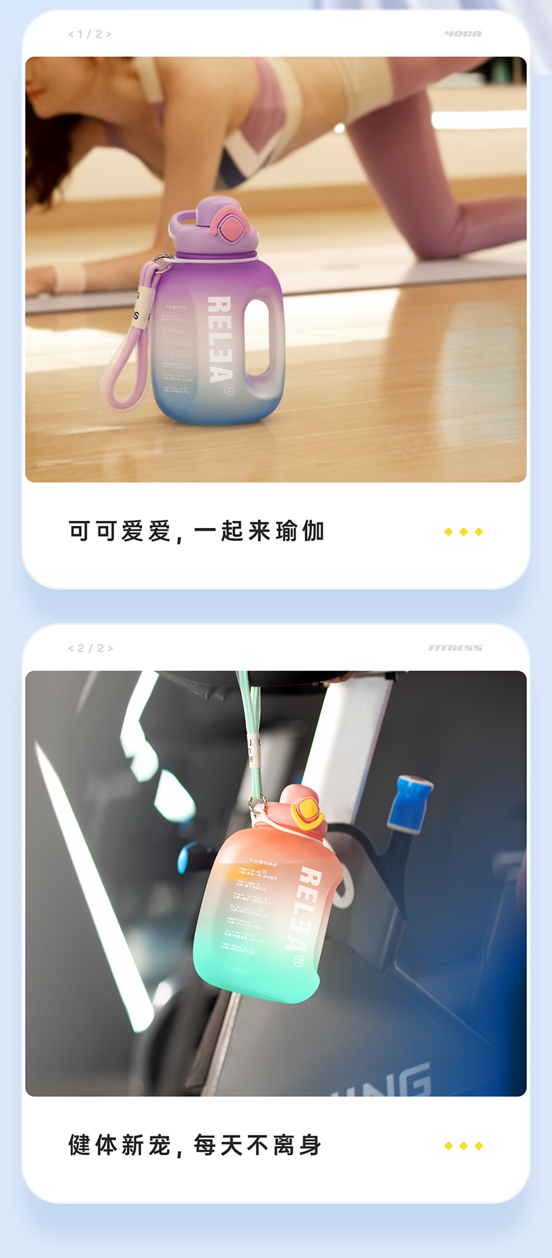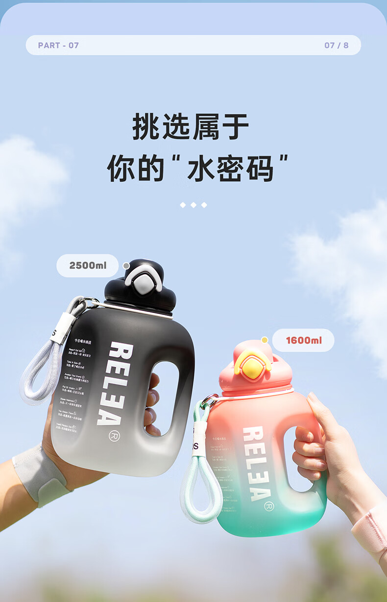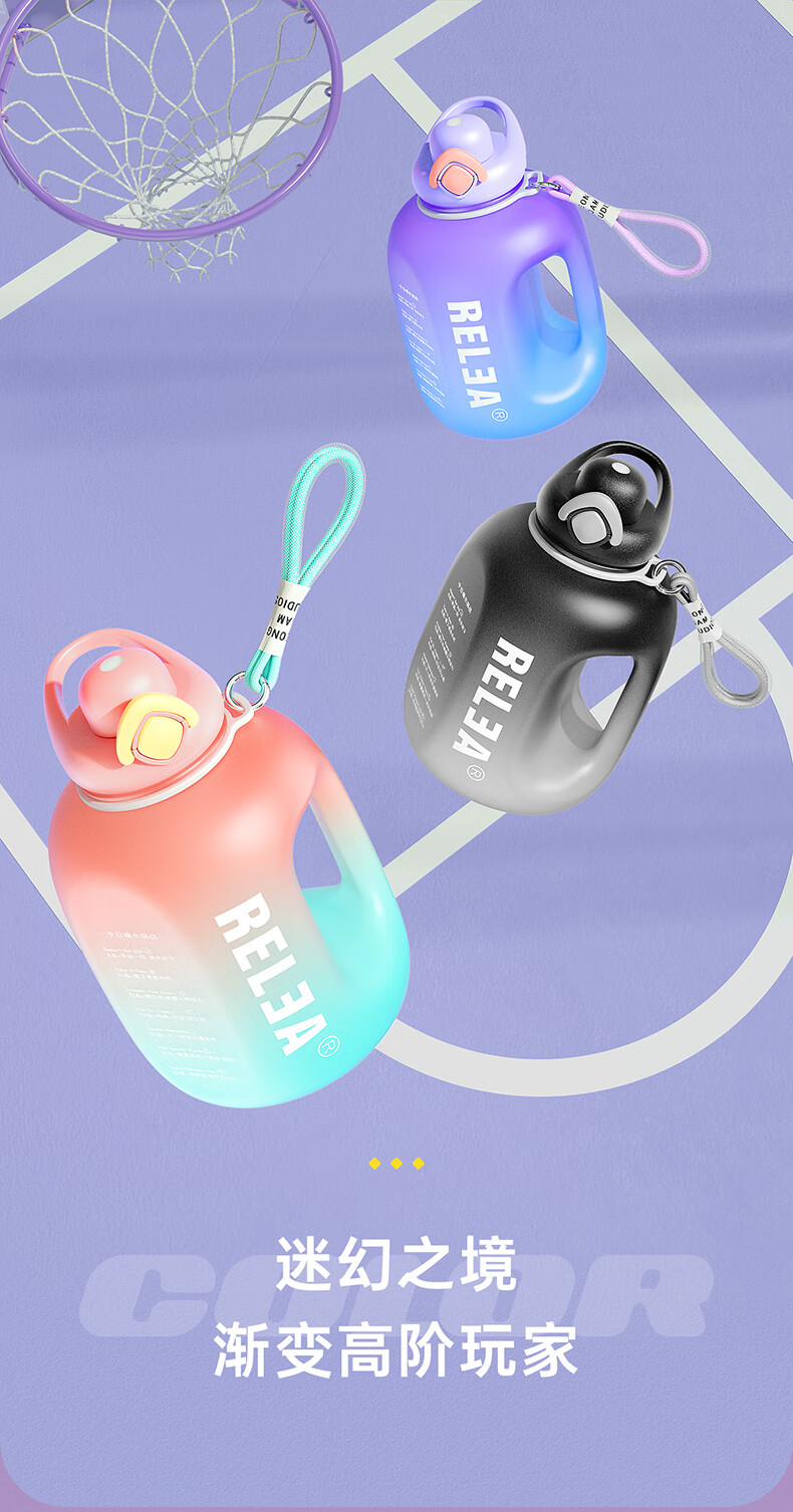 RELEA Sports Water Cup Ton Cup Ton Bucket Large Capacity Tritan Plastic Fitness Water Bottle Male and Female Student Straw Cup Gift