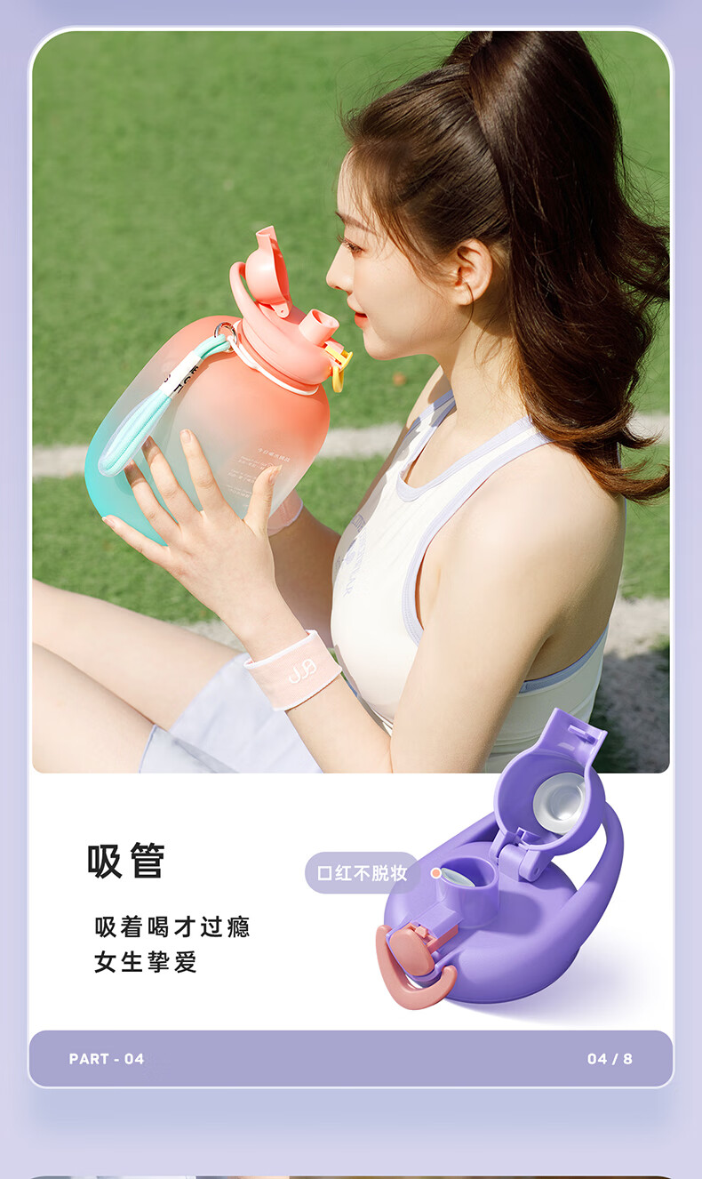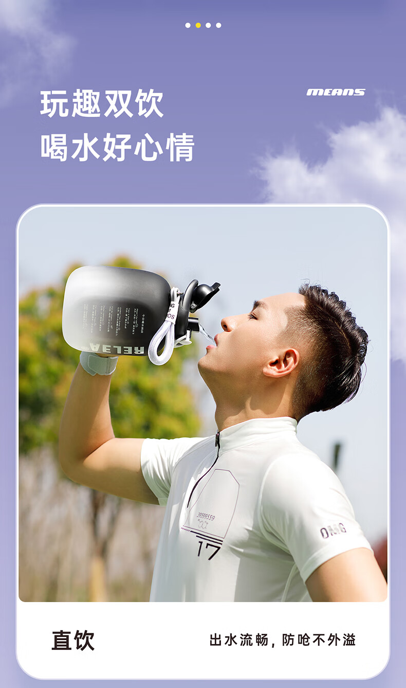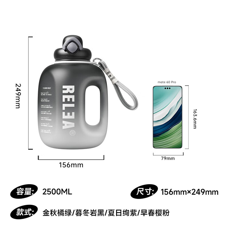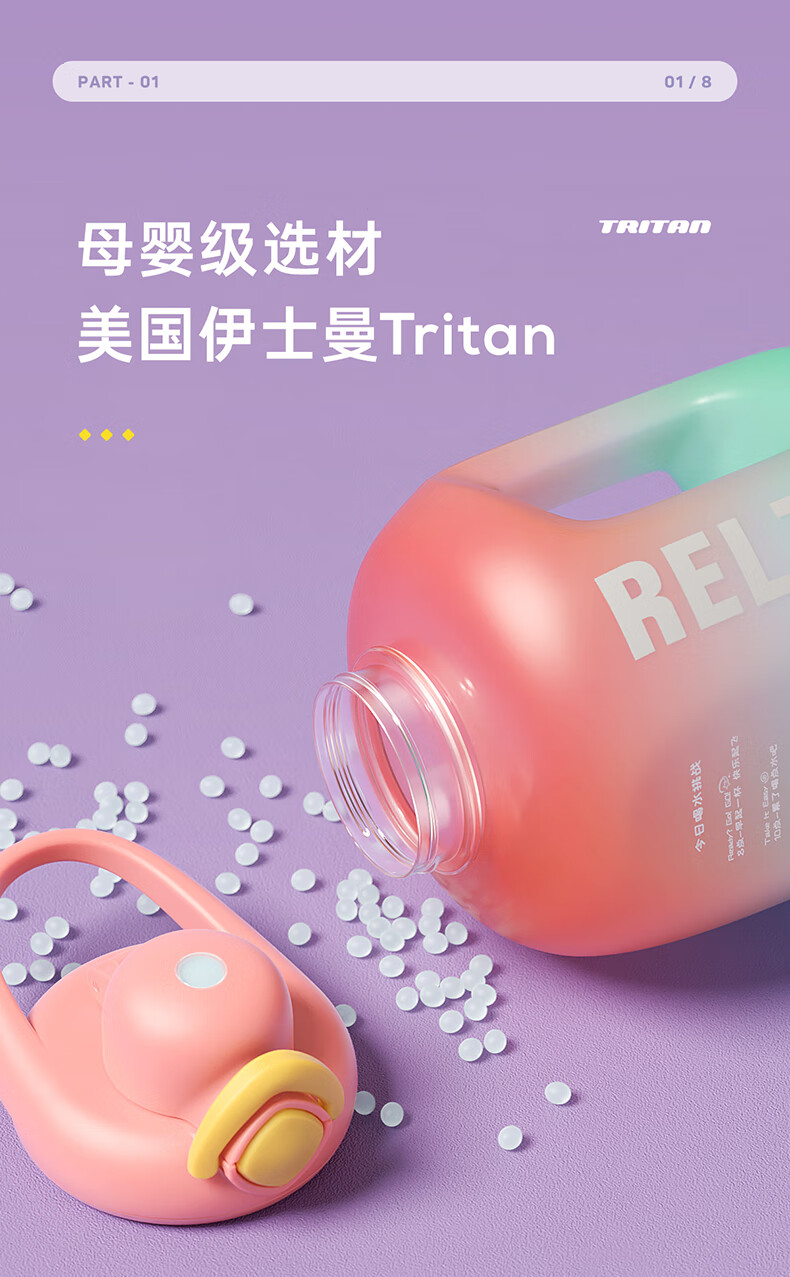 RELEA Sports Water Cup Ton Cup Ton Bucket Large Capacity Tritan Plastic Fitness Water Bottle Male and Female Student Straw Cup Gift