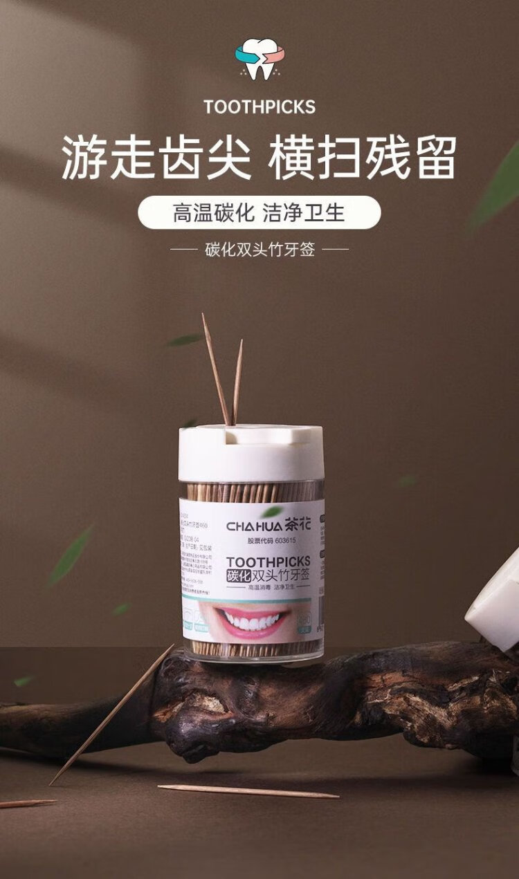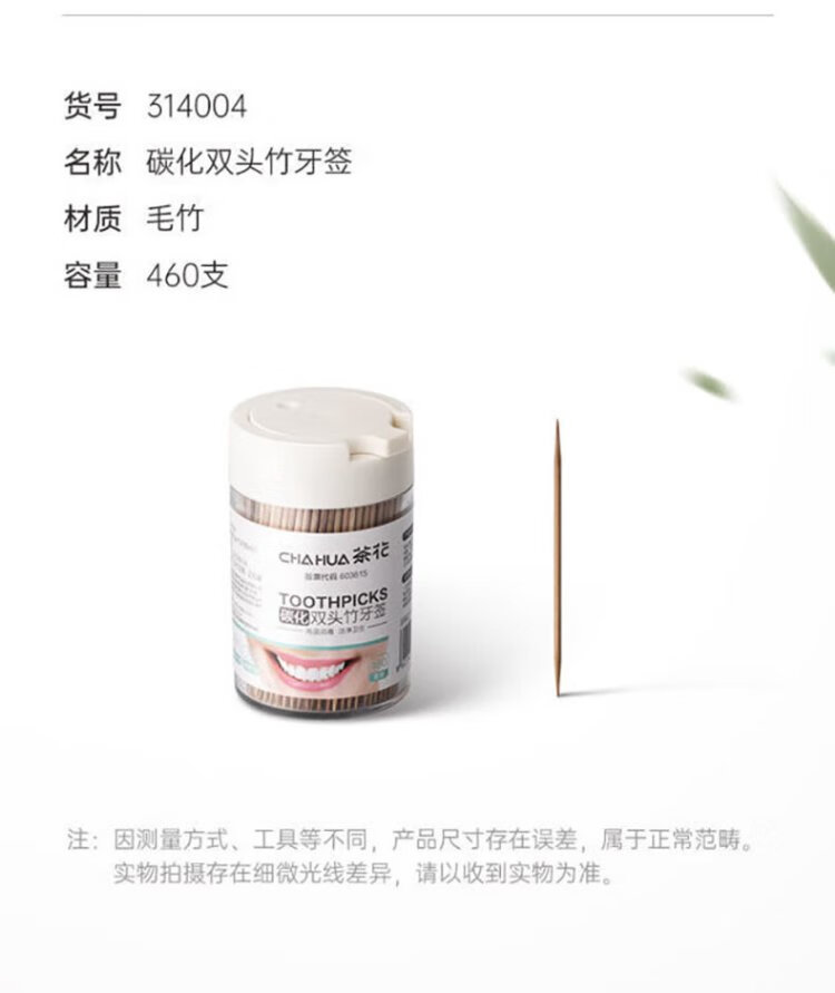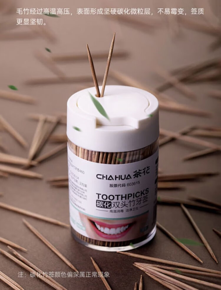 Camellia disposable carbonized double-ended bamboo toothpicks, 1 can, 460 pieces for household use