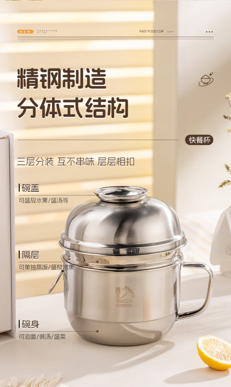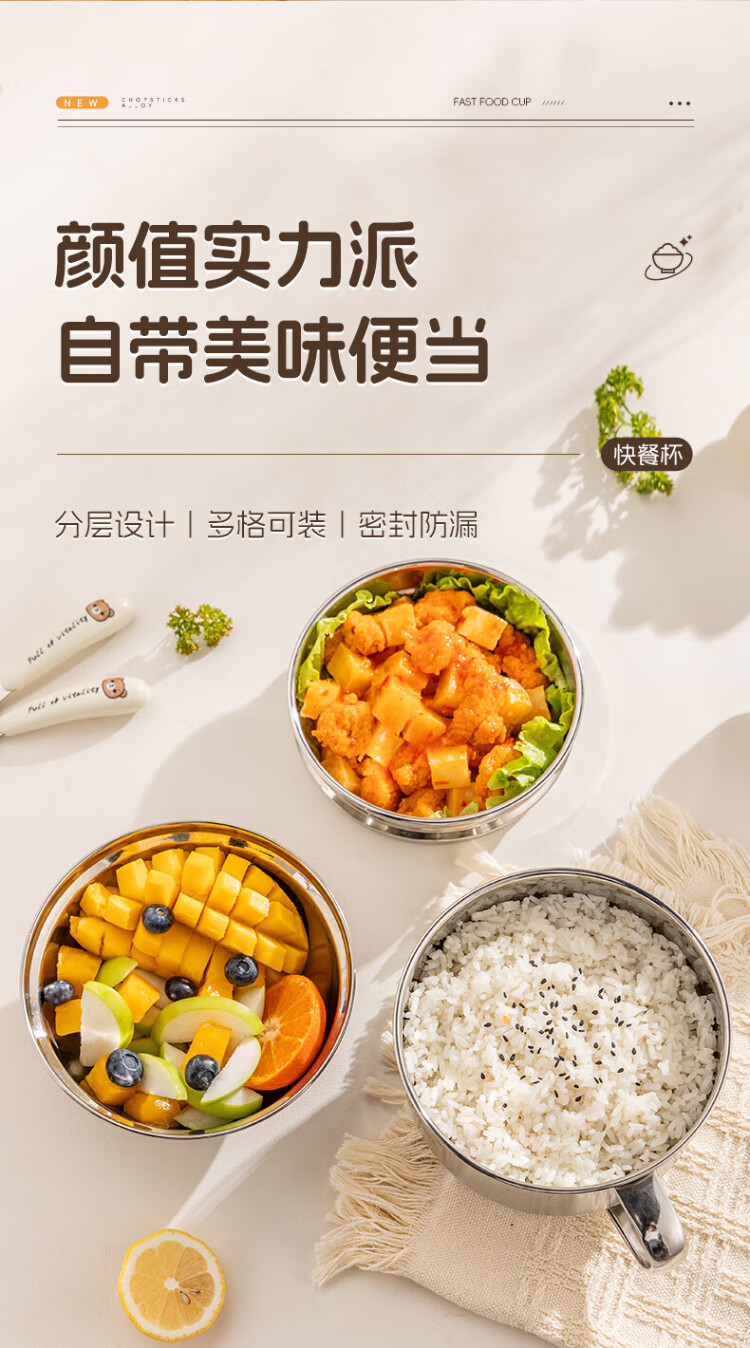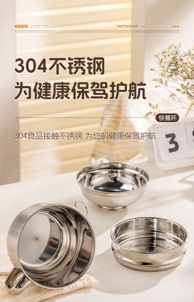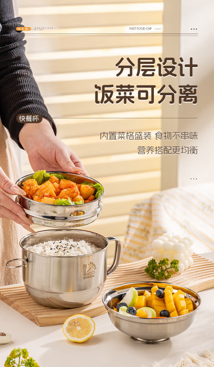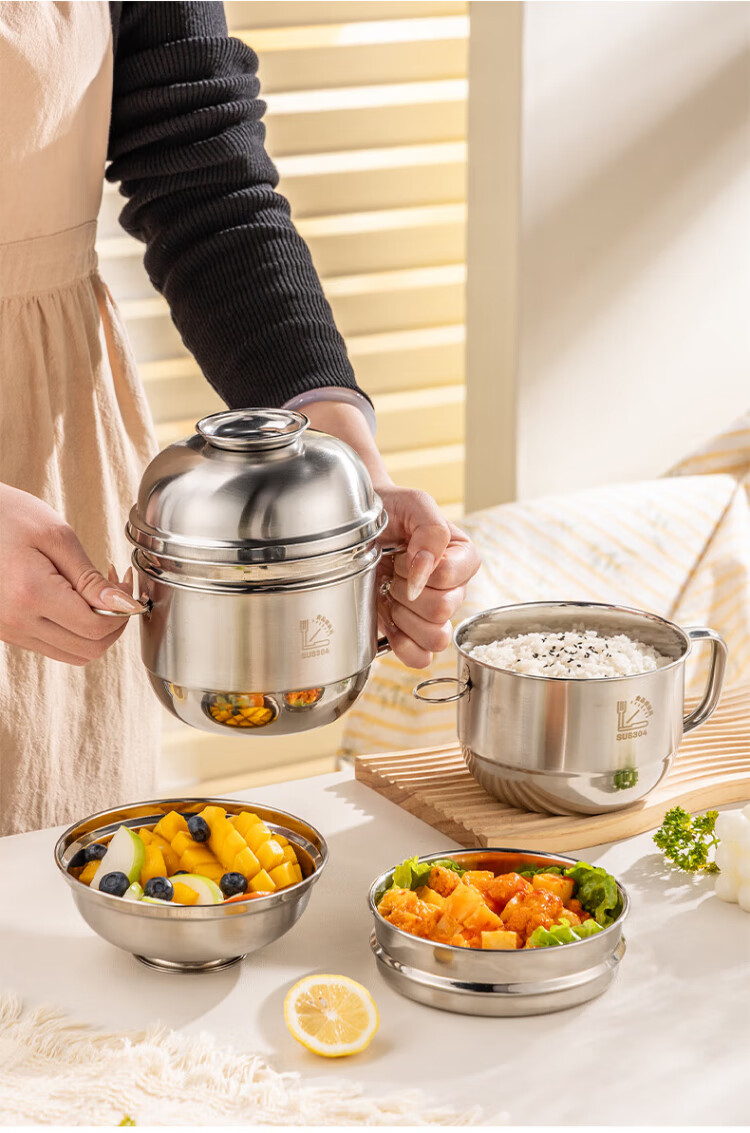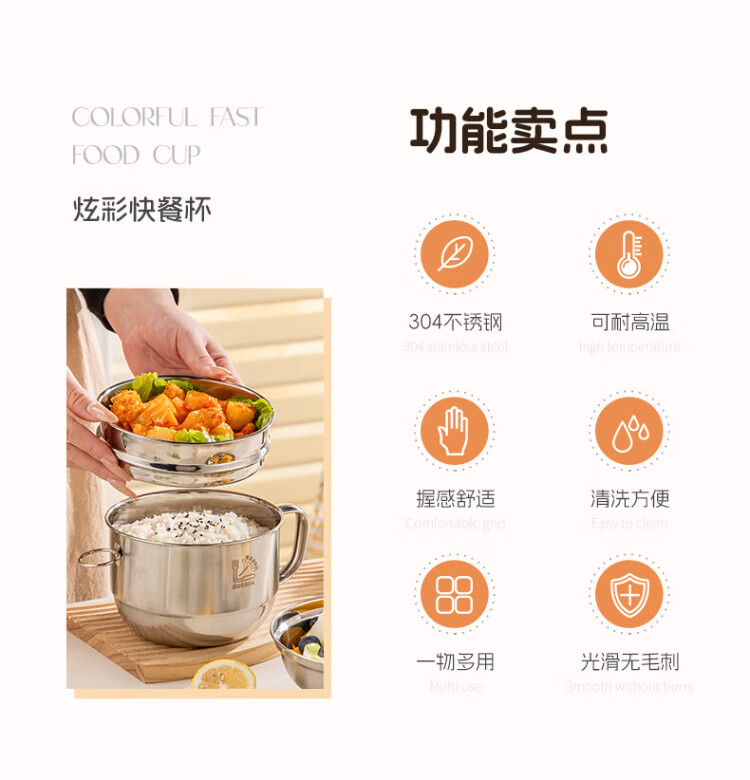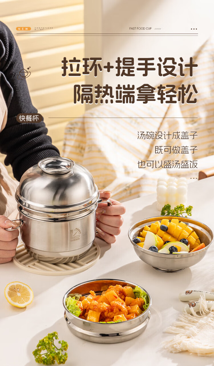 Guangyi 304 stainless steel lunch box fast food cup bowl student lunch box instant noodle bowl instant noodle cup two-layer lunch box GY8560
