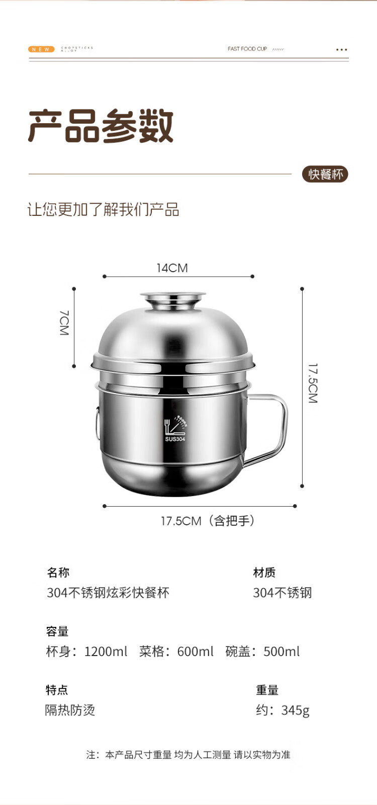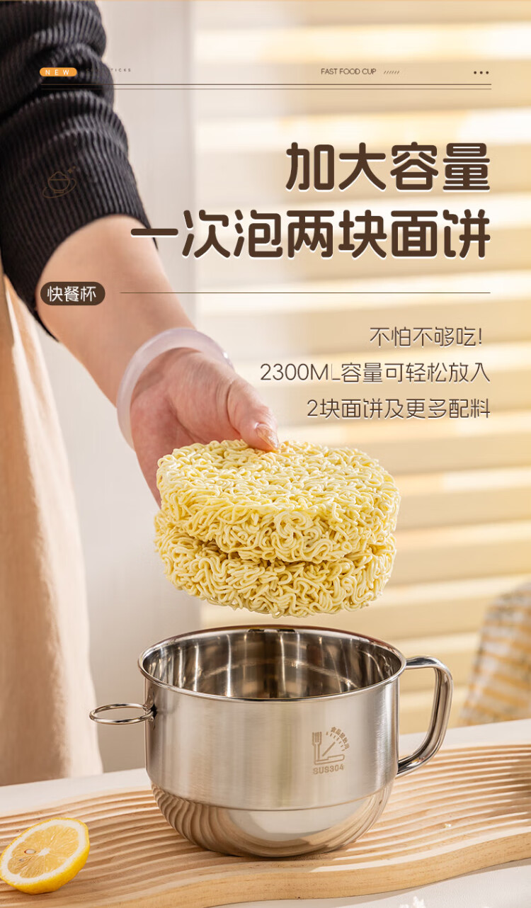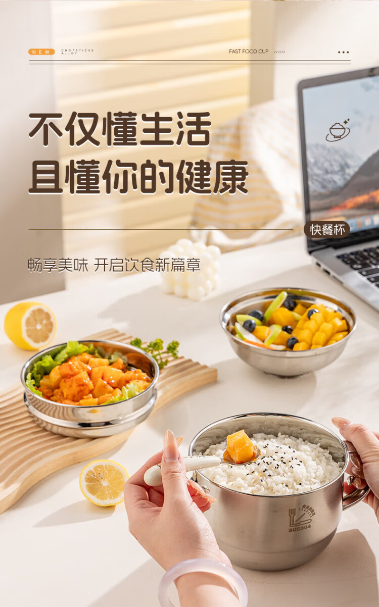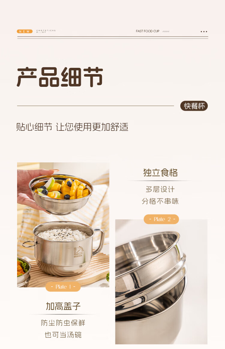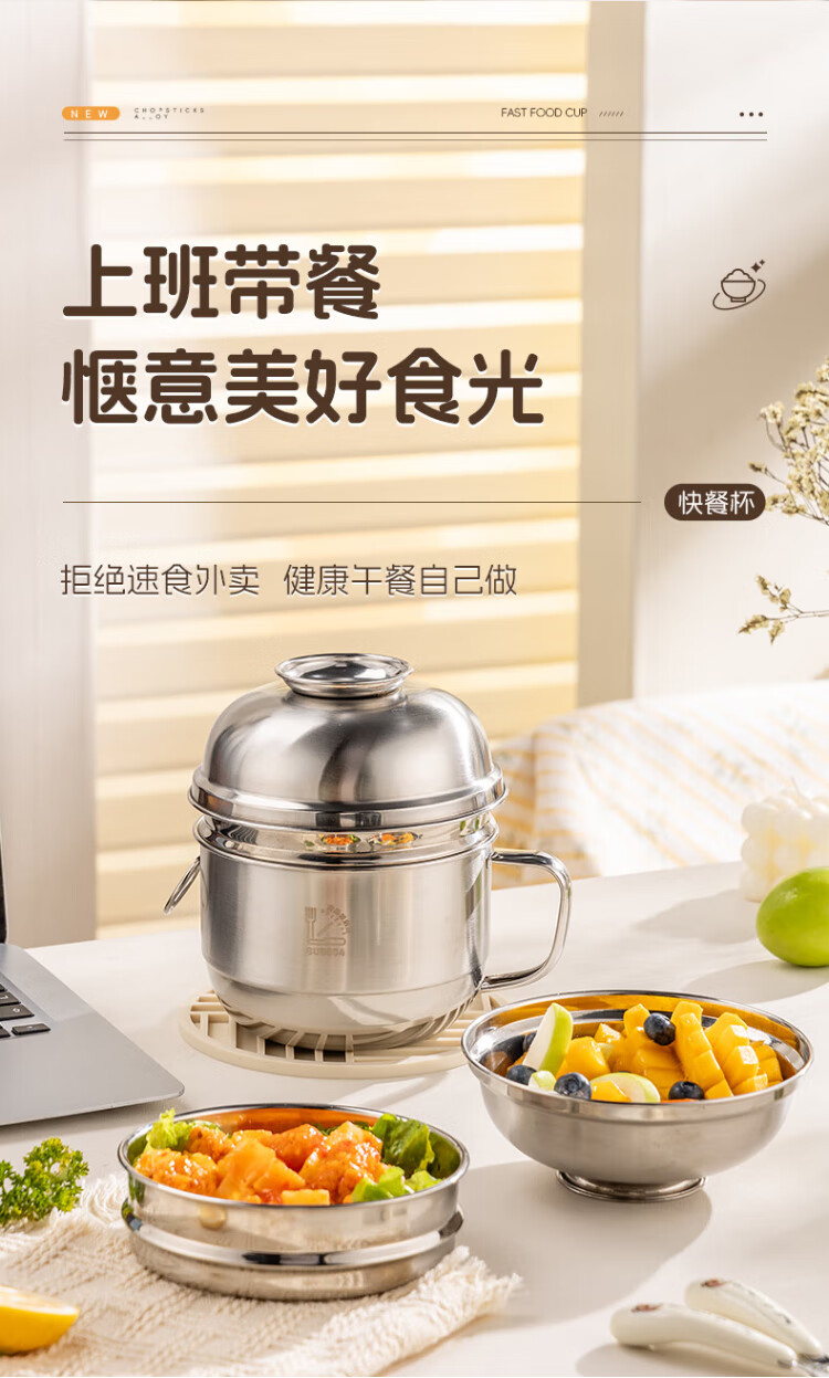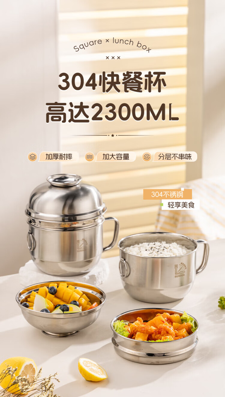 Guangyi 304 stainless steel lunch box fast food cup bowl student lunch box instant noodle bowl instant noodle cup two-layer lunch box GY8560