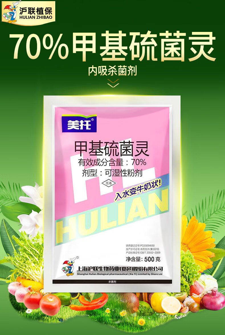 Hulian Crop Protection 70% thiophanate methyl, methyl thiophanate, fruit tree, vegetable field, flower, gibberellus, anthracnose ring spot, pesticide and fungicide