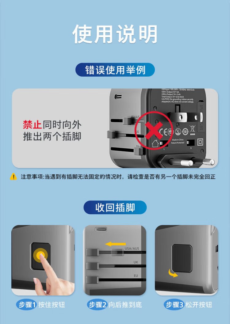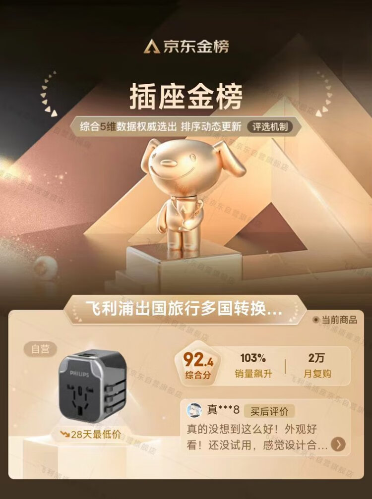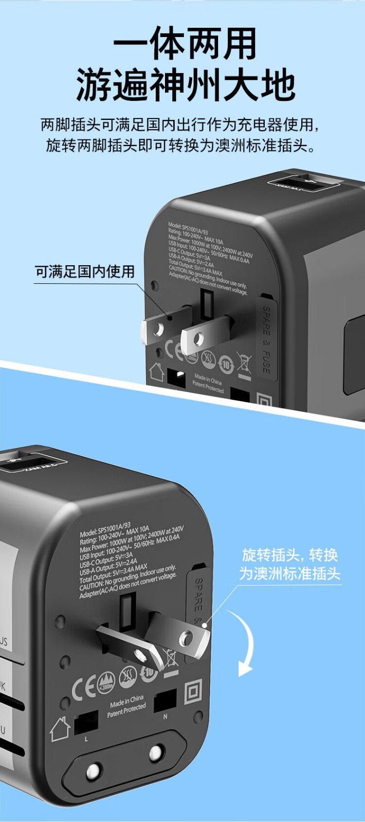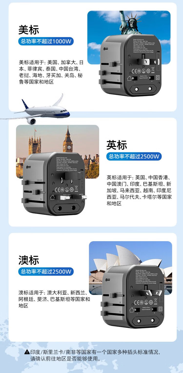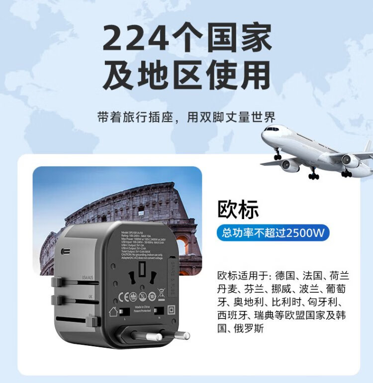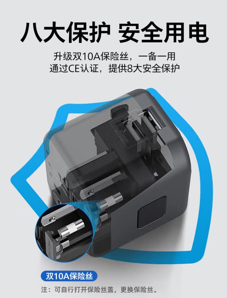 Philips (PHILIPS) Overseas Conversion Plug Adapter/International Travel Socket Adapter/UK, Europe, America, Australia Standard, Germany, Japan, Singapore and Hong Kong Applicable/2A1C Charging 17W Black