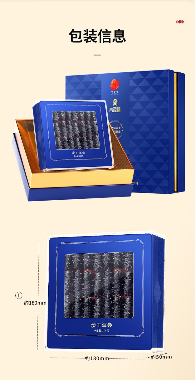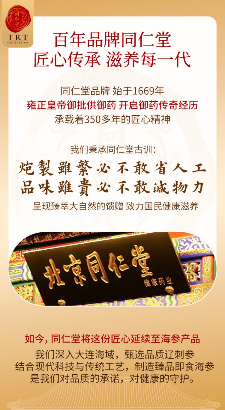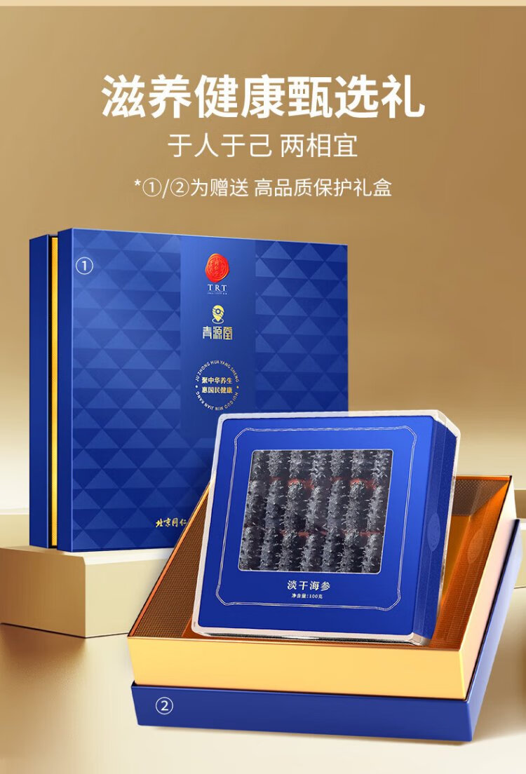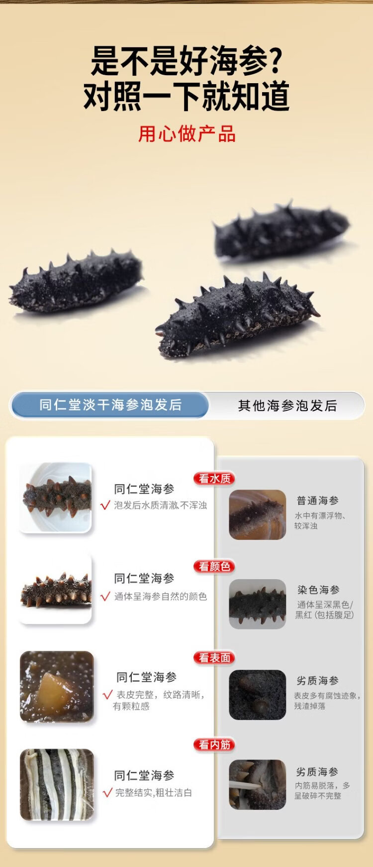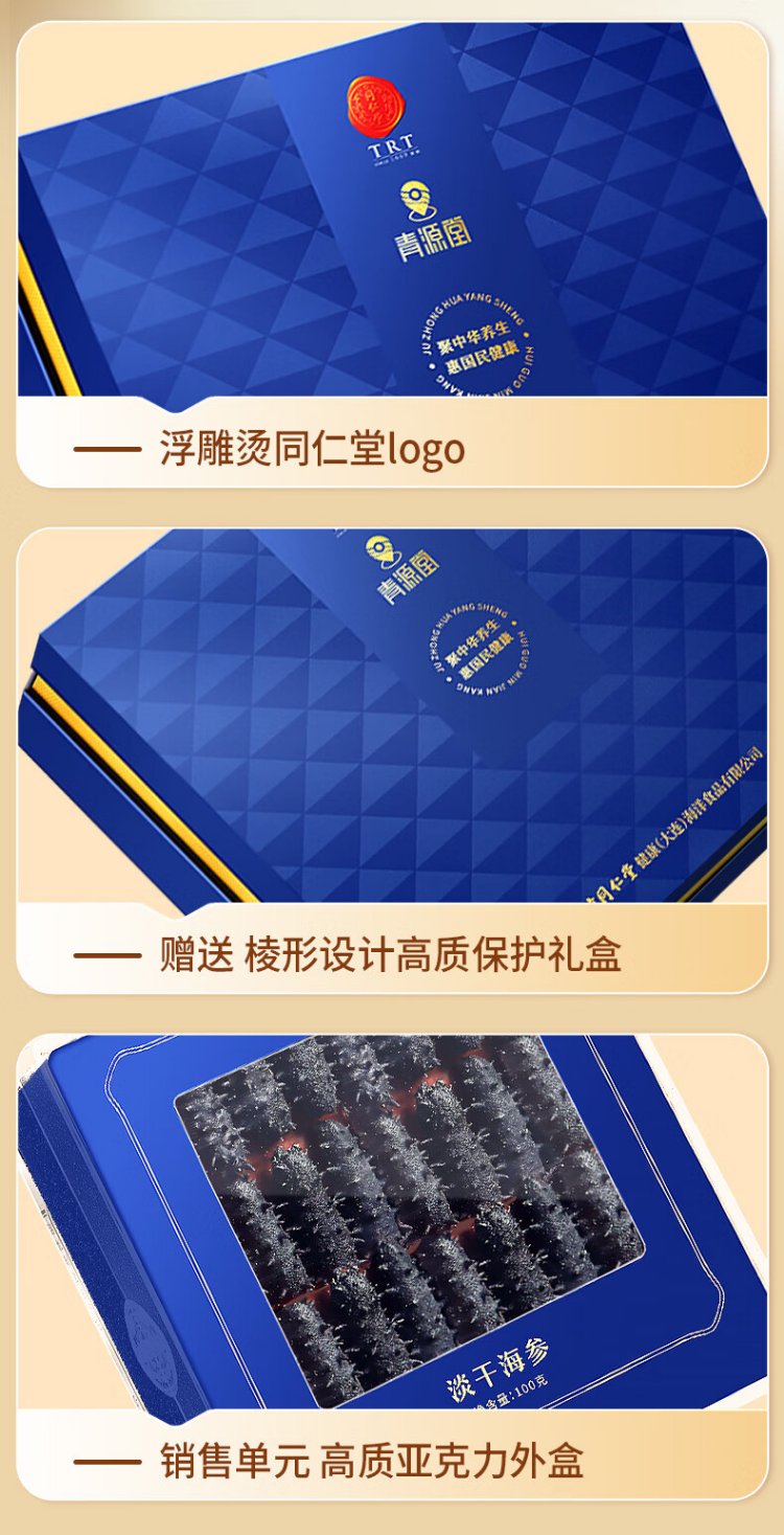 Tong Ren Tang brand Beijing Tong Ren Tang Dalian light dried sea cucumber and Liao cucumber 100g 20-30 pieces dried seafood supplement gift box