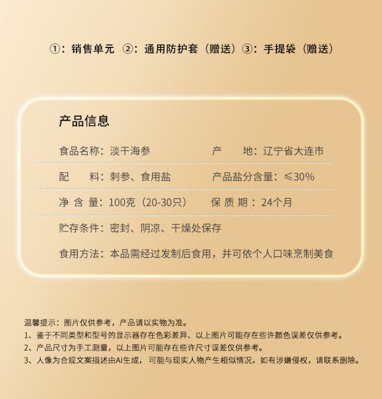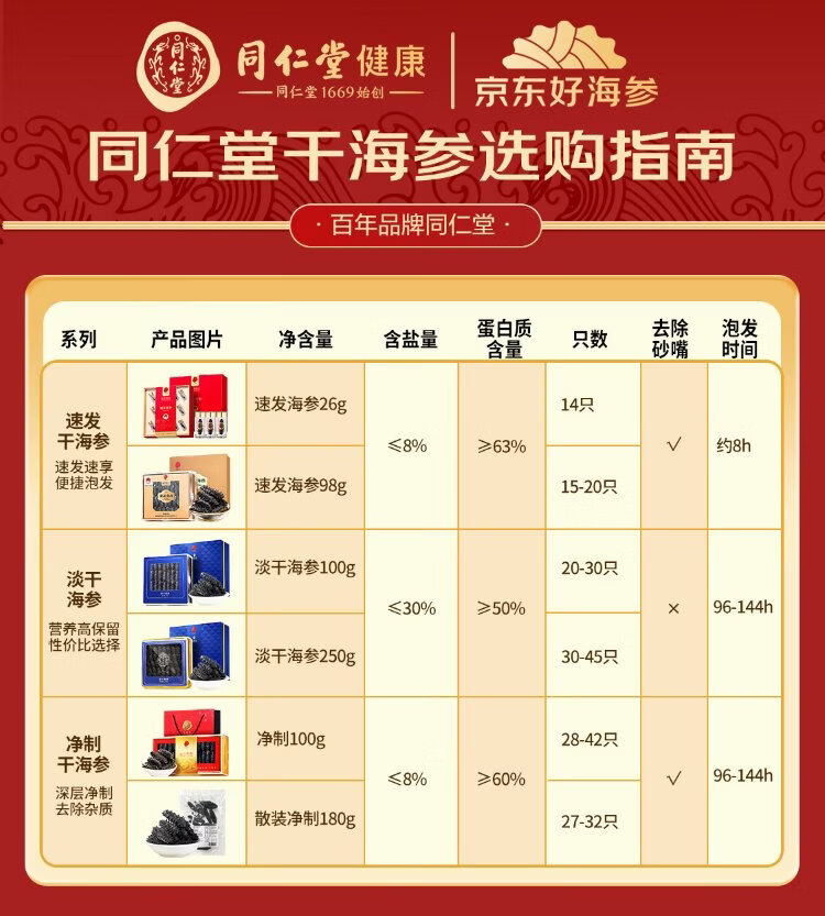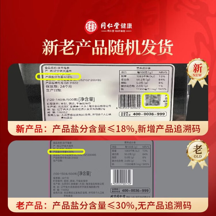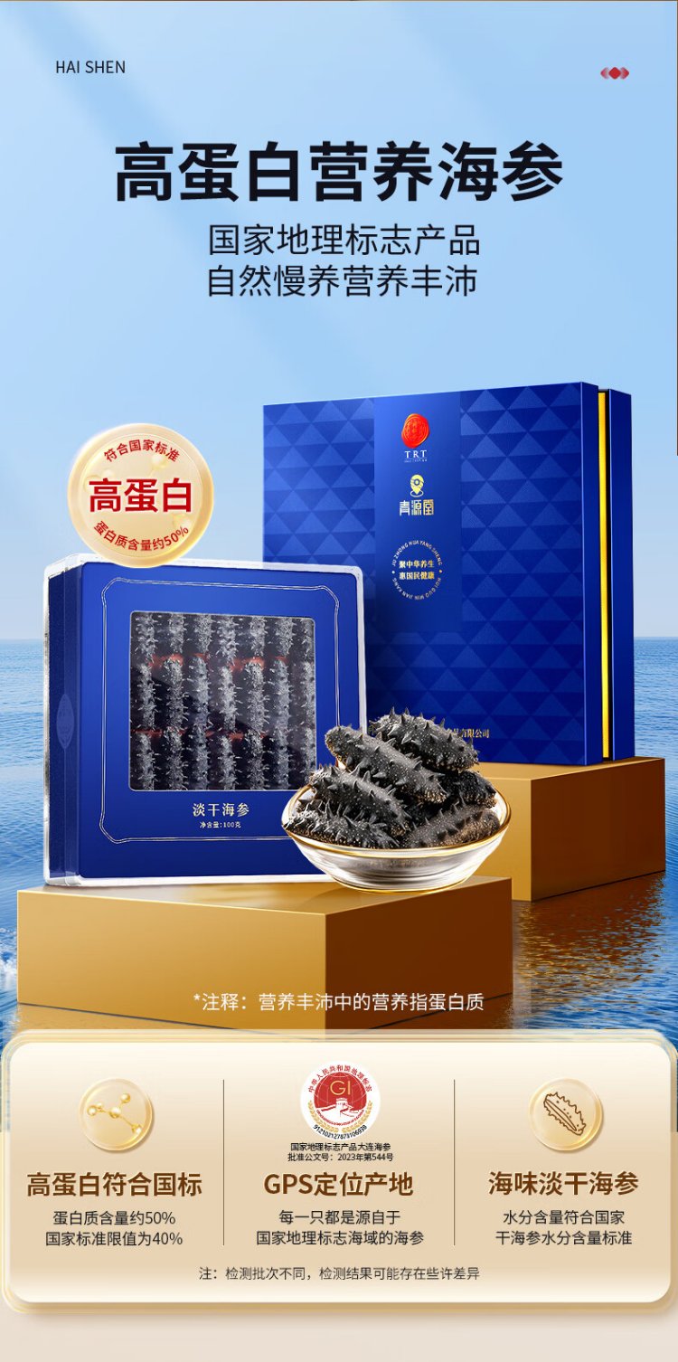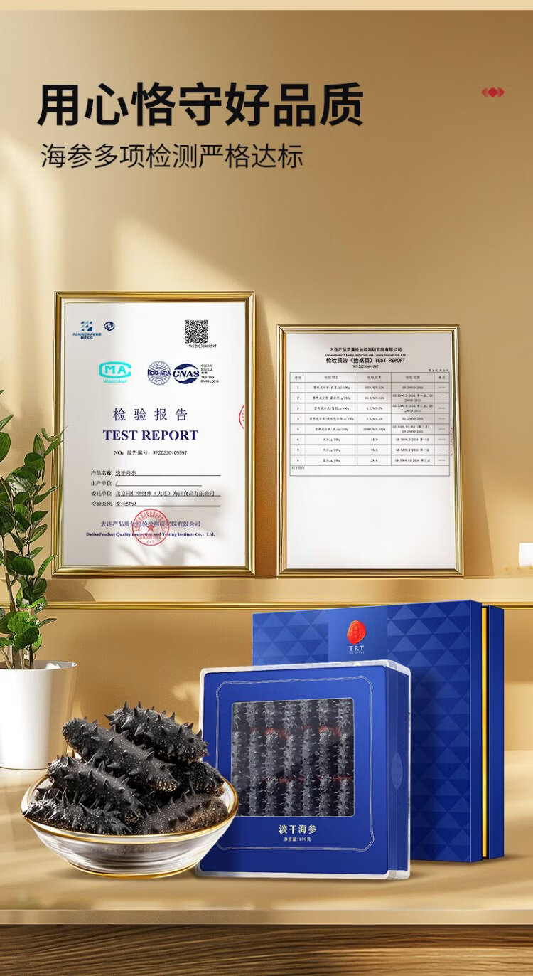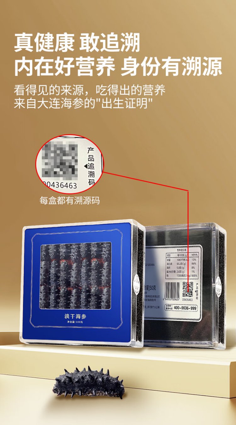 Tong Ren Tang brand Beijing Tong Ren Tang Dalian light dried sea cucumber and Liao cucumber 100g 20-30 pieces dried seafood supplement gift box