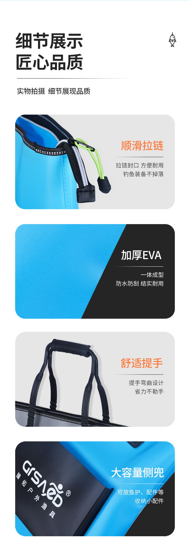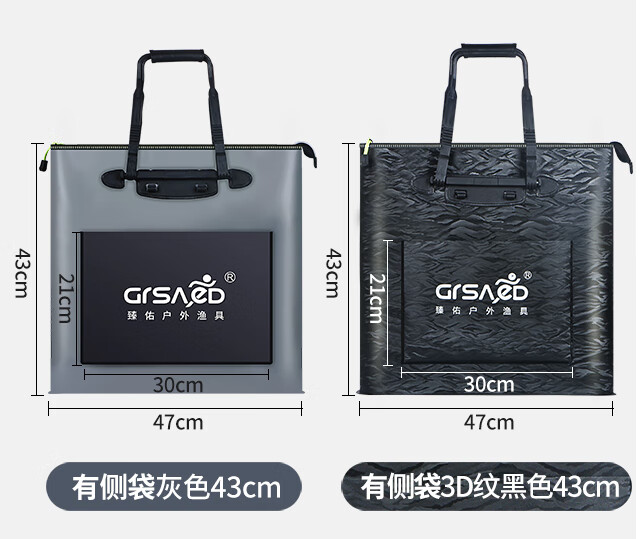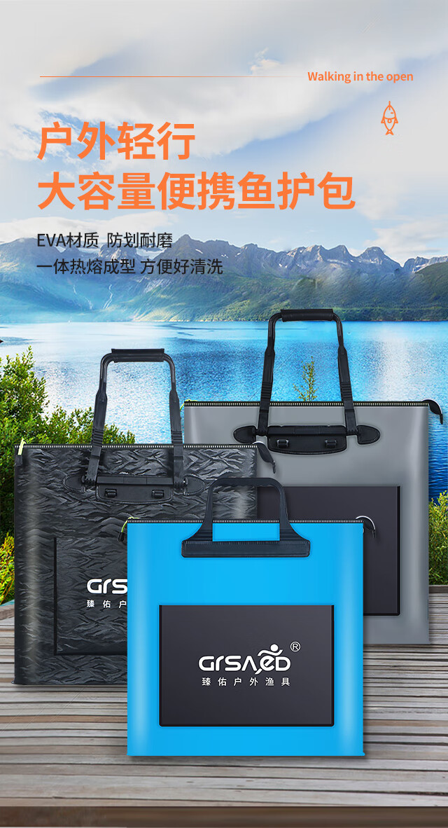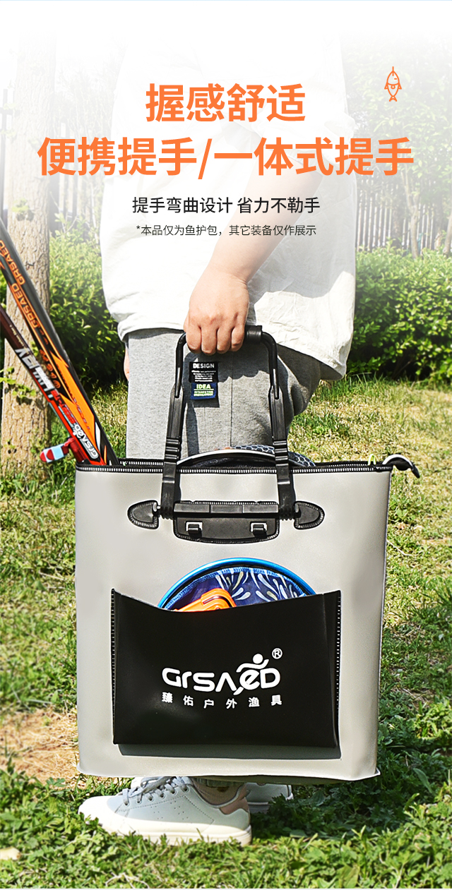 Zhenyou (Grsaed) fish protection bag handbag 48cm multi-functional waterproof lightweight fishing gear bag fish protection bag thickened wear-resistant storage live fish bucket fishing accessories short handle with side bag gray