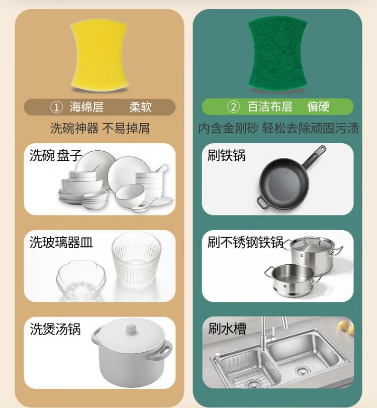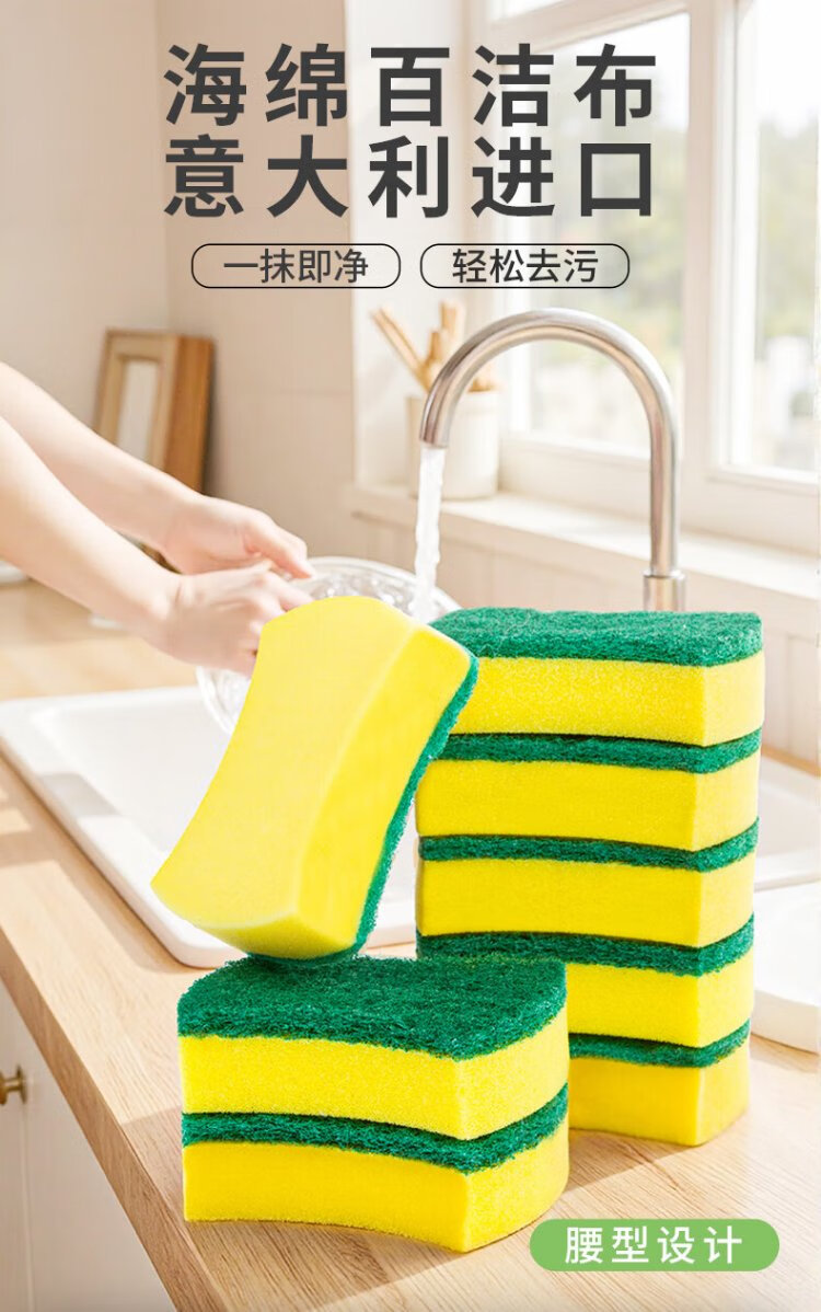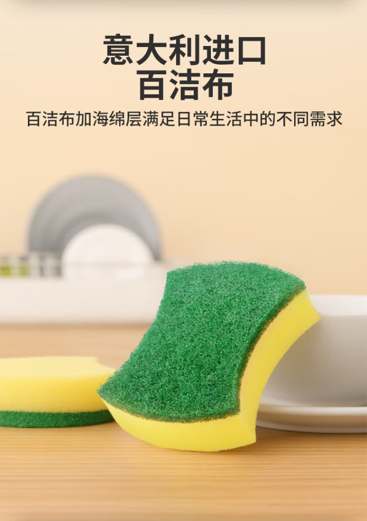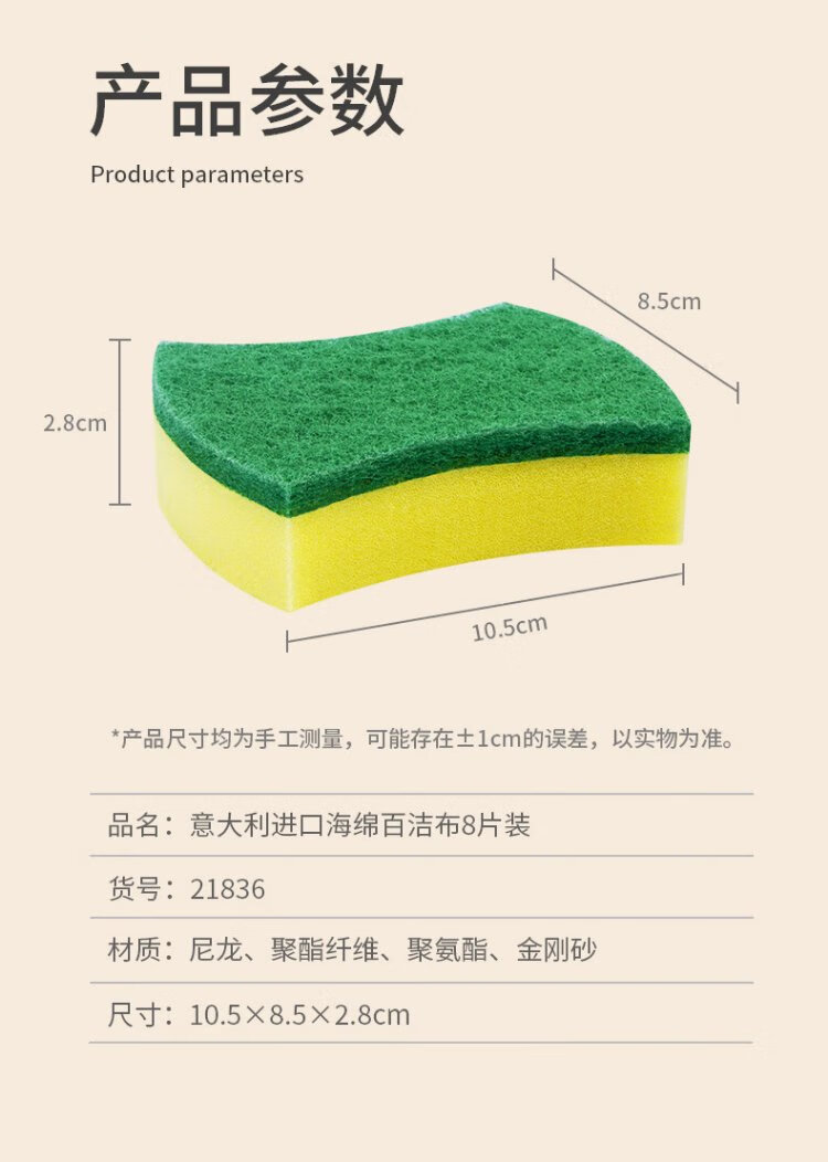 Saga scouring pad 10.5*8.5*2.5CM*8 pieces imported from Italy, kitchen degreaser, pot and dishwasher sponge