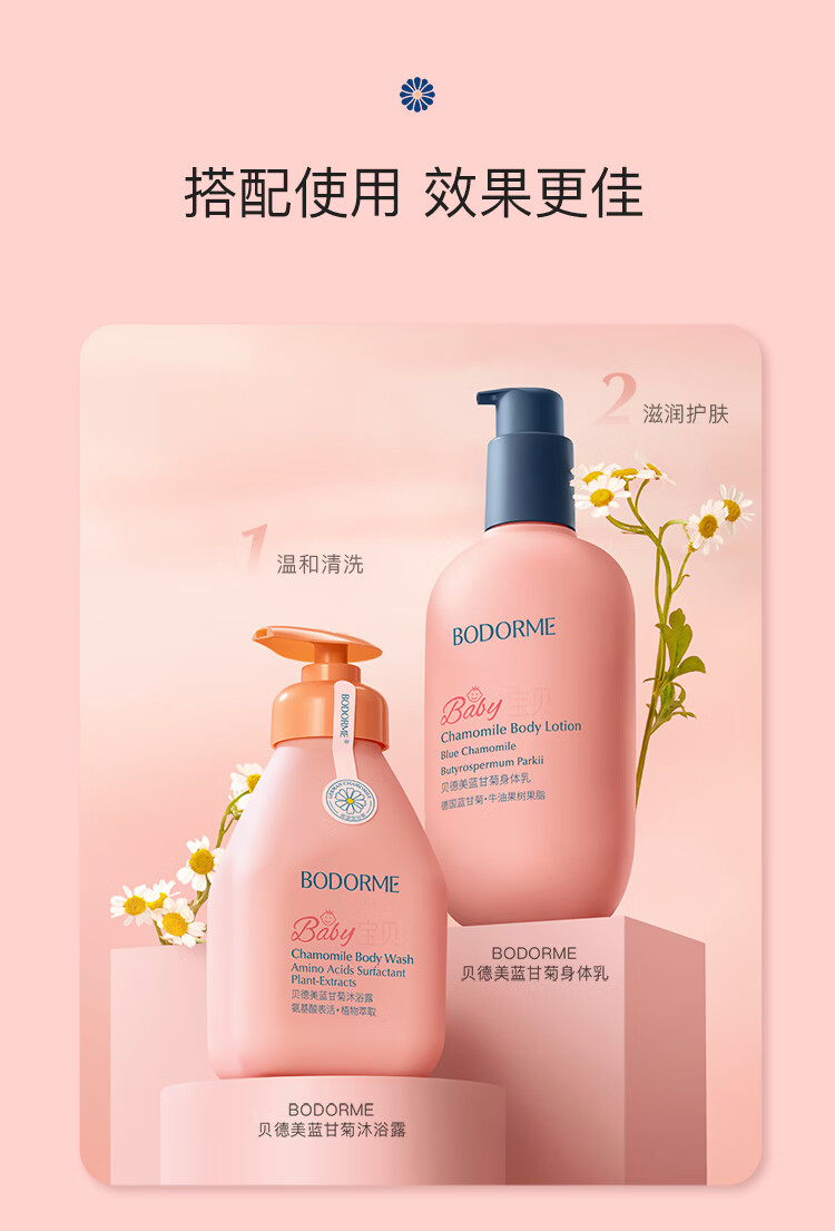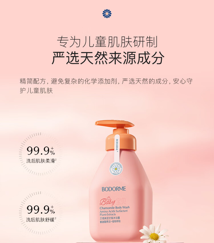 Bodcrme Blue Chamomile Children's Shower Gel 520ml, gentle and cleansing, moisturizing, suitable for weakly acidic boys and girls.